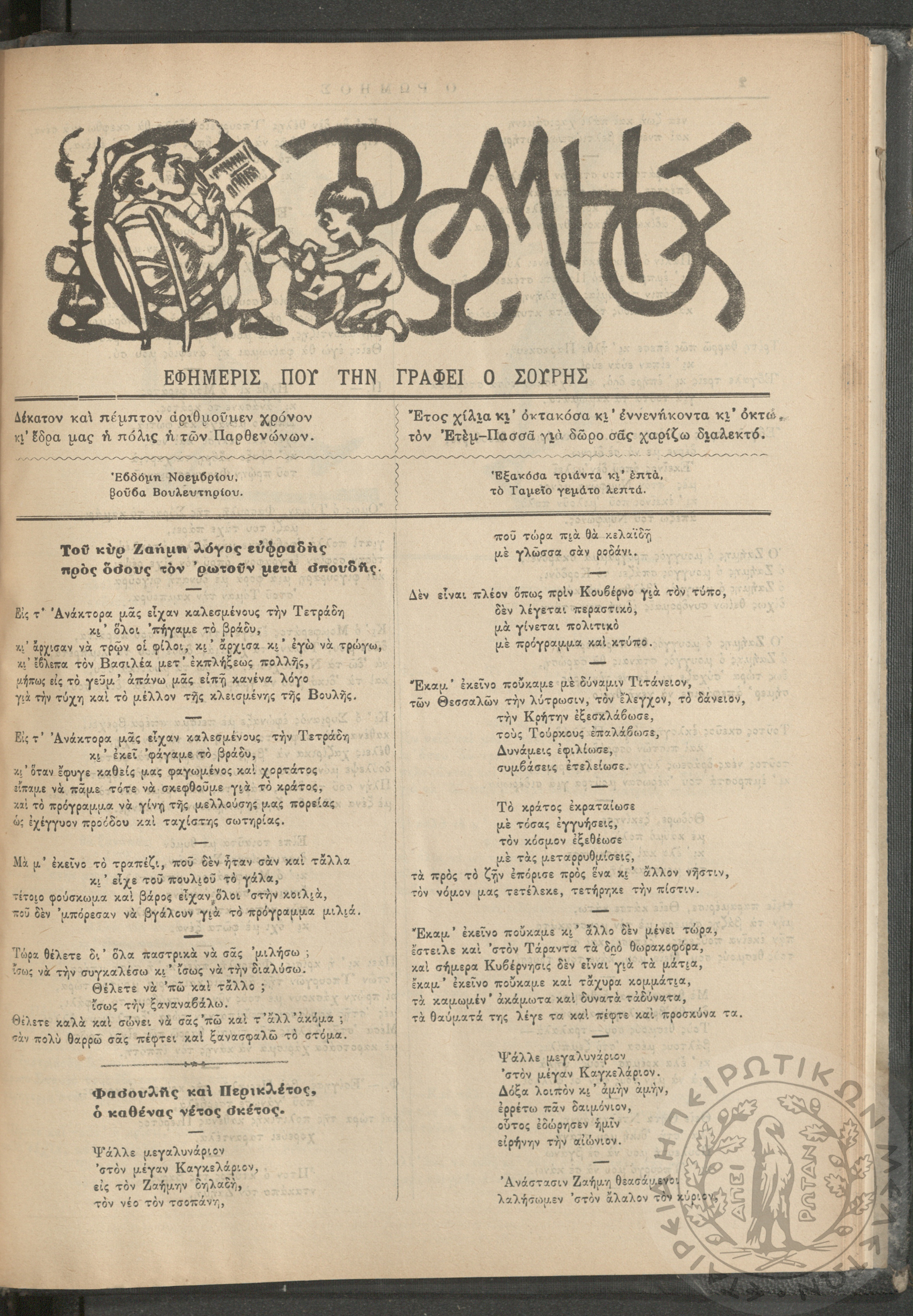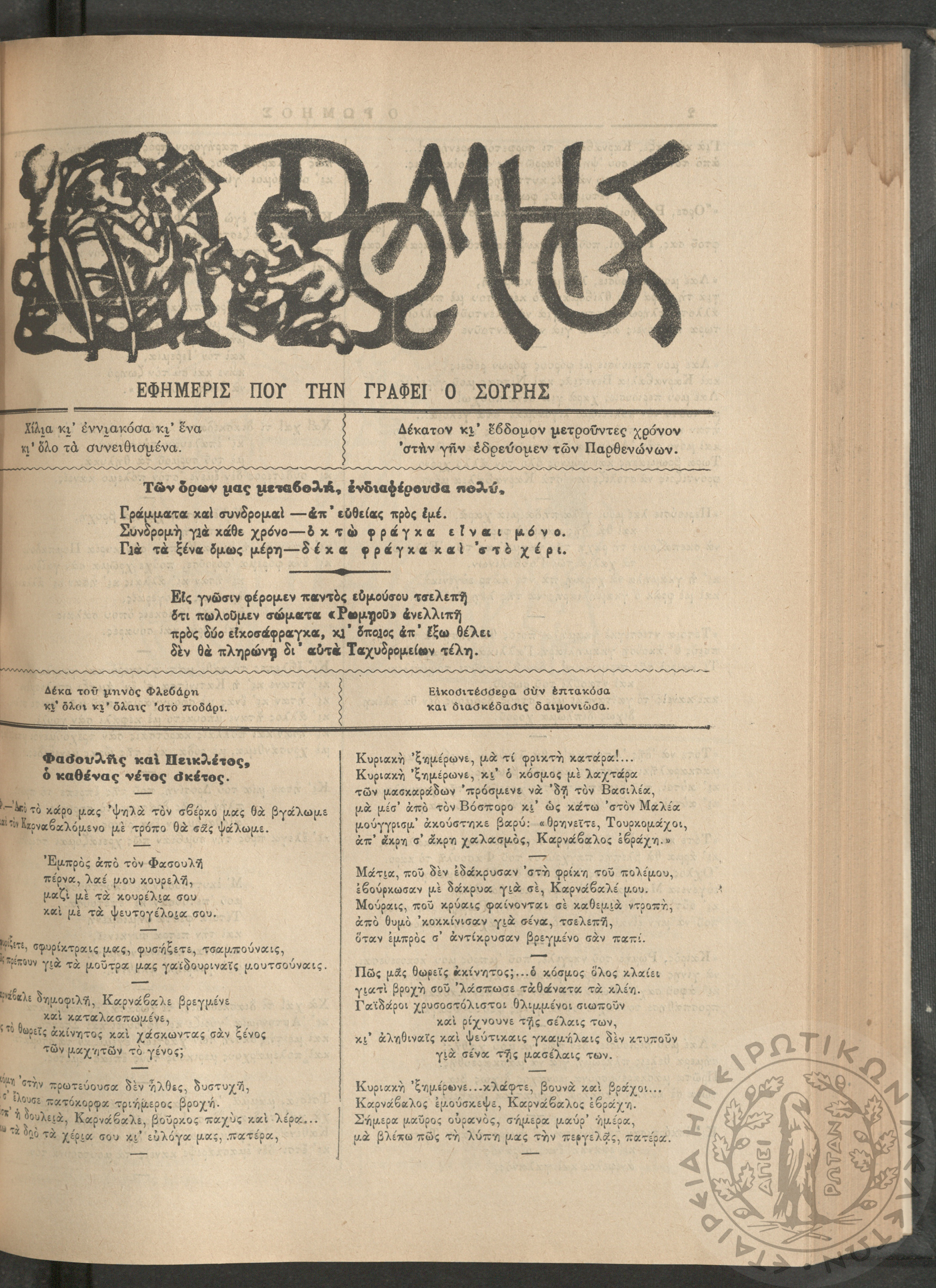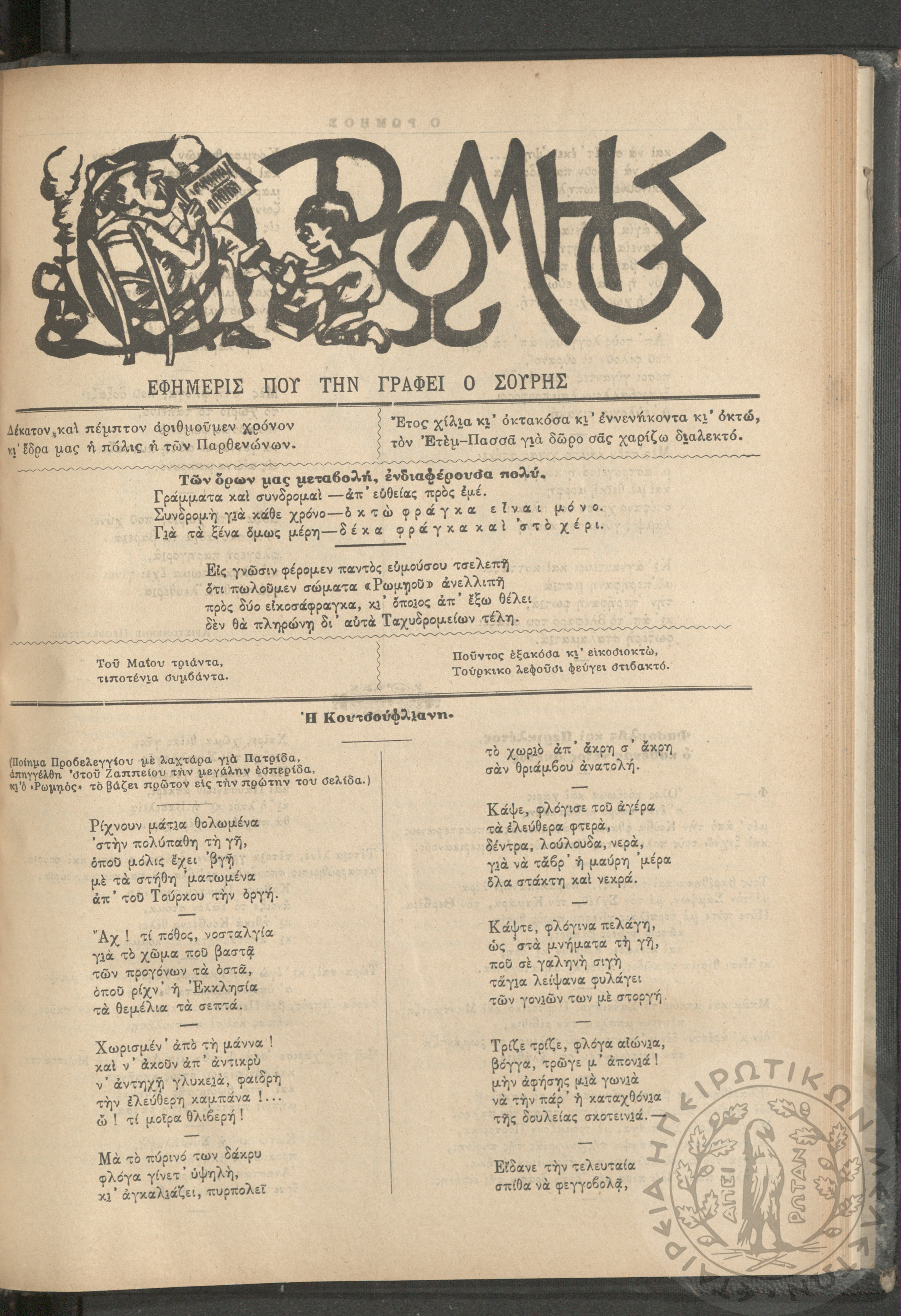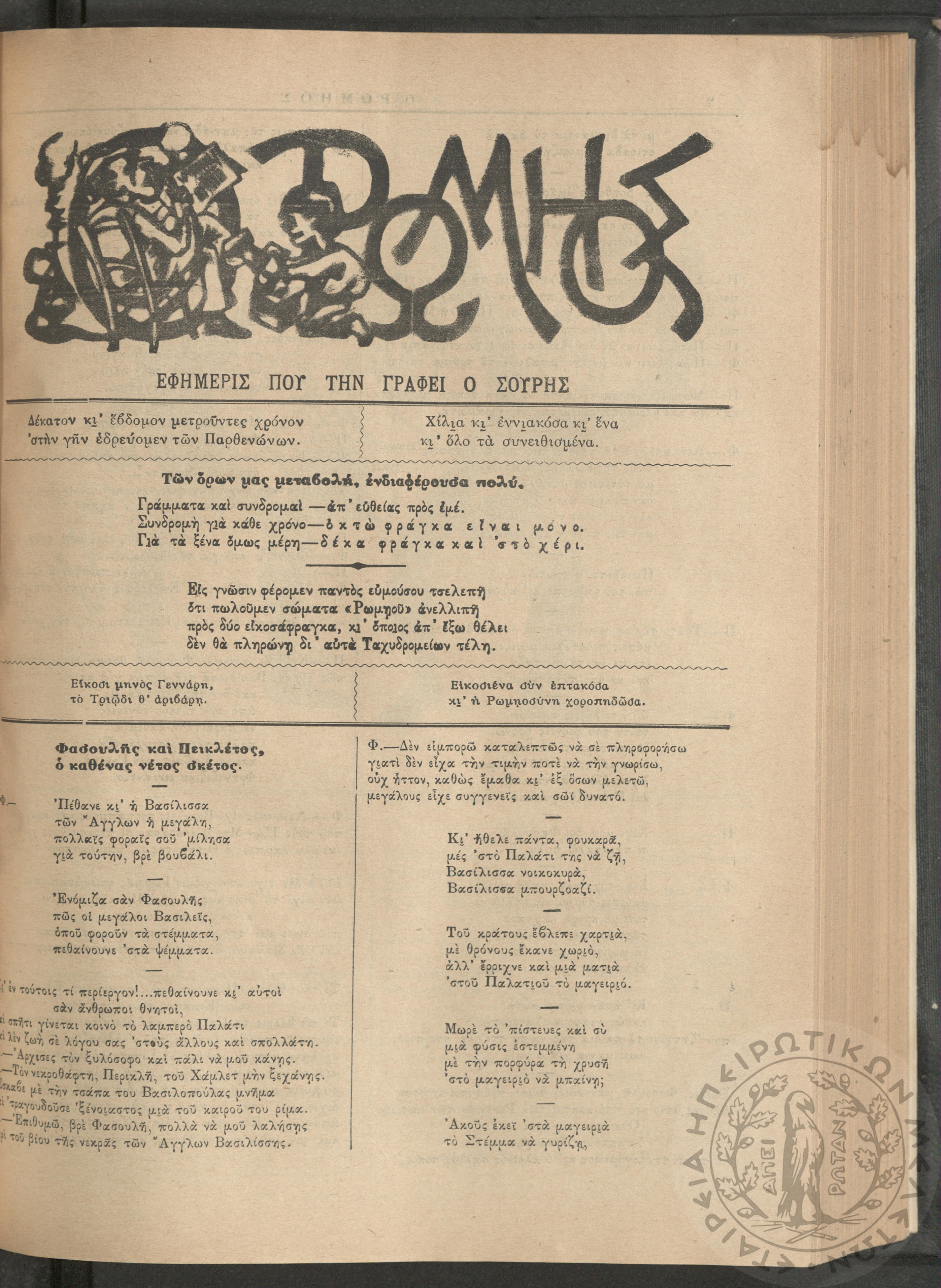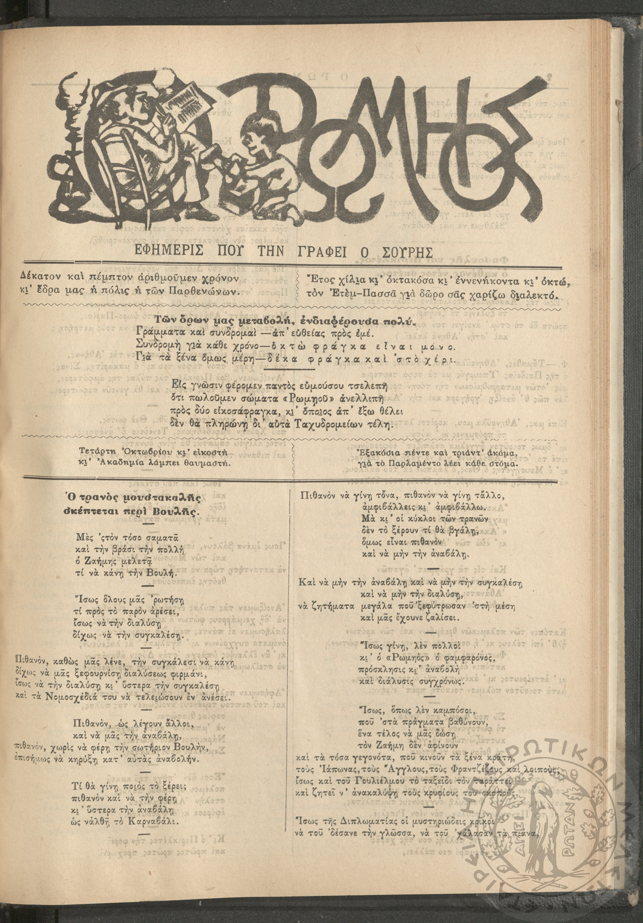 Ο Ρωμηός: Εφημερίς που την γράφει ο Σουρής, 1900, φ. 715
