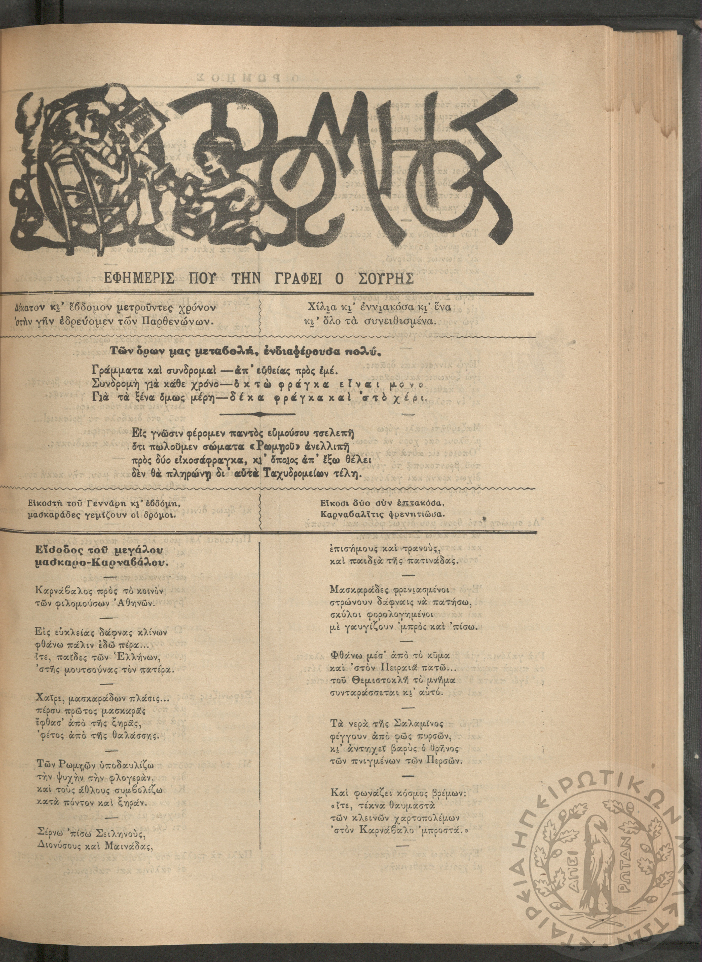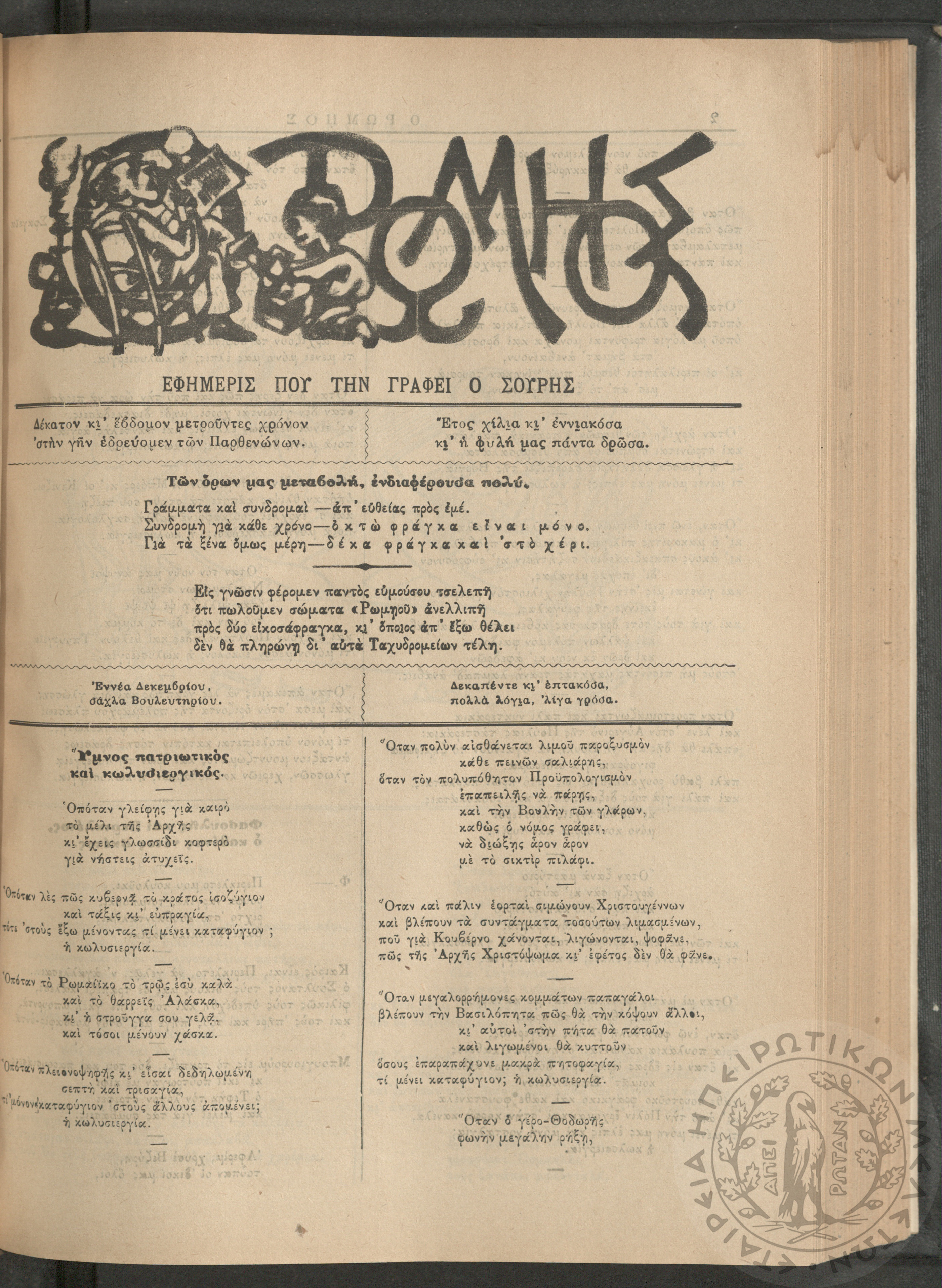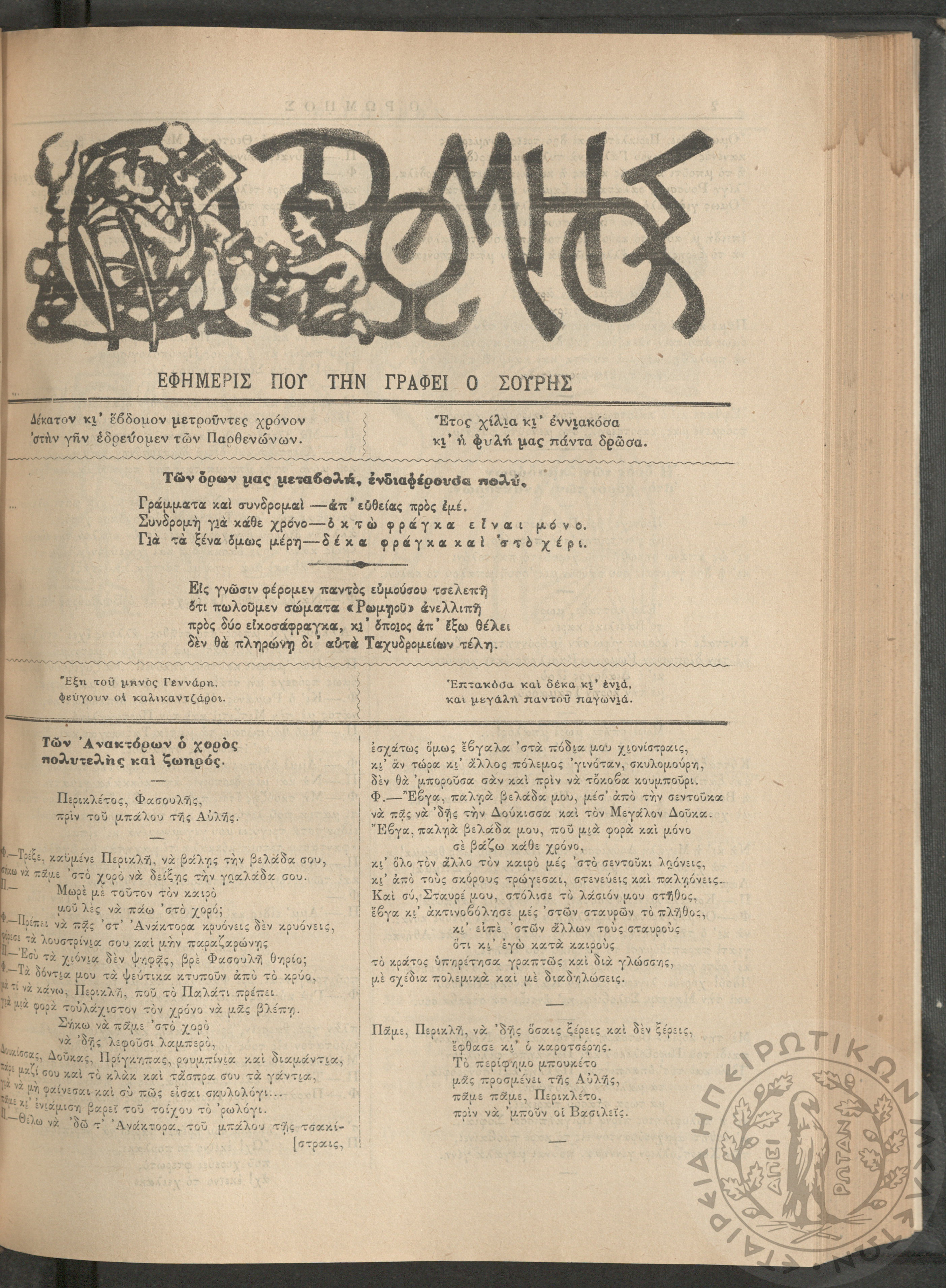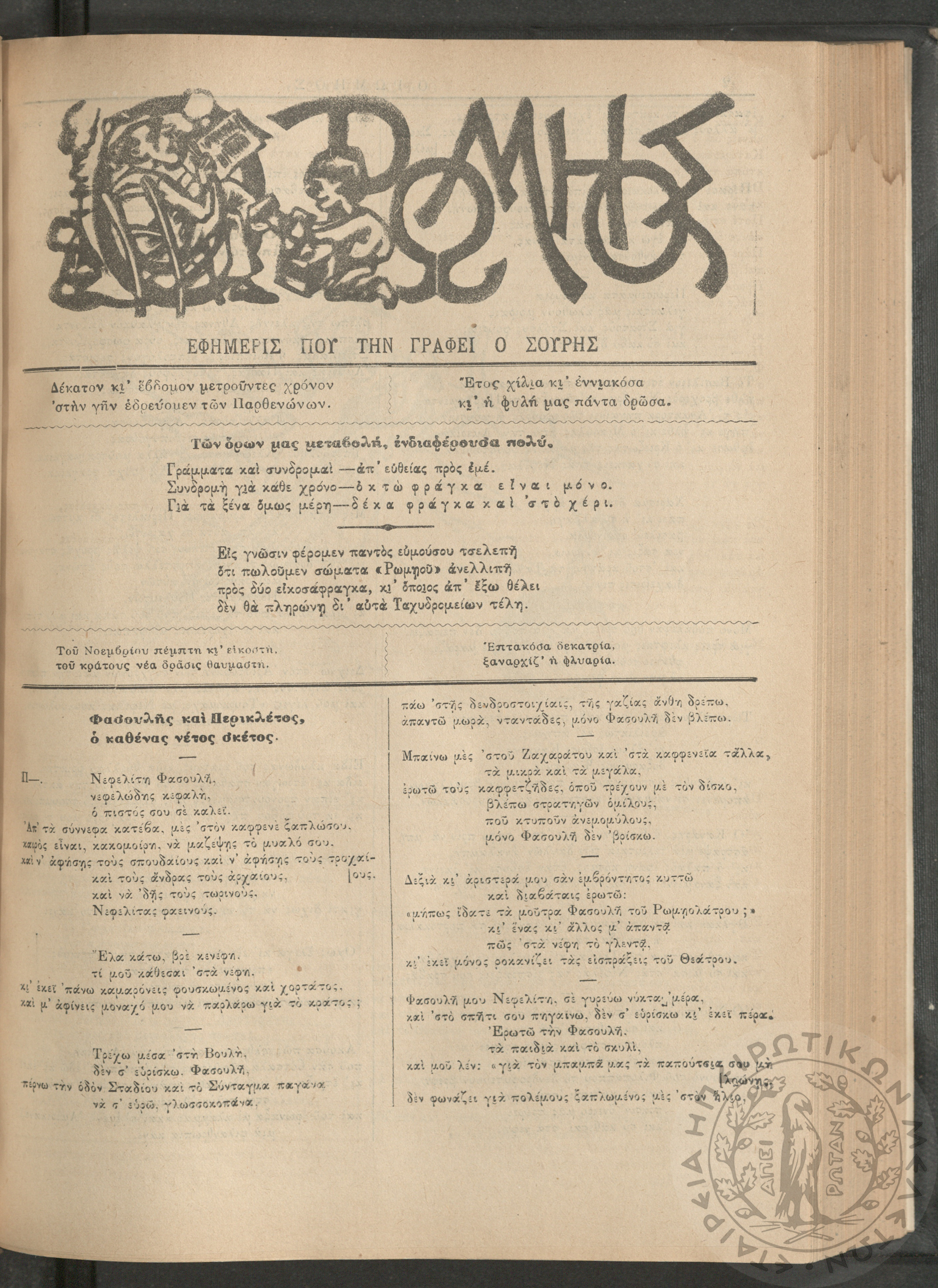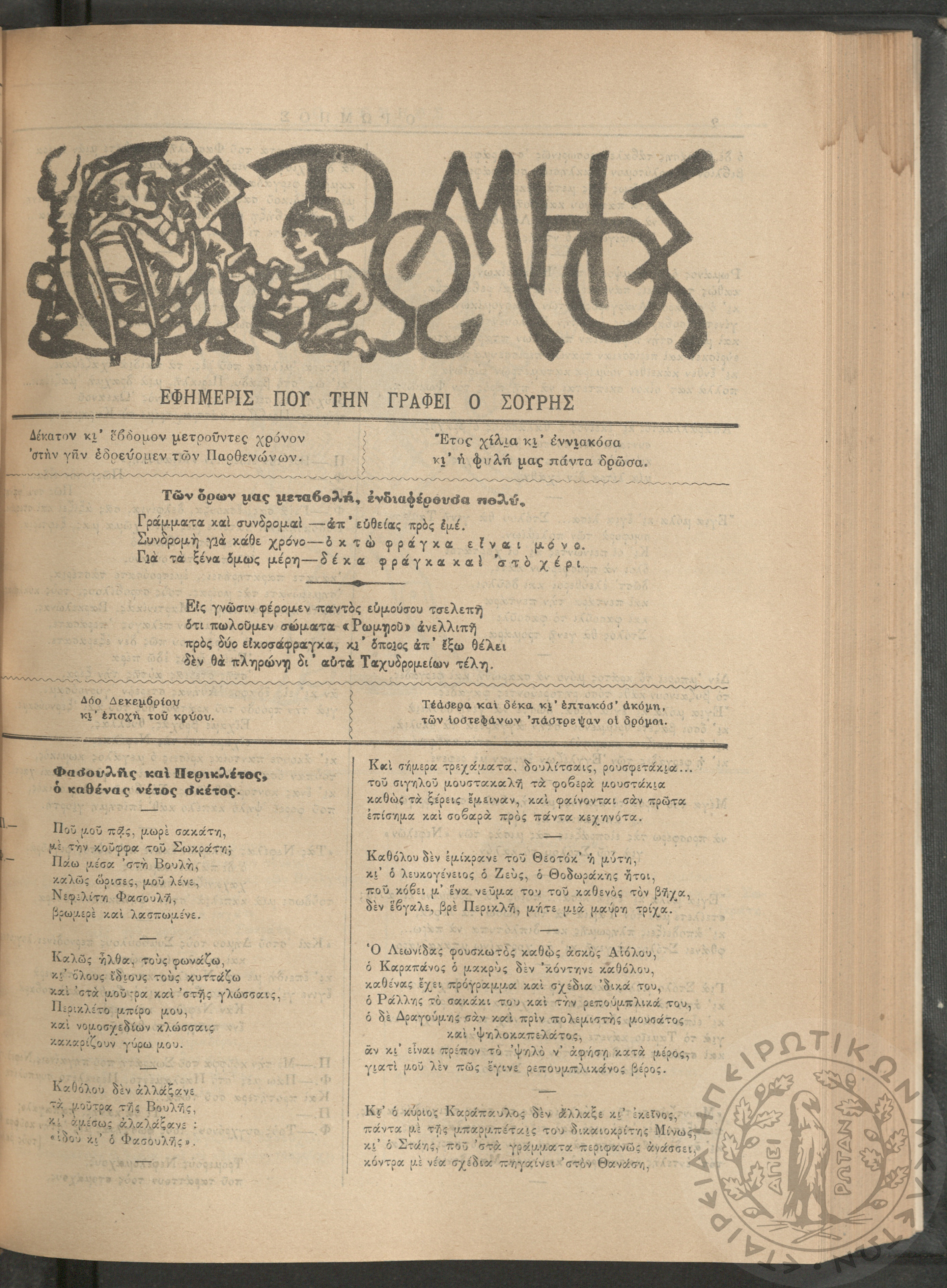 Ο Ρωμηός: Εφημερίς που την γράφει ο Σουρής, 1900, φ. 715