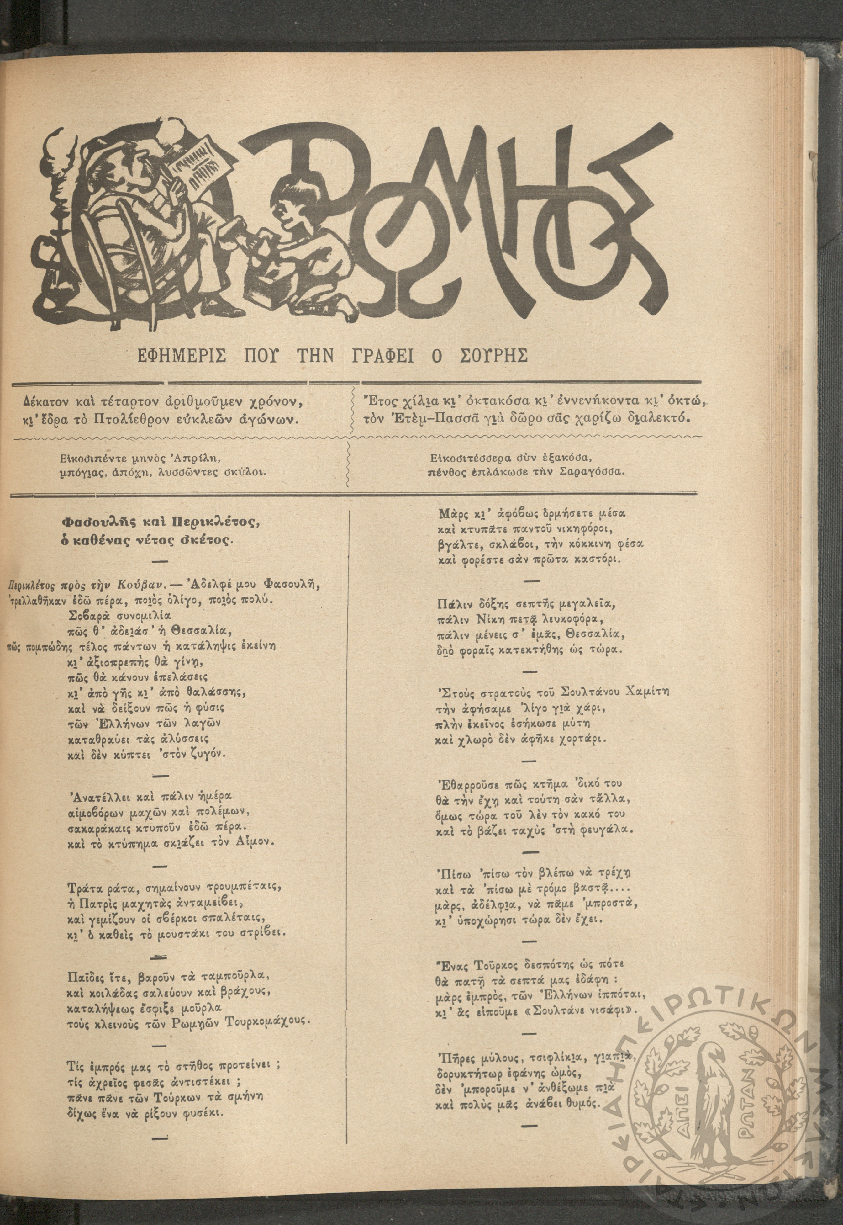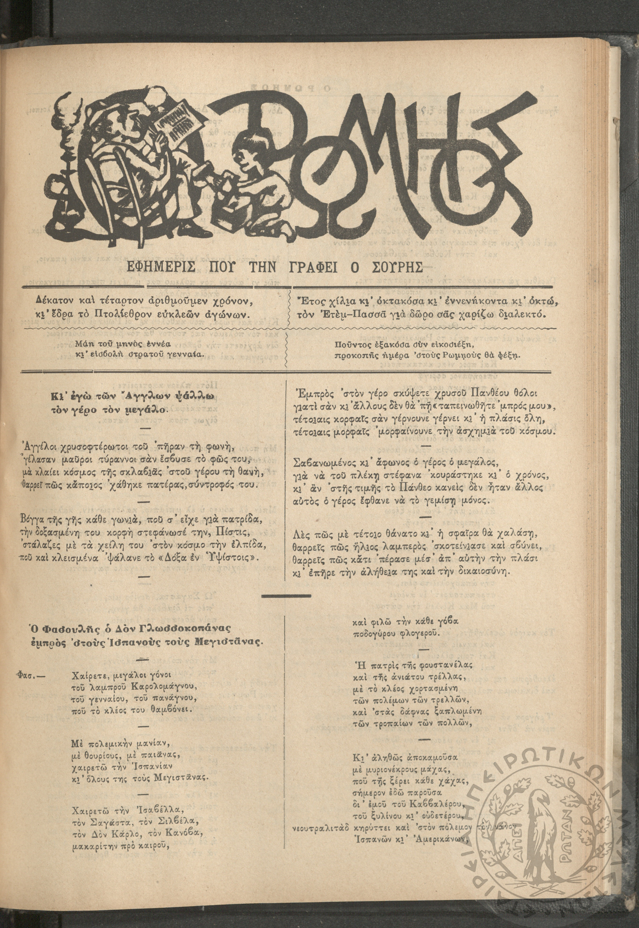 Ο Ρωμηός: Εφημερίς που την γράφει ο Σουρής, 1901, φ. 723