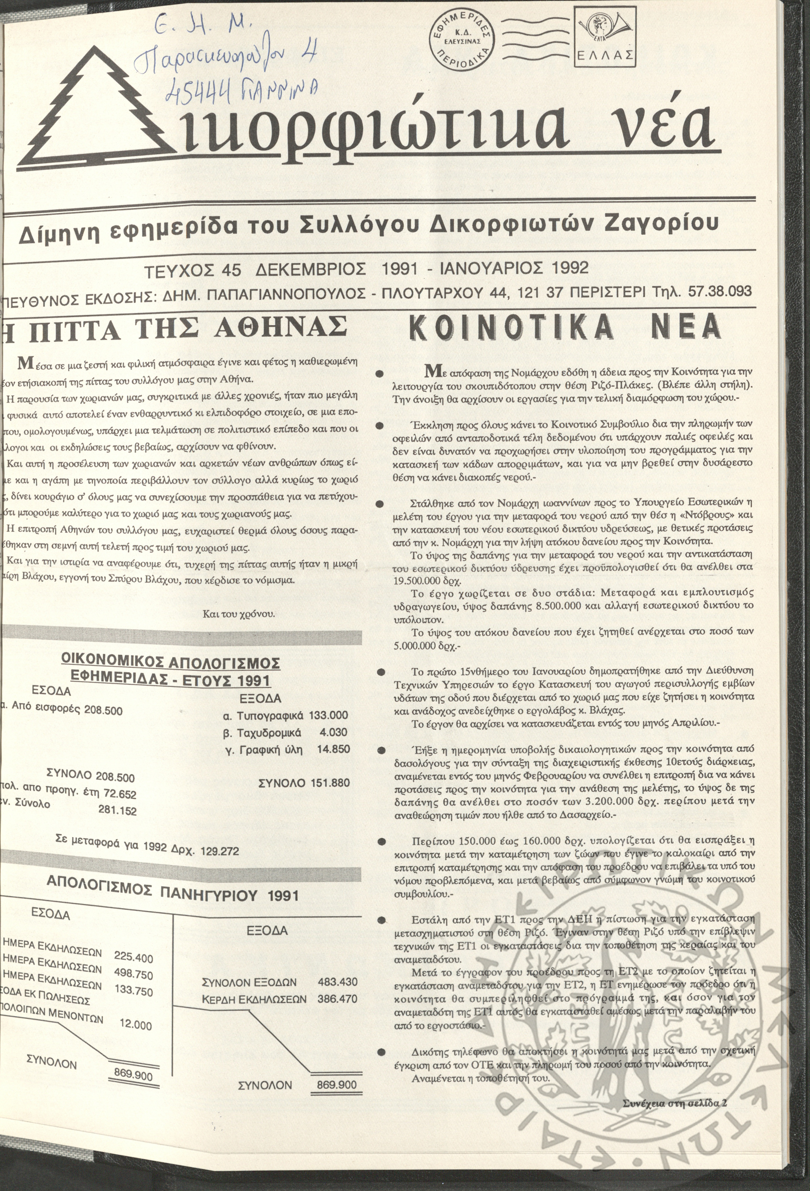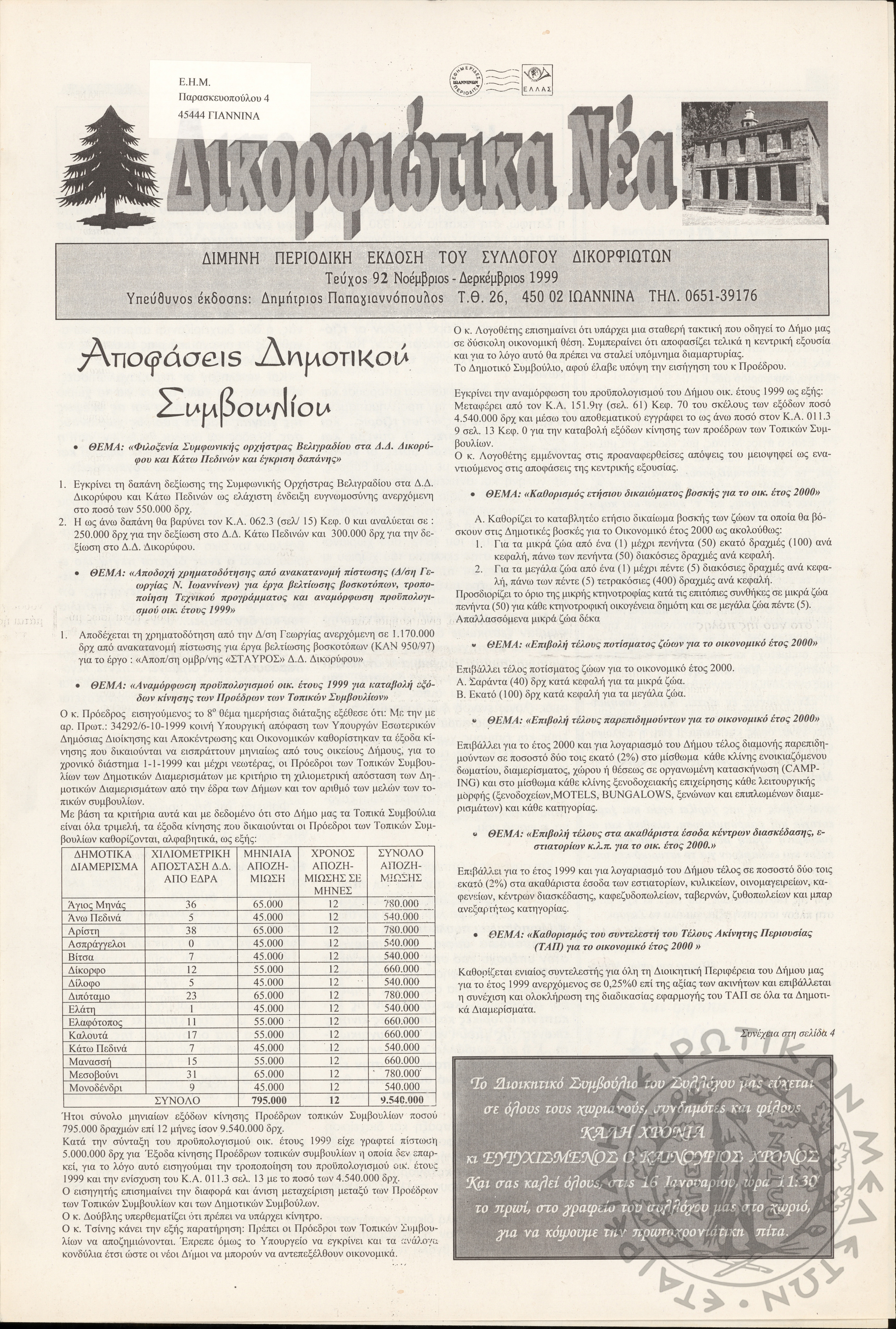 Δικορφιώτικα νέα: Δίμηνη εφημερίδα του Συλλόγου Δικορφιωτών Ζαγορίου, 1991-1992, φ. 45