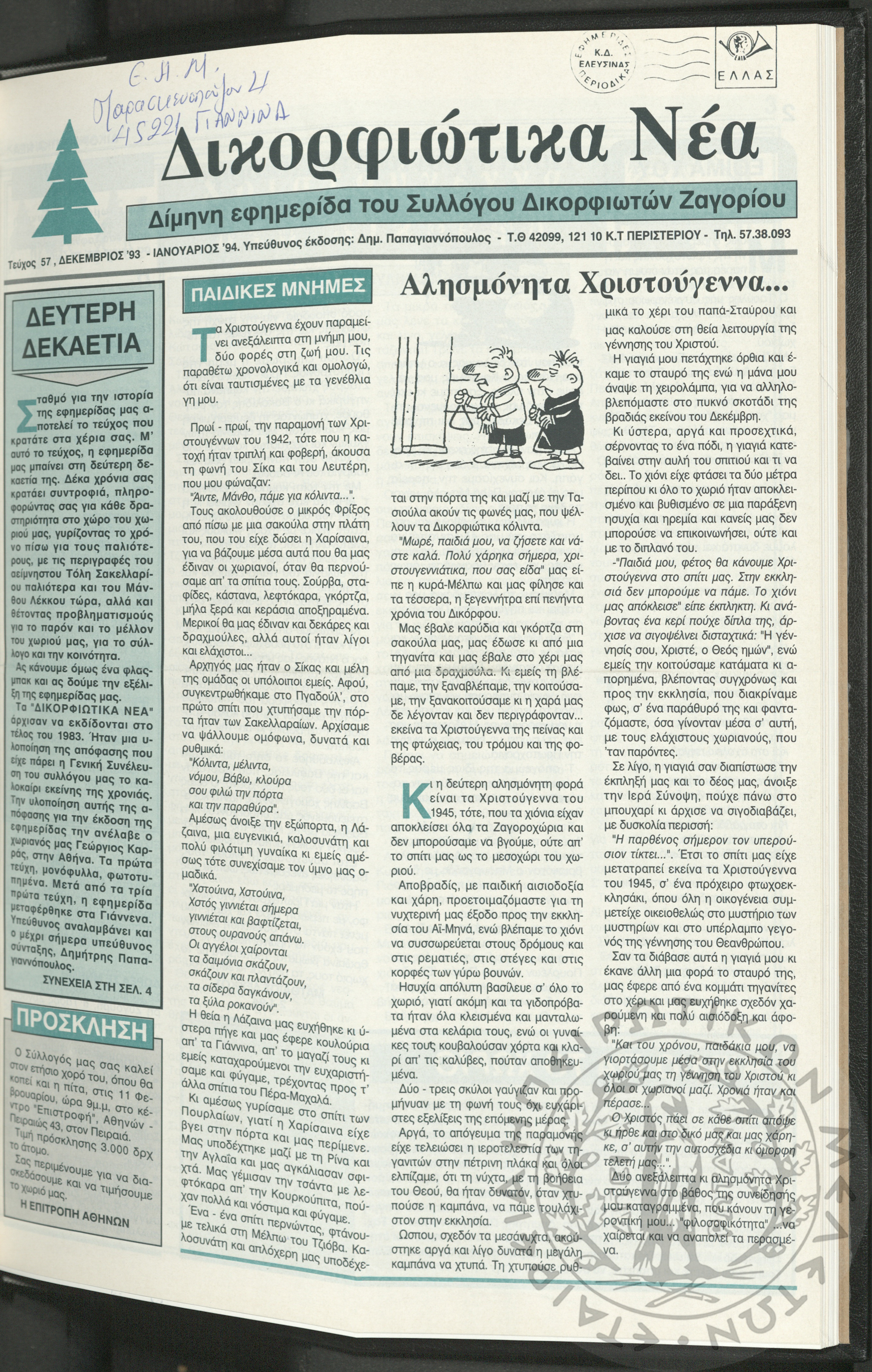 Δικορφιώτικα νέα: Δίμηνη εφημερίδα του Συλλόγου Δικορφιωτών Ζαγορίου, 1993-1994, φ. 57