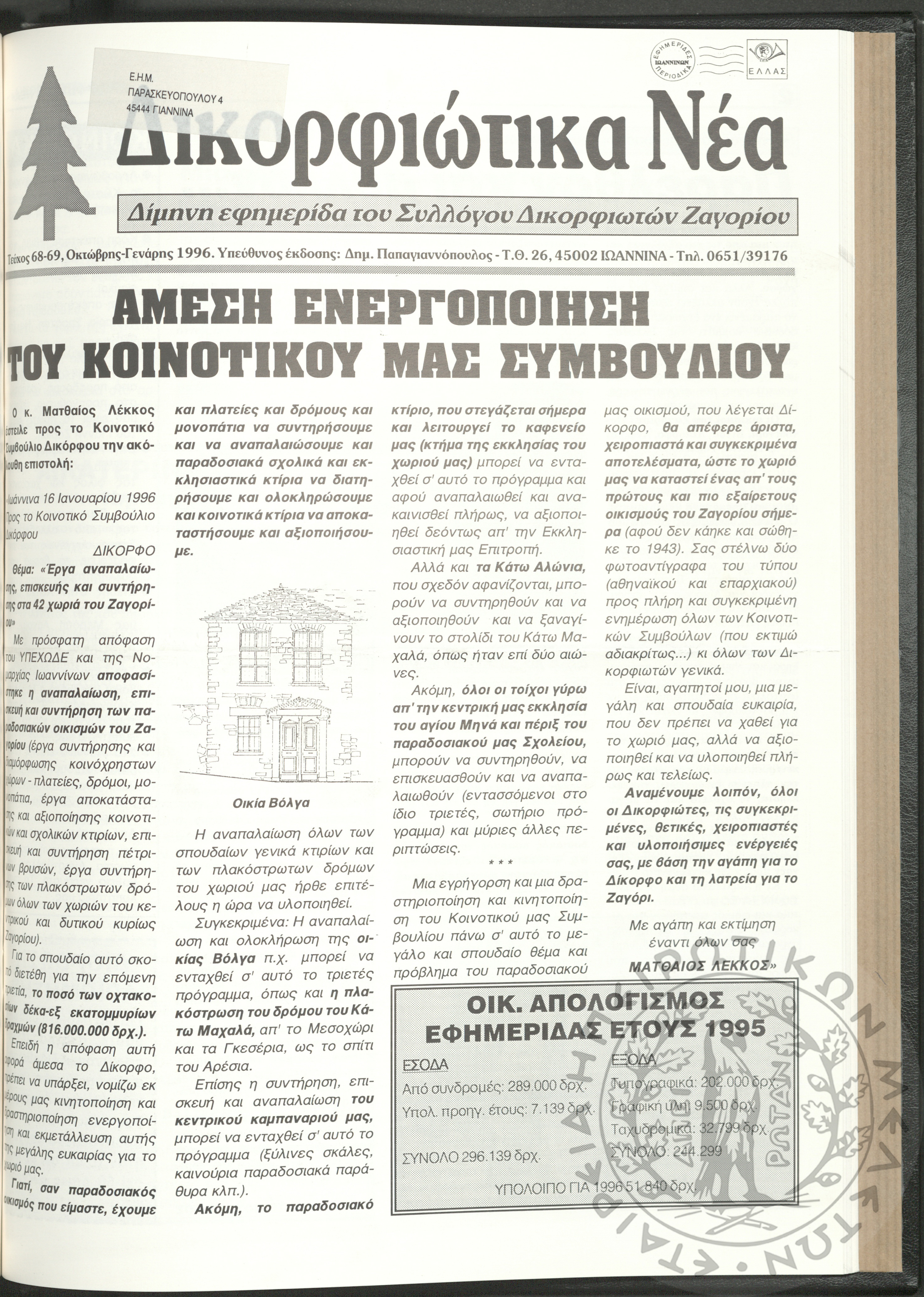 Δικορφιώτικα νέα: Δίμηνη εφημερίδα του Συλλόγου Δικορφιωτών Ζαγορίου, 1996, φ. 68-69