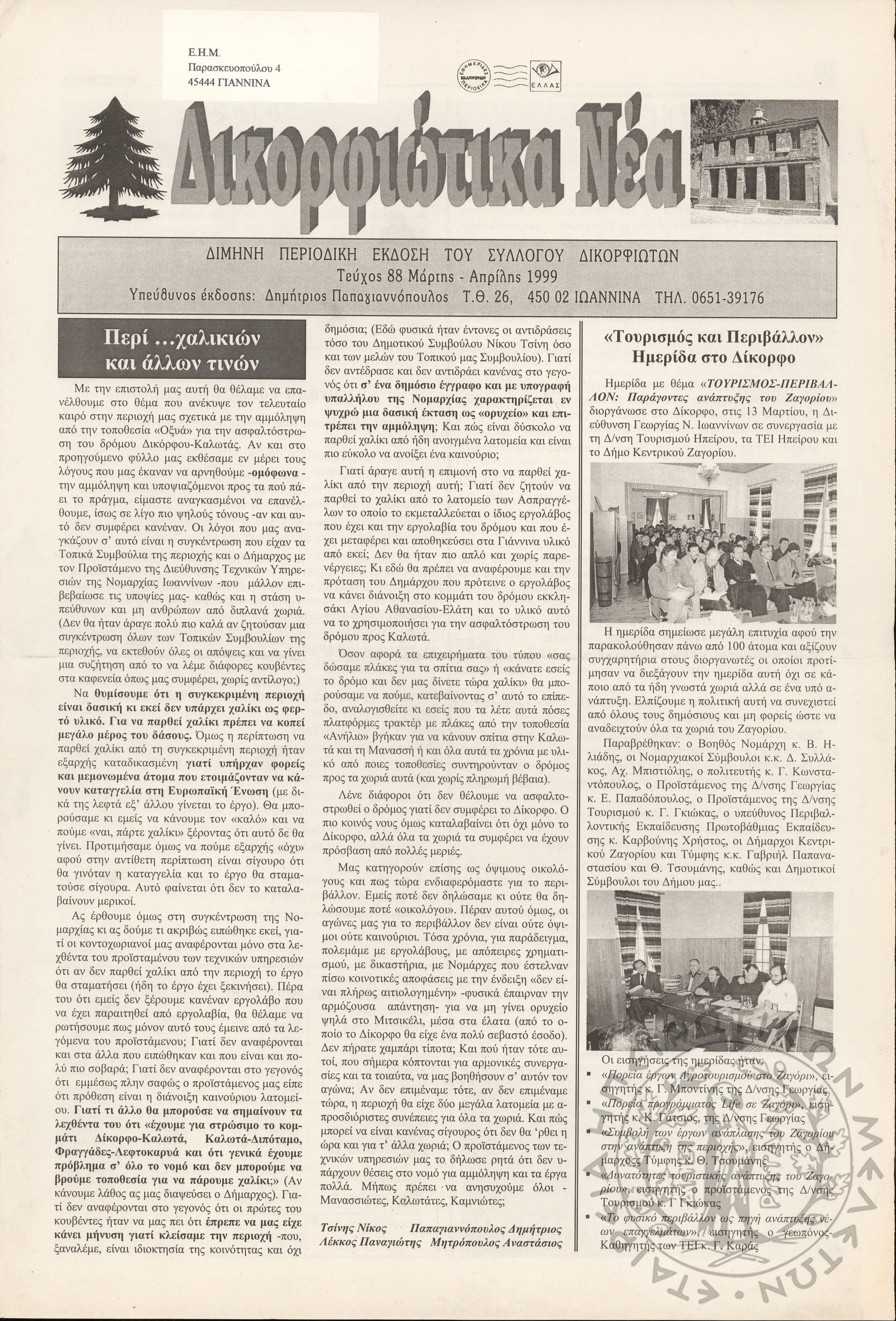Δικορφιώτικα νέα: Δίμηνη περιοδική έκδοση του Συλλόγου Δικορφιωτών, 1999, φ. 88
