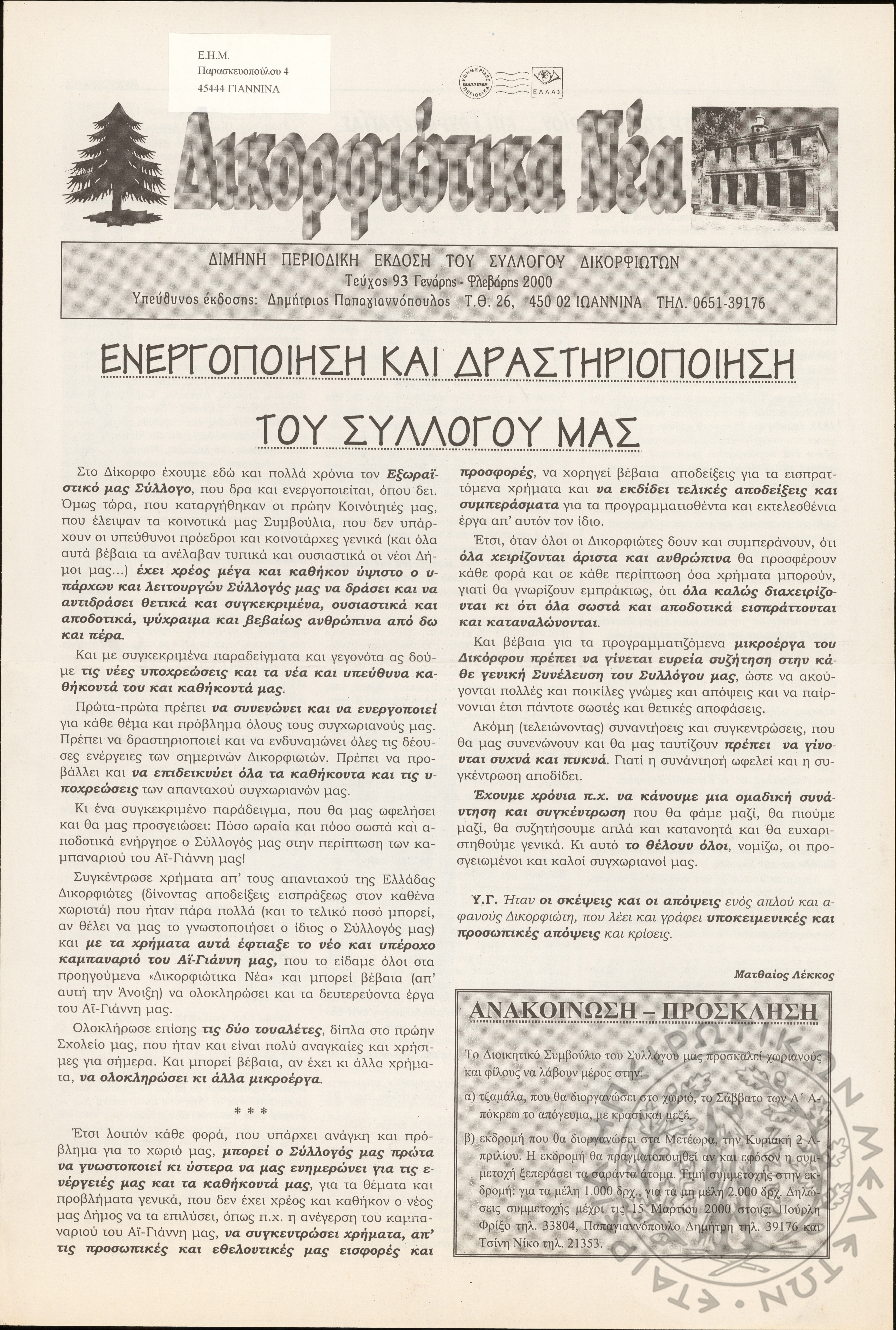 Δικορφιώτικα νέα: Δίμηνη περιοδική έκδοση του Συλλόγου Δικορφιωτών, 2000, φ. 93