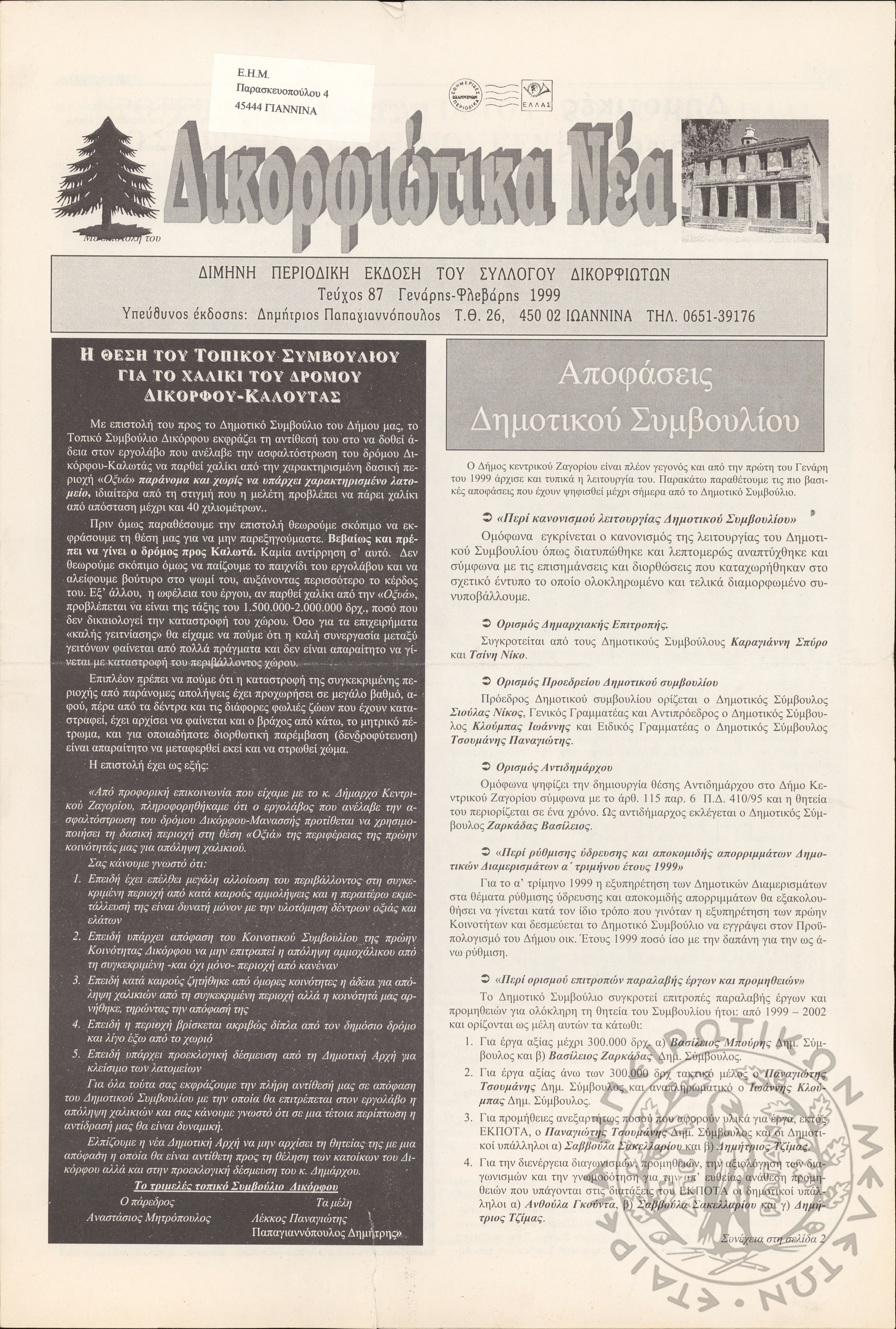 Δικορφιώτικα νέα: Δίμηνη περιοδική έκδοση του Συλλόγου Δικορφιωτών, 1999, φ. 87
