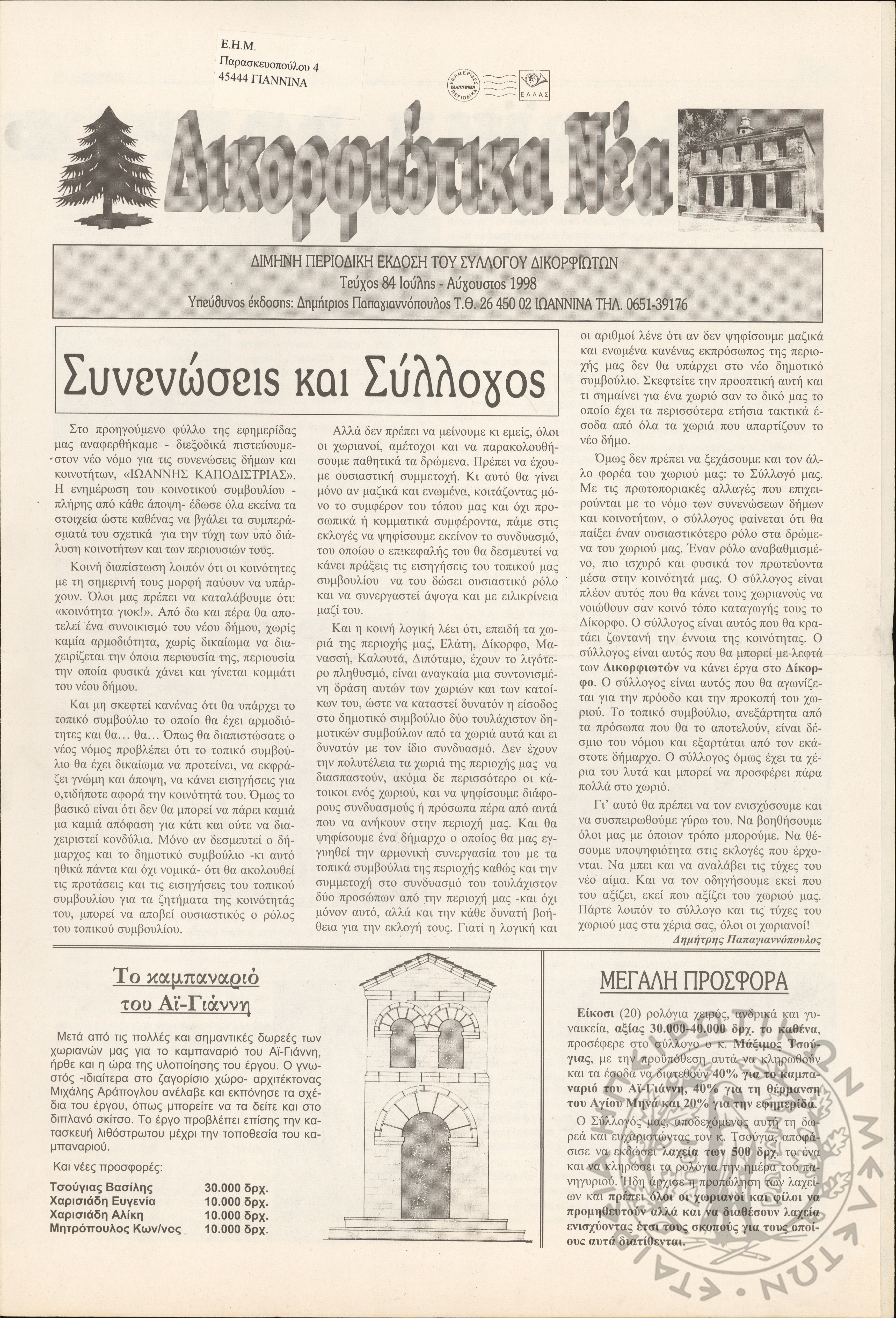 Δικορφιώτικα νέα: Δίμηνη περιοδική έκδοση του Συλλόγου Δικορφιωτών, 1998, φ. 84