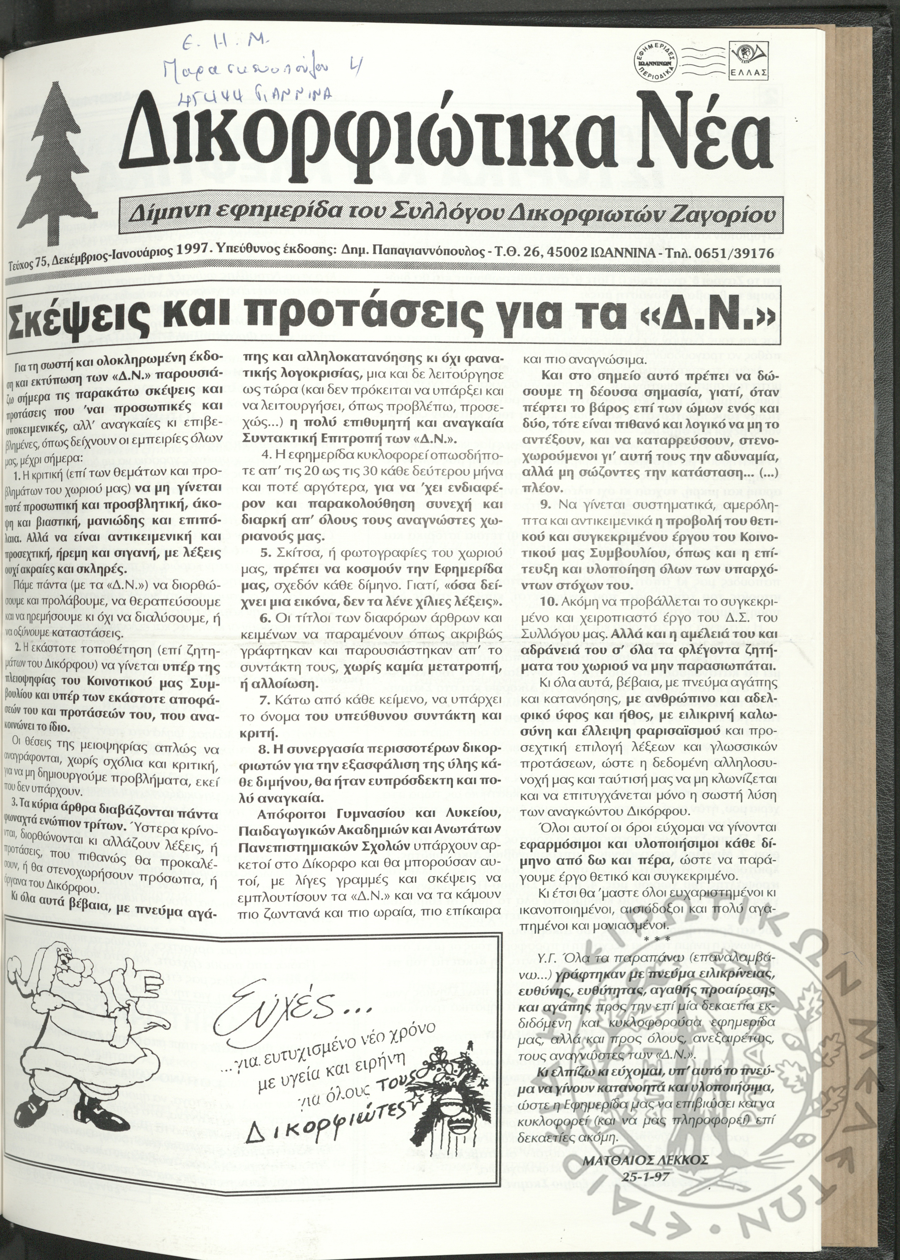 Δικορφιώτικα νέα: Δίμηνη εφημερίδα του Συλλόγου Δικορφιωτών Ζαγορίου, 1997, φ. 75