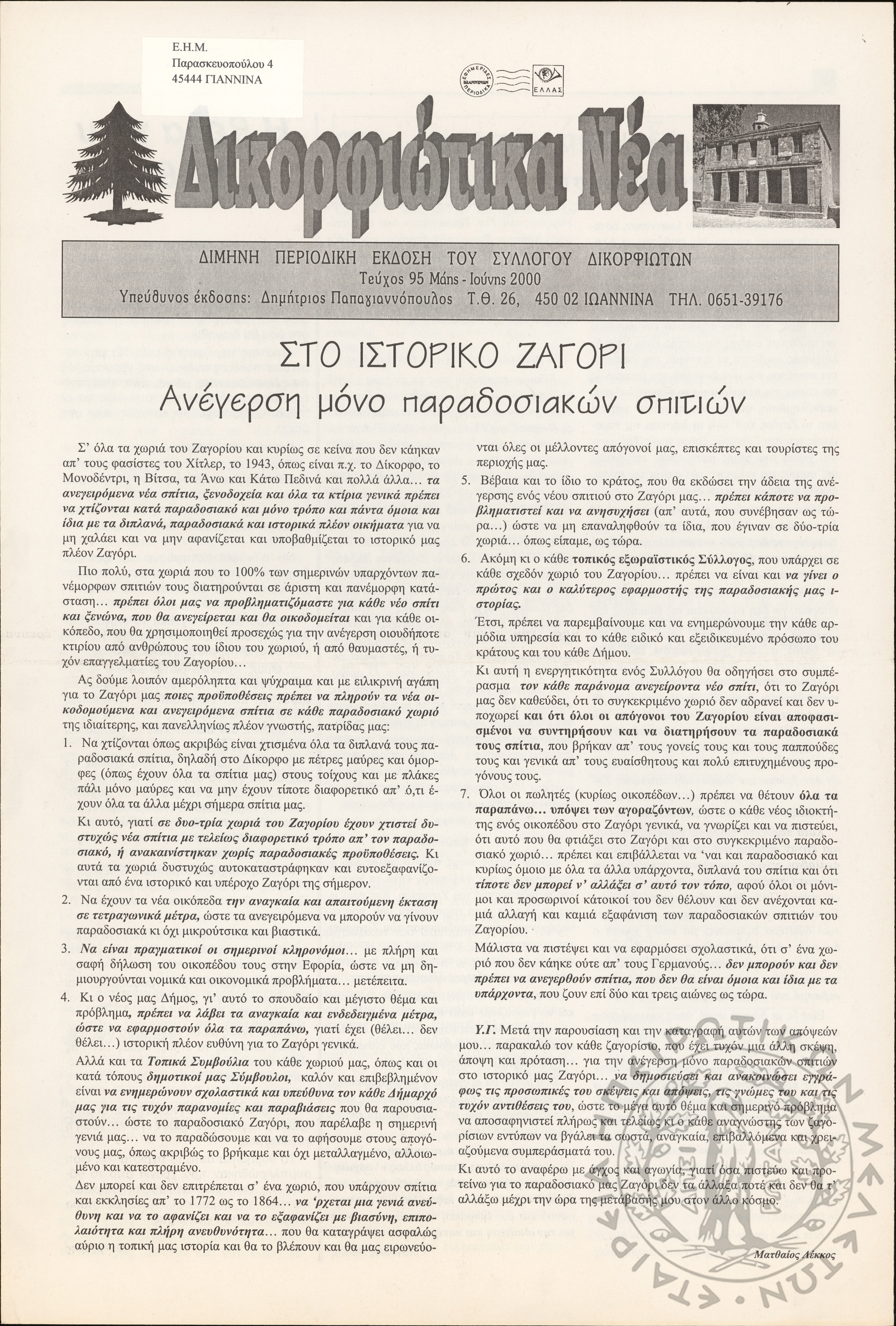 Δικορφιώτικα νέα: Δίμηνη περιοδική έκδοση του Συλλόγου Δικορφιωτών, 2000, φ. 95