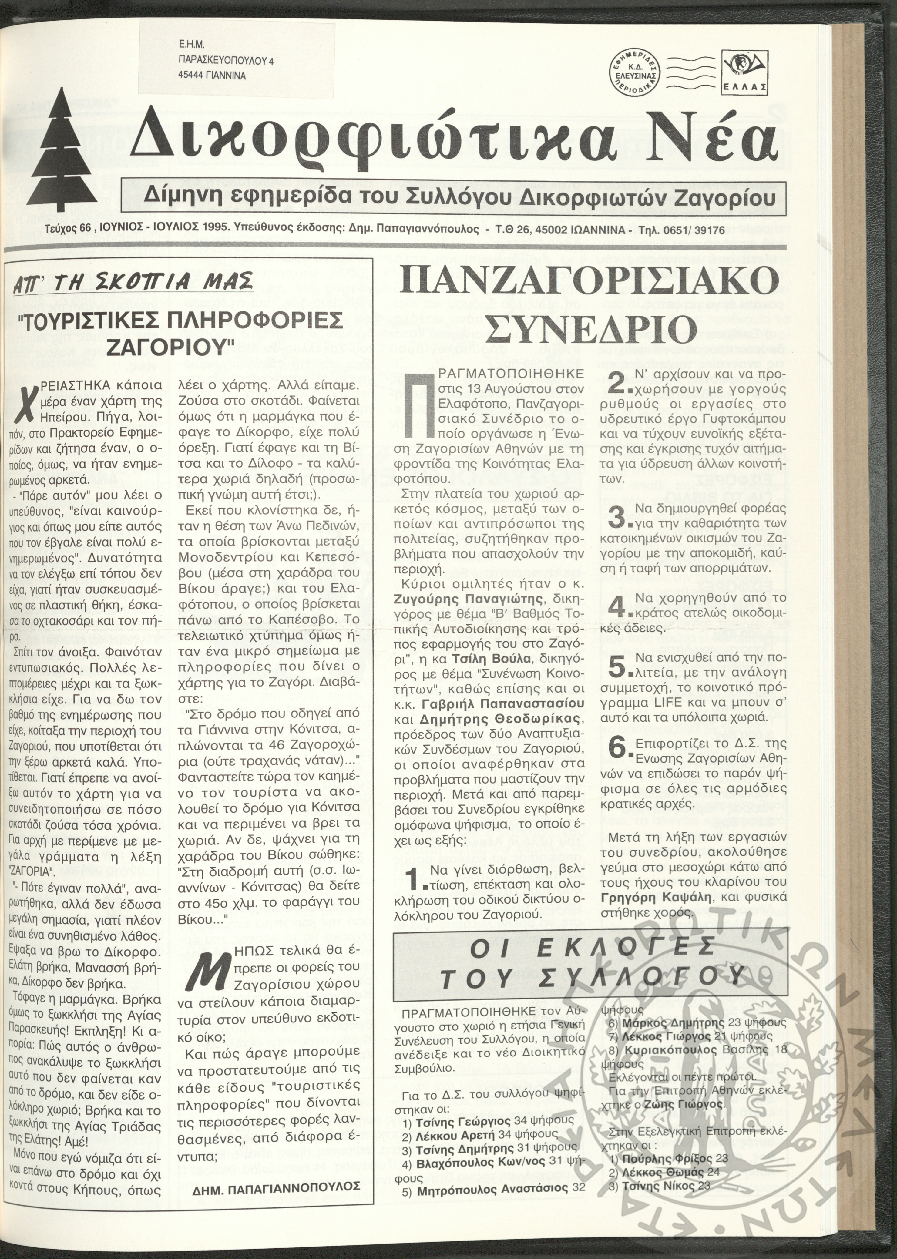 Δικορφιώτικα νέα: Δίμηνη εφημερίδα του Συλλόγου Δικορφιωτών Ζαγορίου, 1995, φ. 66