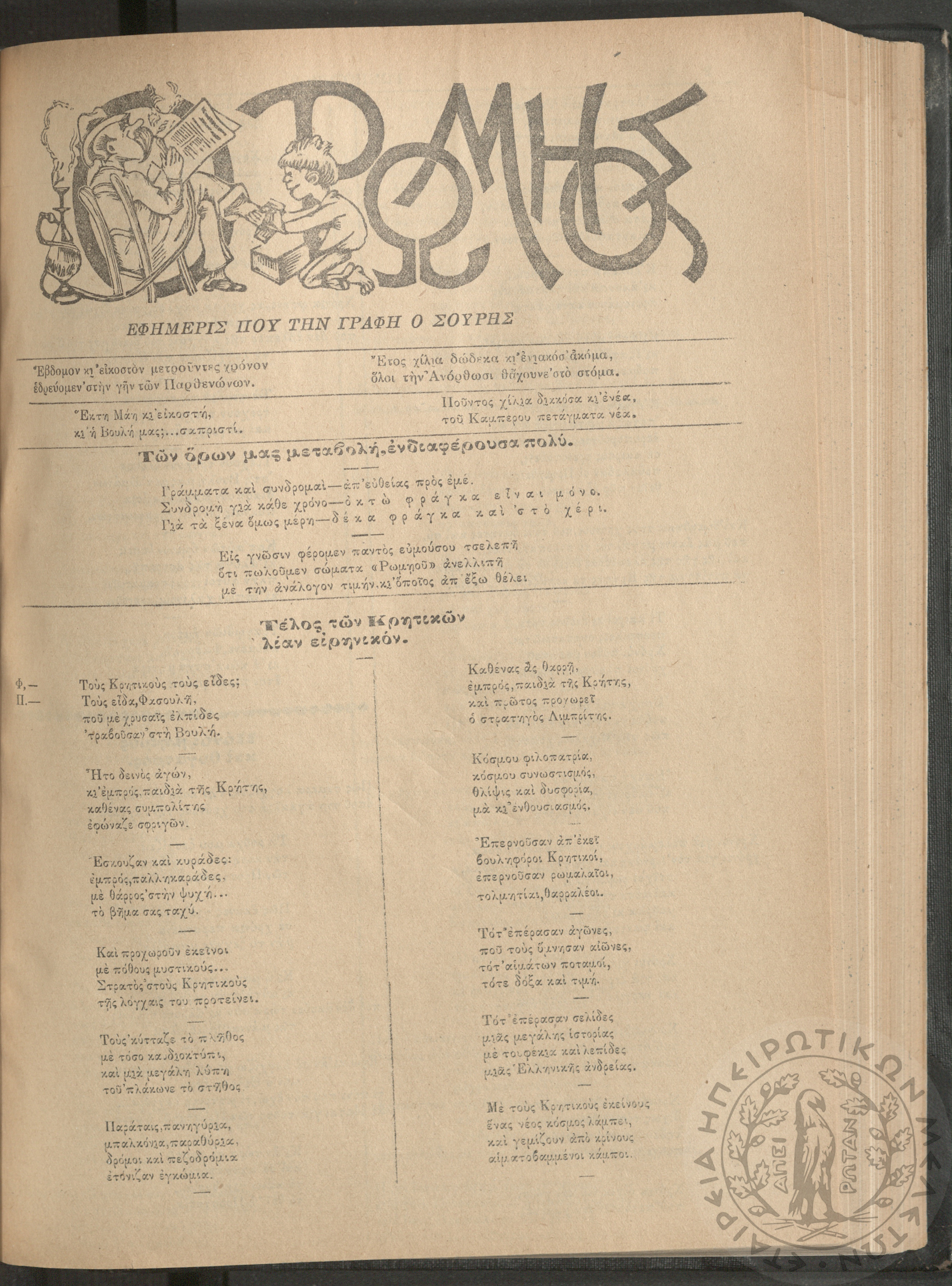 Ο Ρωμηός: Εφημερίς που την γράφει ο Σουρής, 1912, φ. 1209