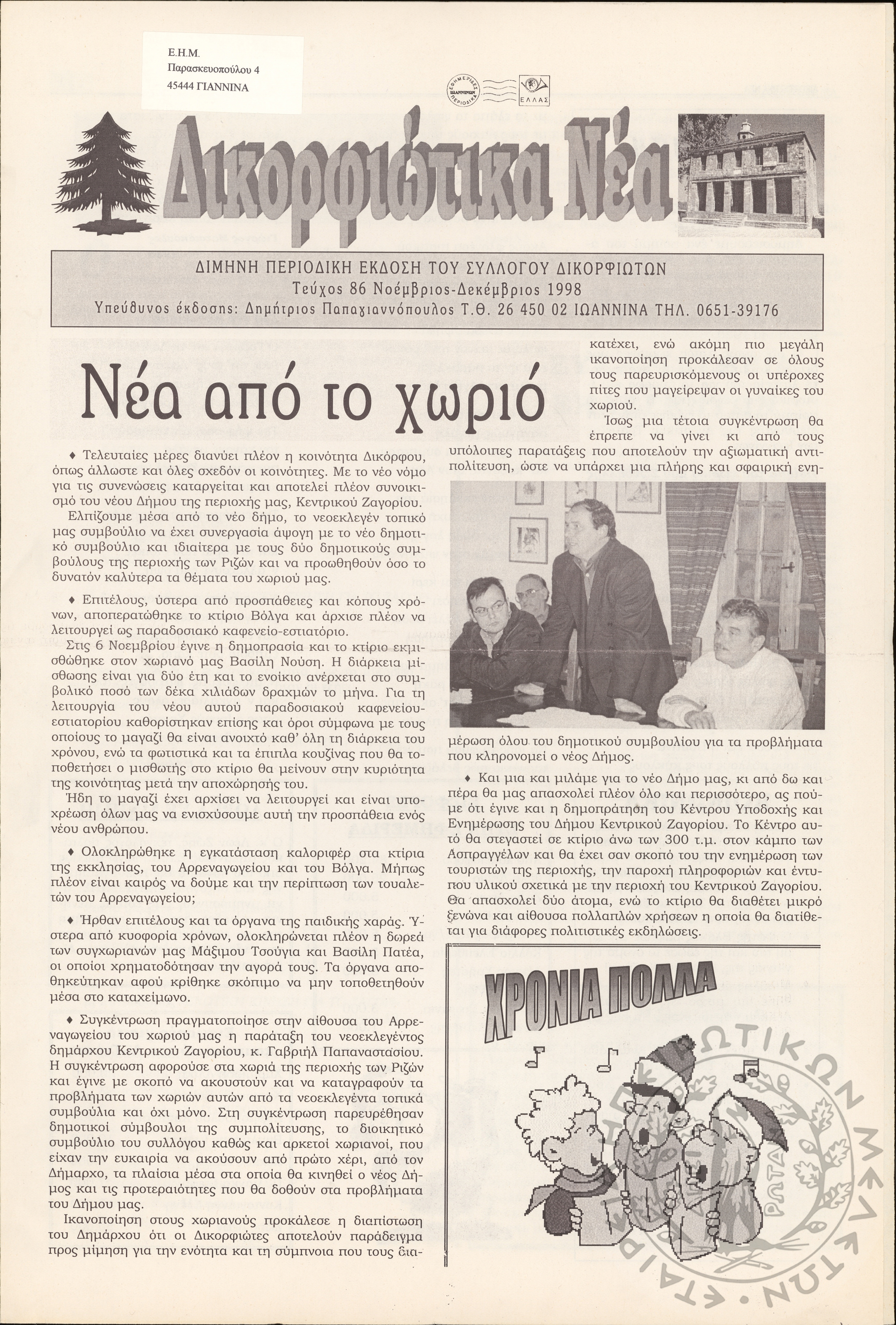 Δικορφιώτικα νέα: Δίμηνη περιοδική έκδοση του Συλλόγου Δικορφιωτών, 1998, φ. 86