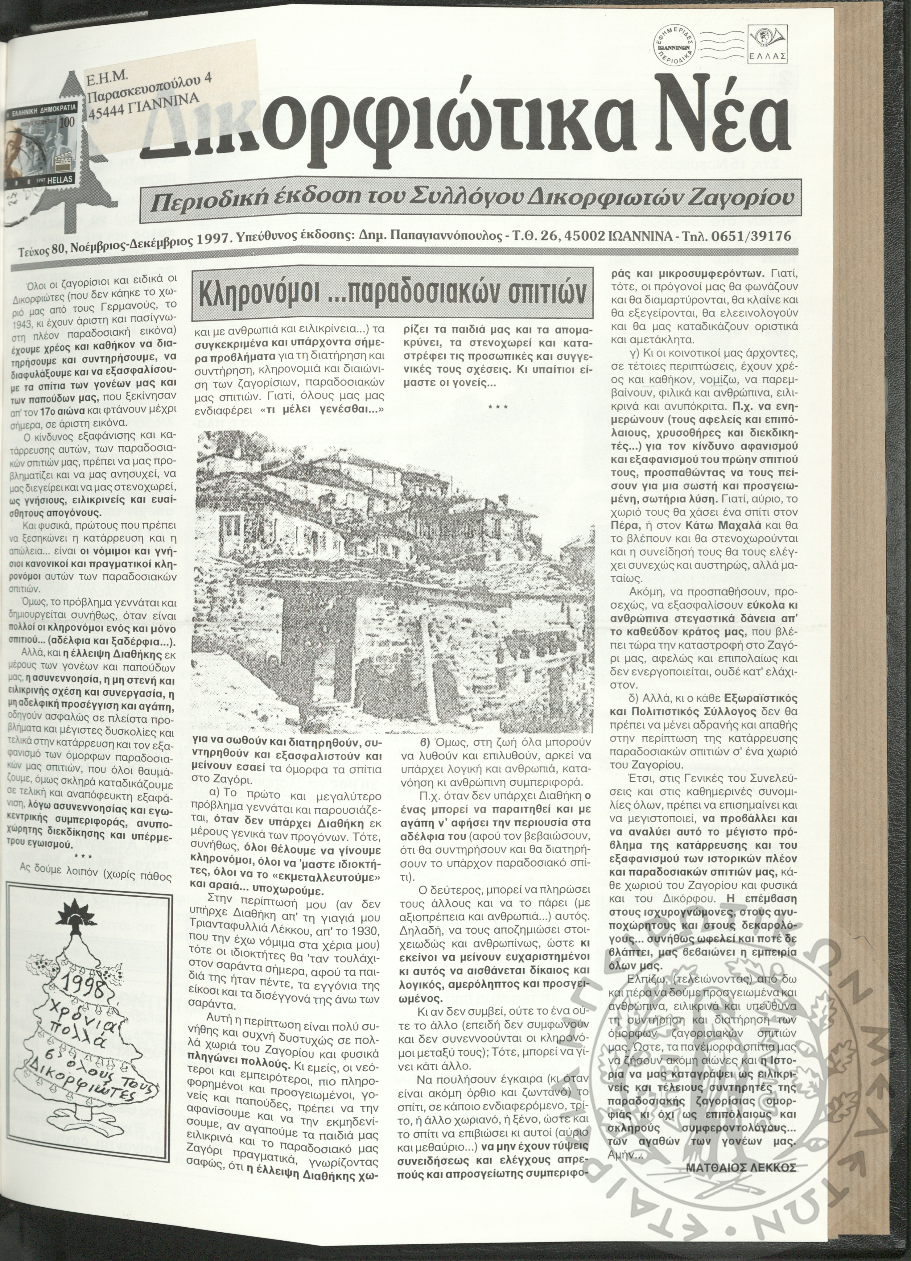 Δικορφιώτικα νέα: Δίμηνη εφημερίδα του Συλλόγου Δικορφιωτών Ζαγορίου, 1997, φ. 80