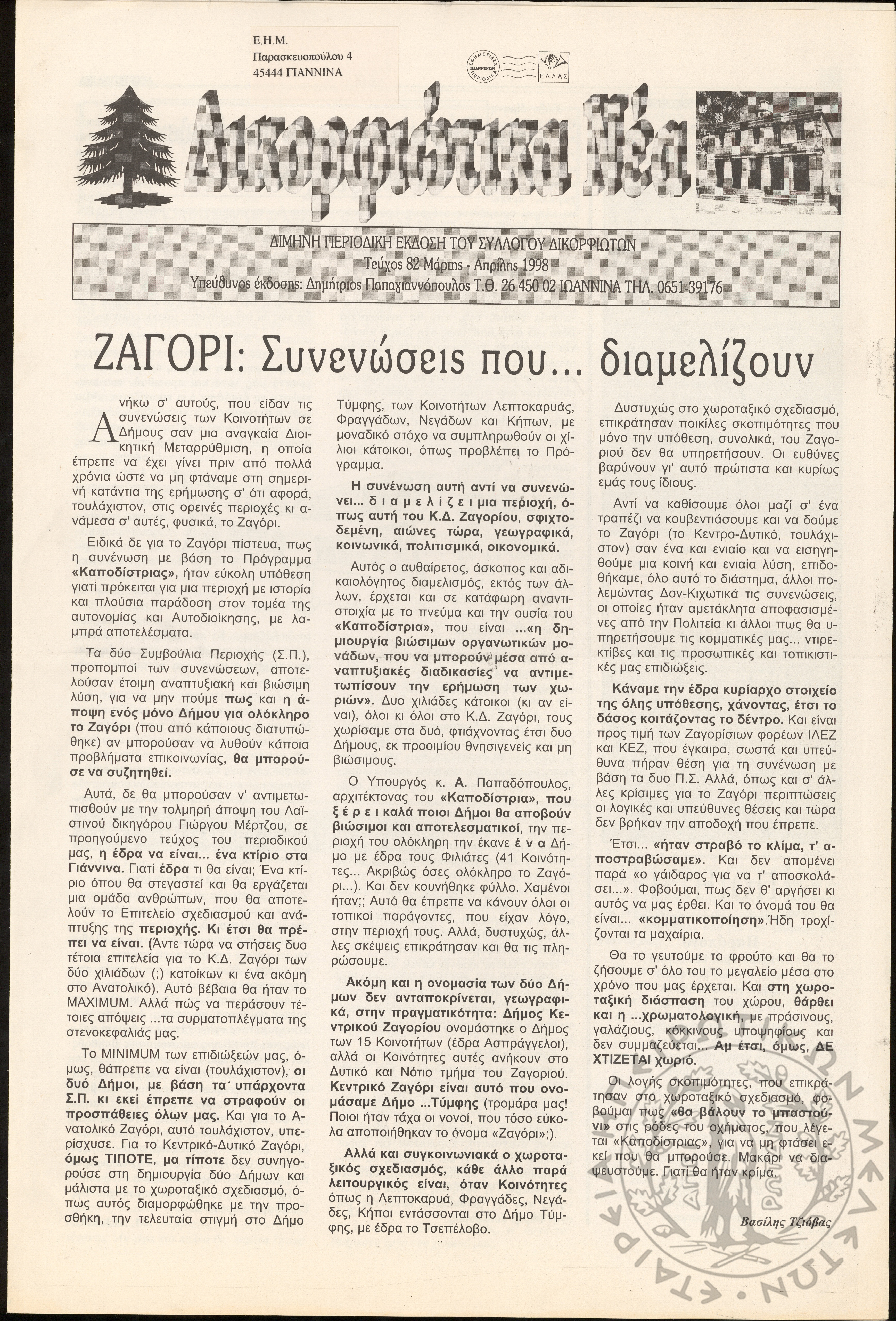 Δικορφιώτικα νέα: Δίμηνη περιοδική έκδοση του Συλλόγου Δικορφιωτών, 1998, φ. 82