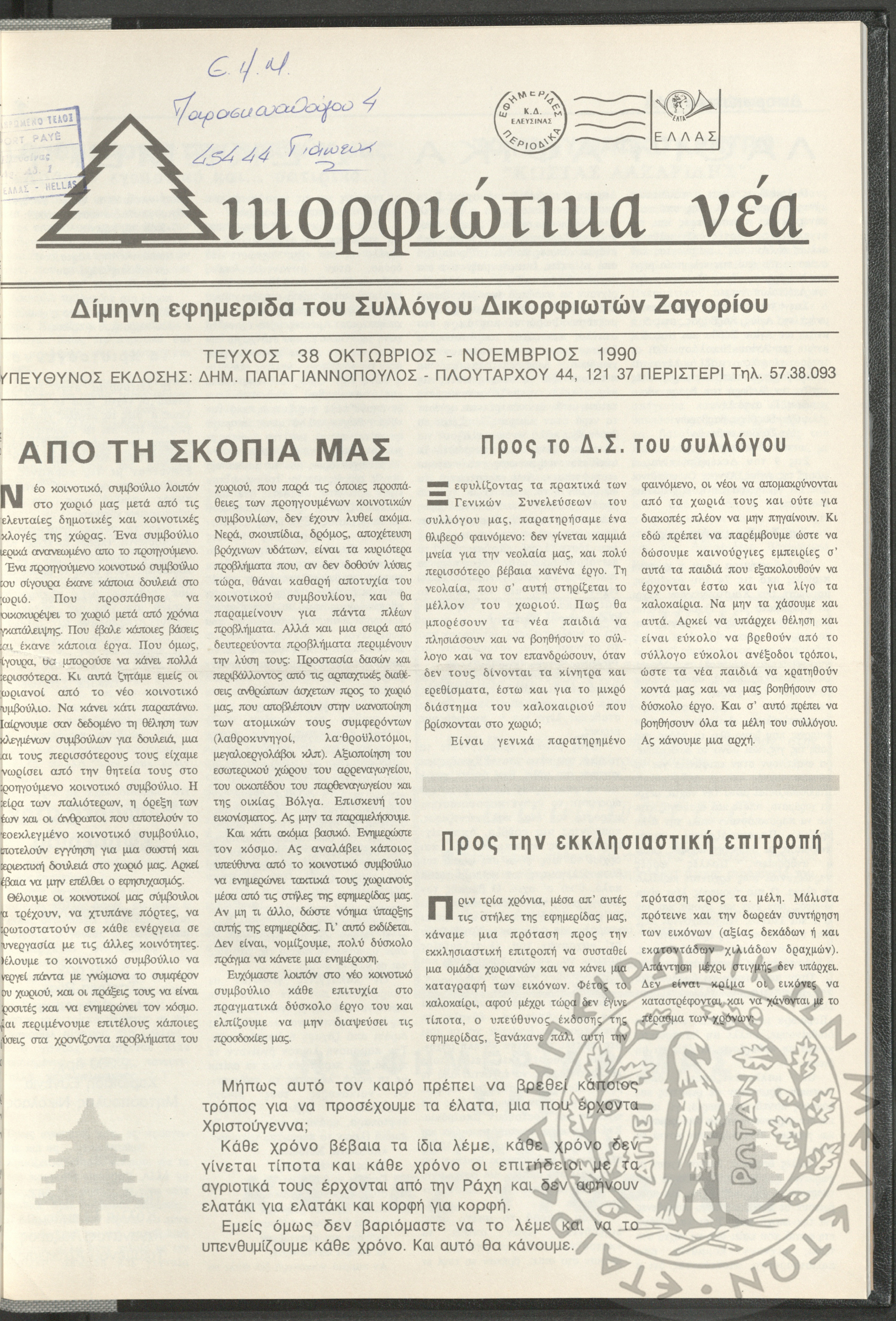 Δικορφιώτικα νέα: Δίμηνη εφημερίδα του Συλλόγου Δικορφιωτών Ζαγορίου, 1990, φ. 38