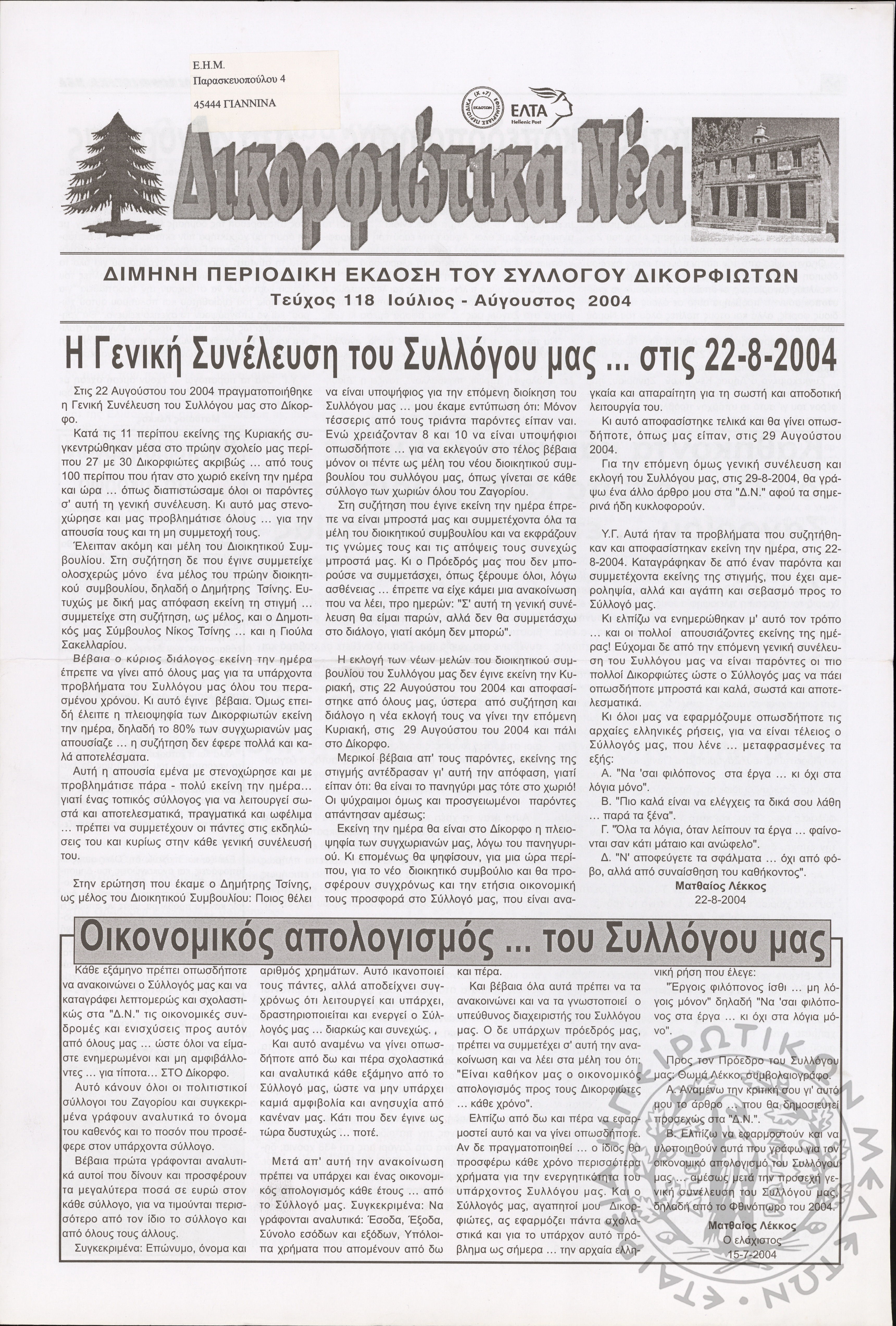 Δικορφιώτικα νέα: Δίμηνη περιοδική έκδοση του Συλλόγου Δικορφιωτών, 2004, φ. 118