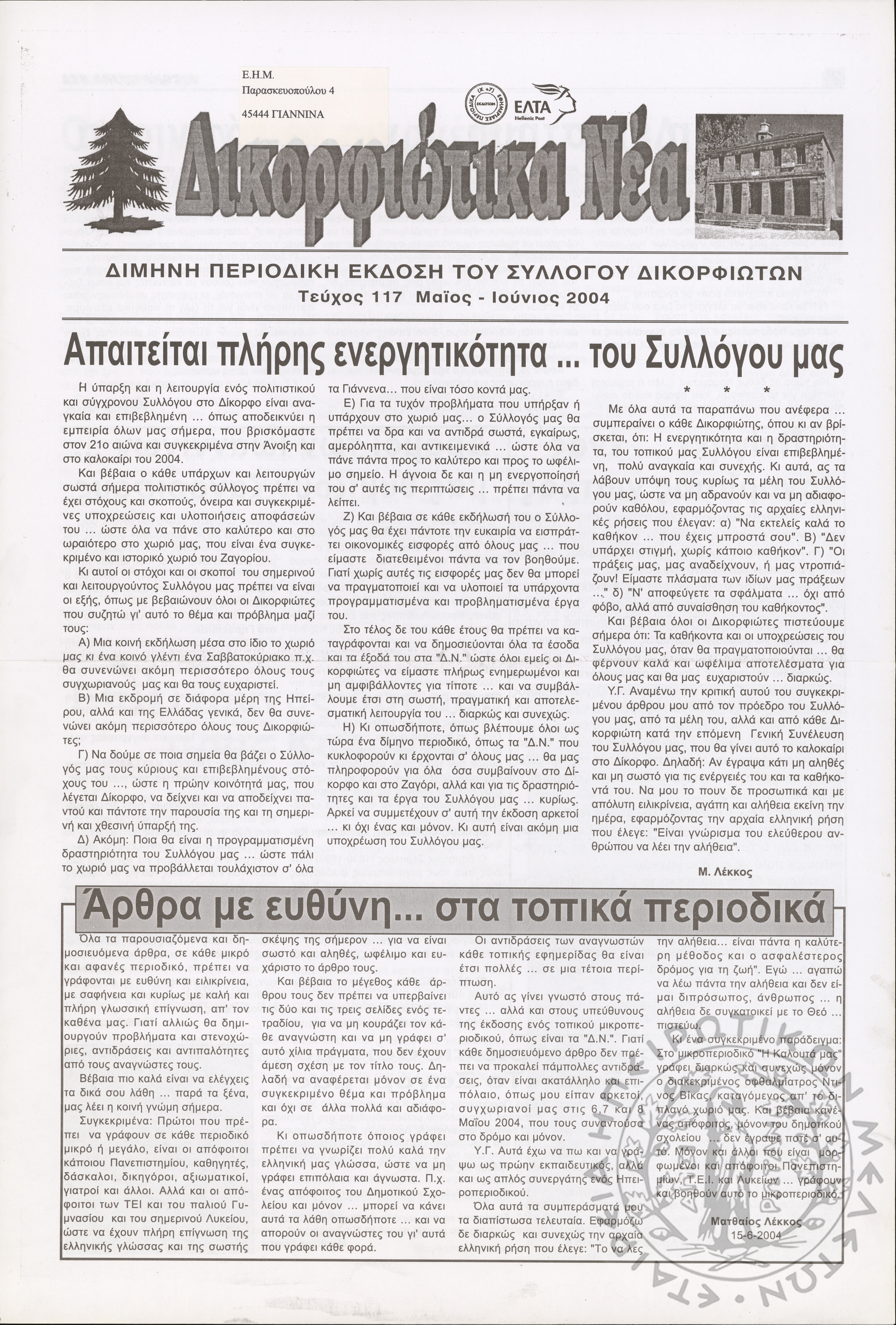 Δικορφιώτικα νέα: Δίμηνη περιοδική έκδοση του Συλλόγου Δικορφιωτών, 2004, φ. 117