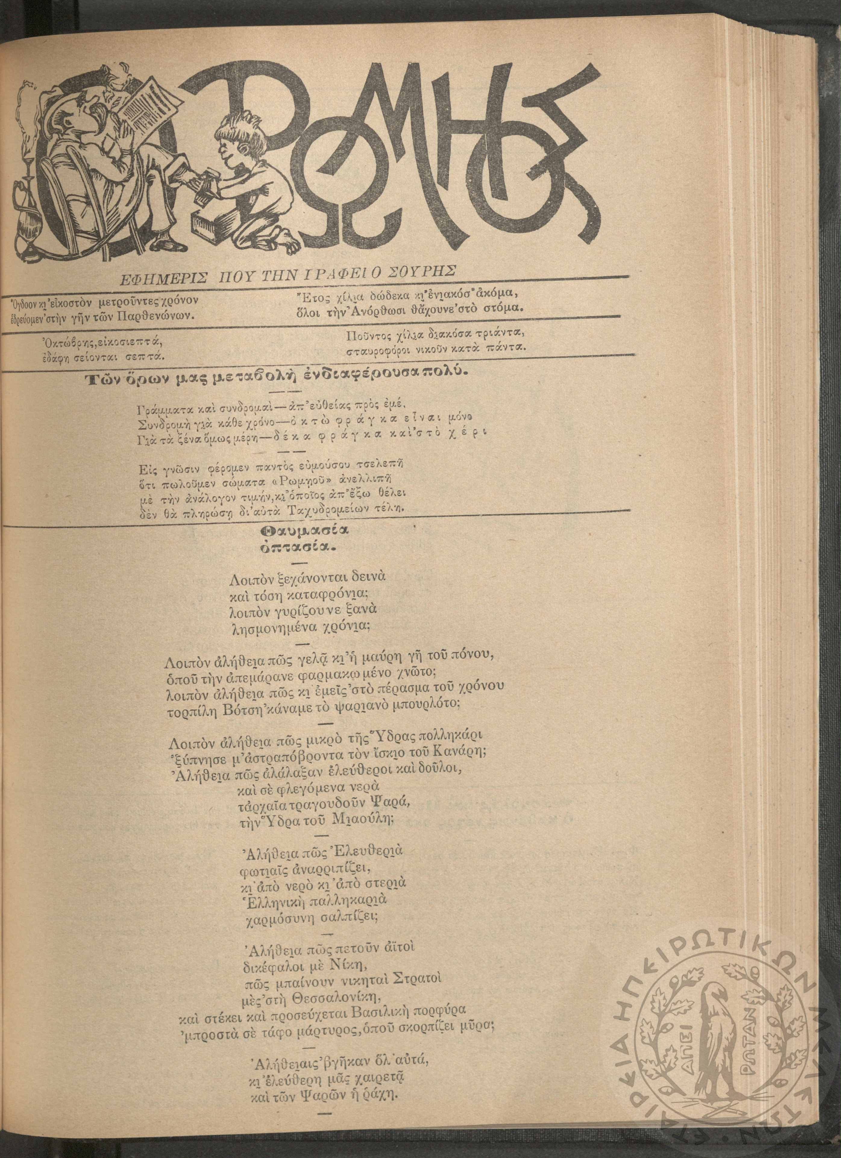 Ο Ρωμηός: Εφημερίς που την γράφει ο Σουρής, 1912, φ. 1226