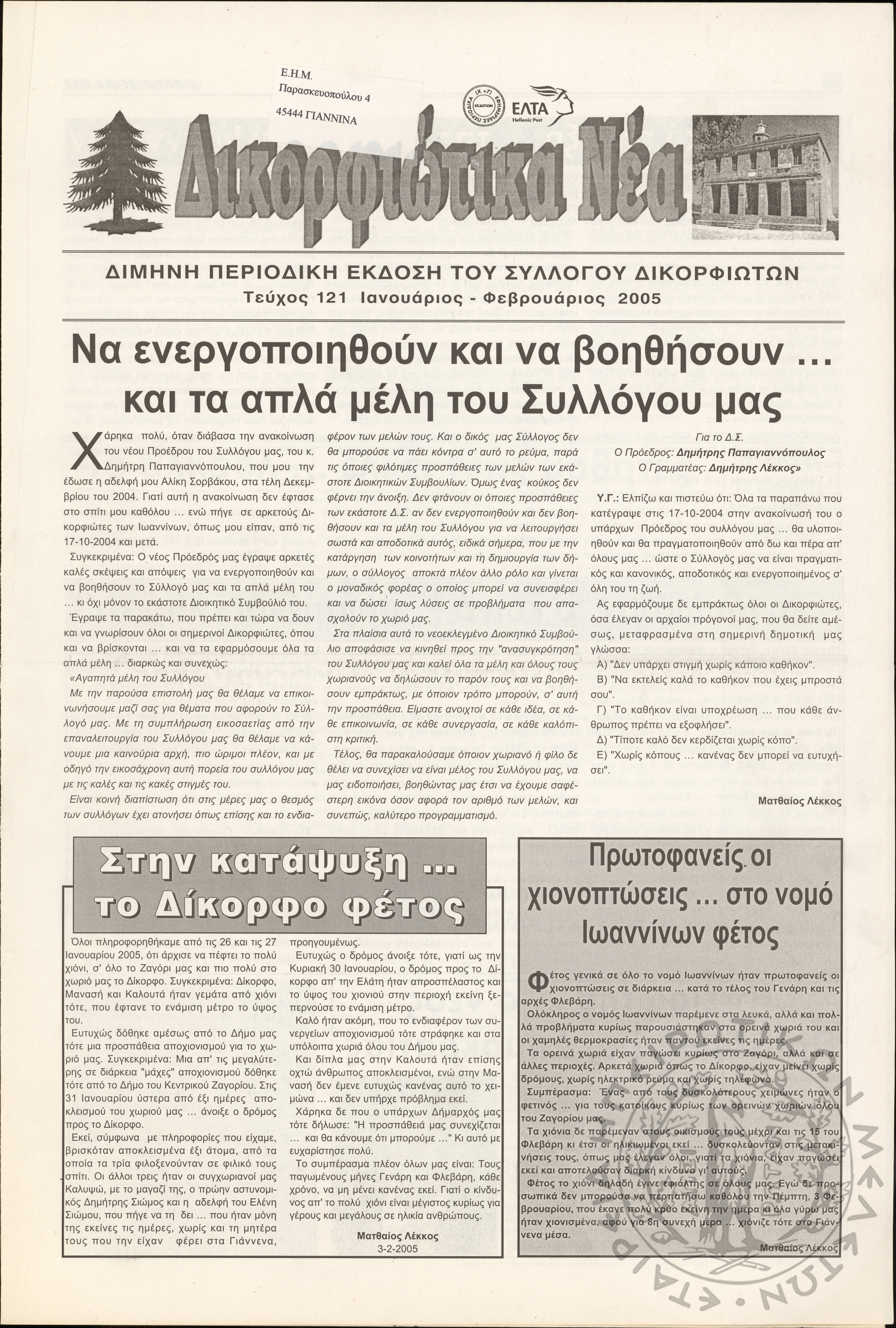 Δικορφιώτικα νέα: Δίμηνη περιοδική έκδοση του Συλλόγου Δικορφιωτών, 2005, φ. 121