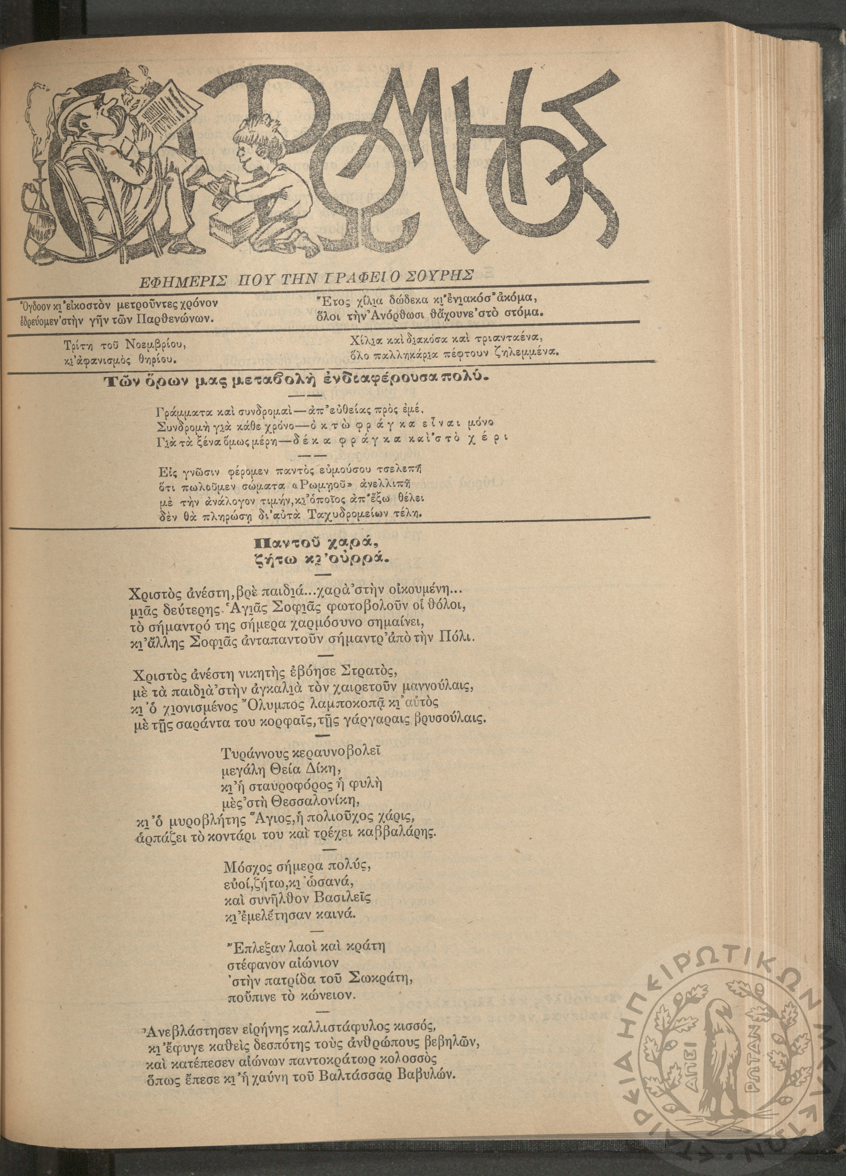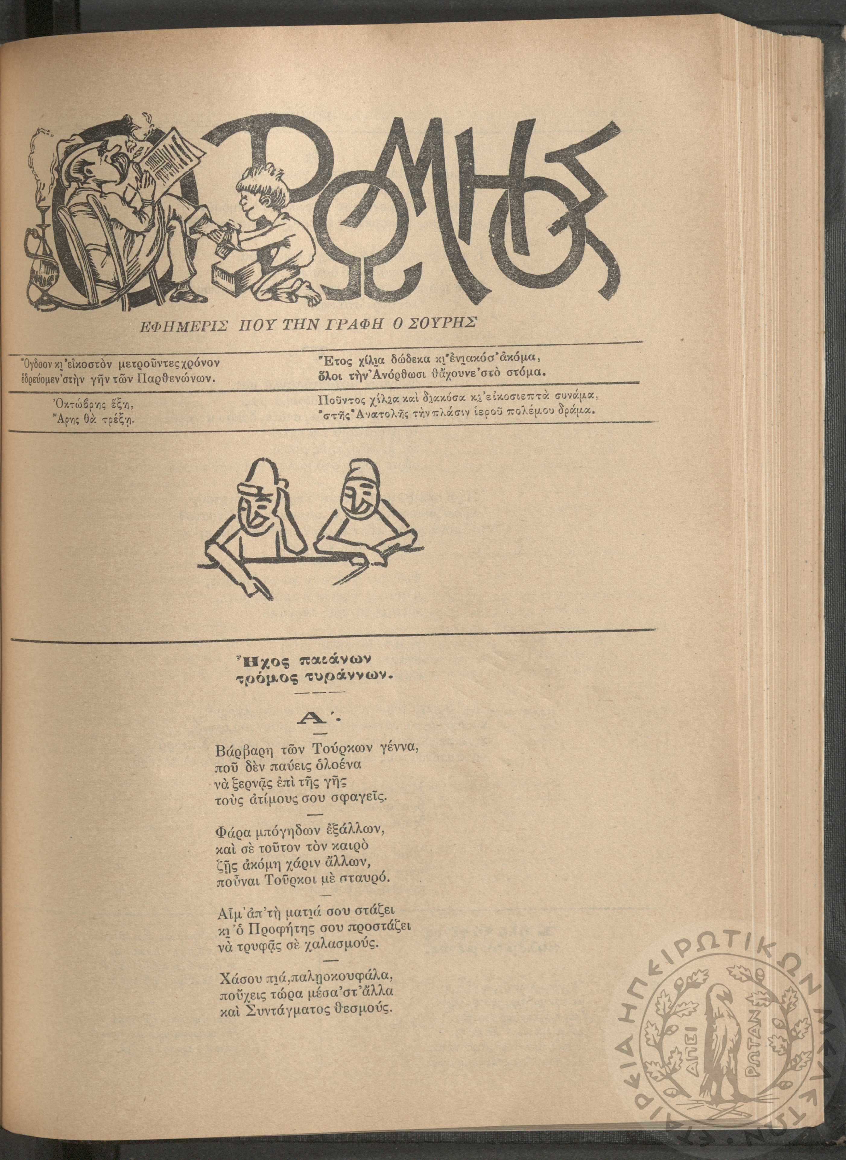 Ο Ρωμηός: Εφημερίς που την γράφει ο Σουρής, 1912, φ. 1228