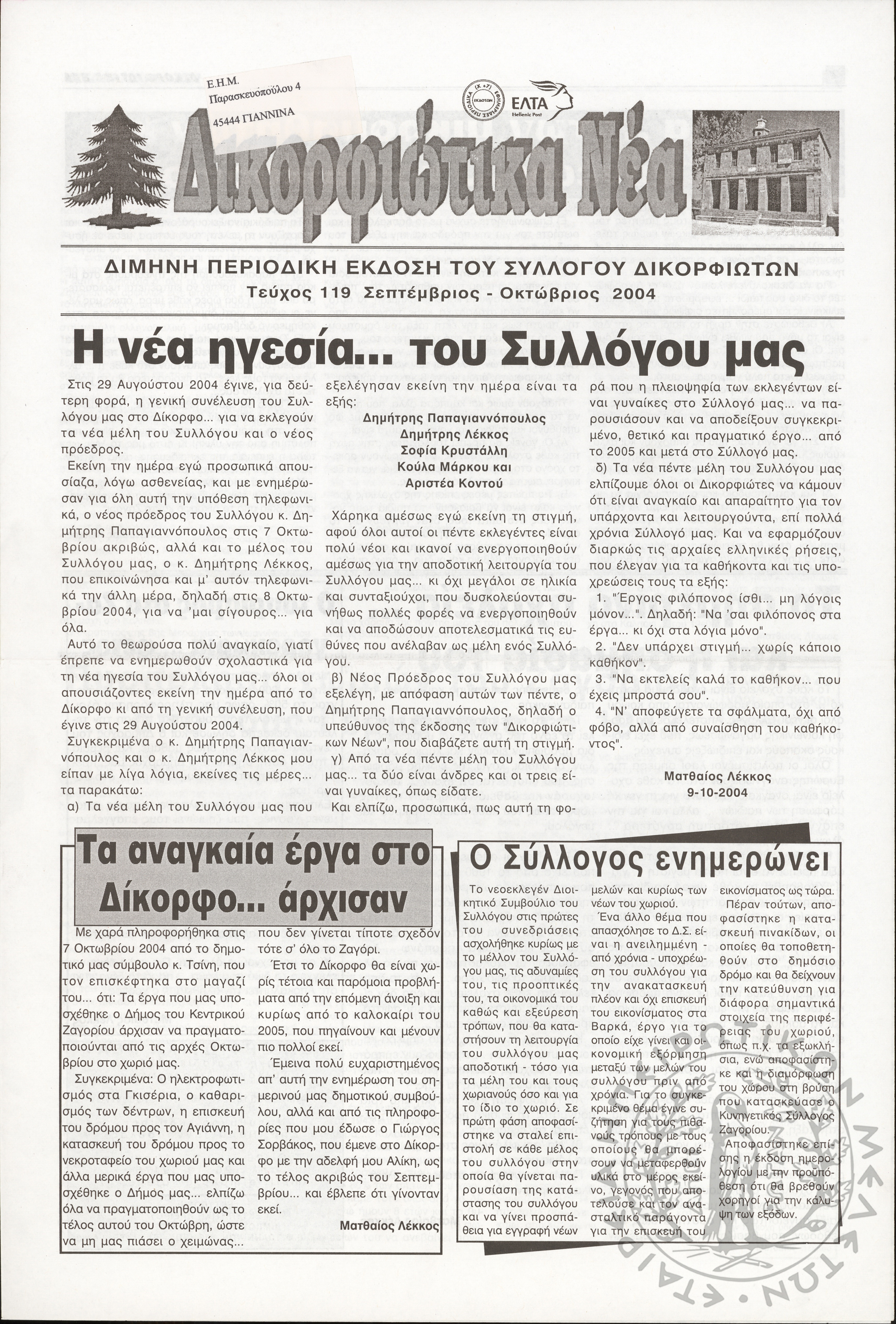Δικορφιώτικα νέα: Δίμηνη περιοδική έκδοση του Συλλόγου Δικορφιωτών, 2004, φ. 119
