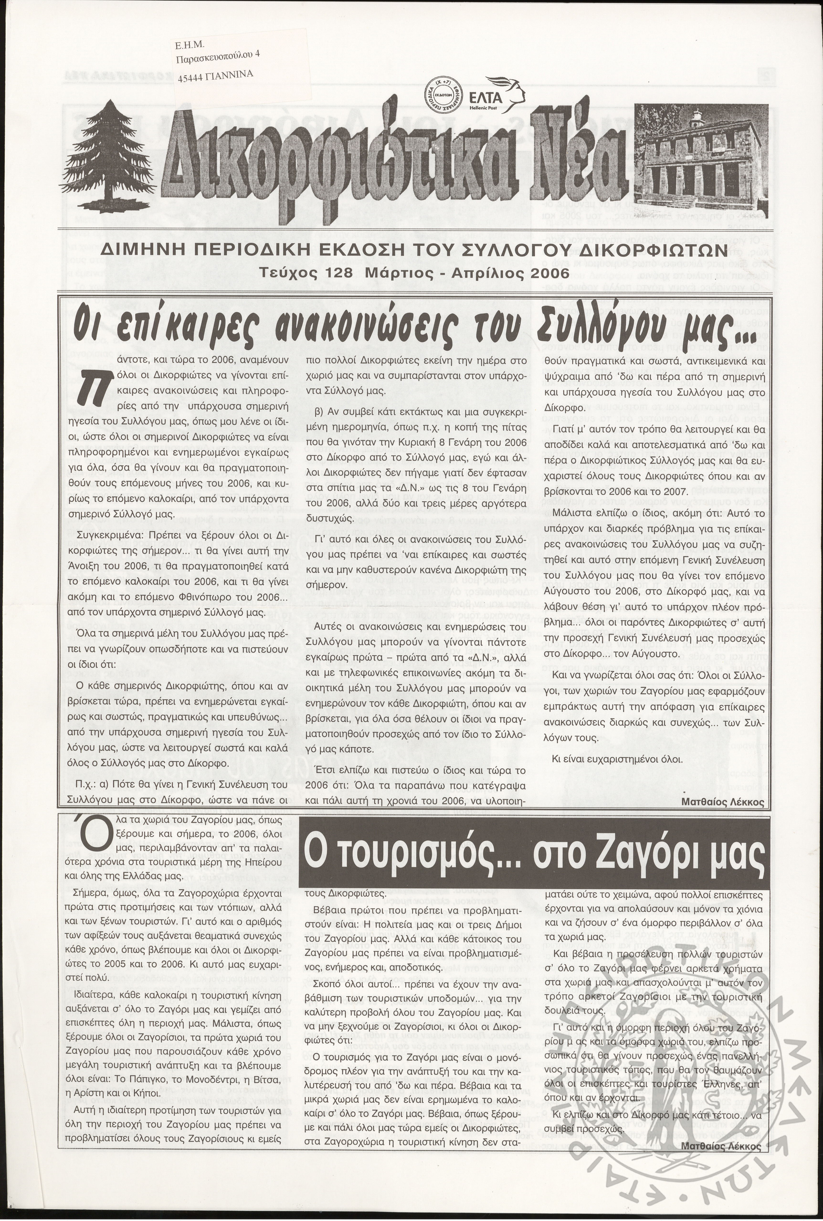 Δικορφιώτικα νέα: Δίμηνη περιοδική έκδοση του Συλλόγου Δικορφιωτών, 2006, φ. 128