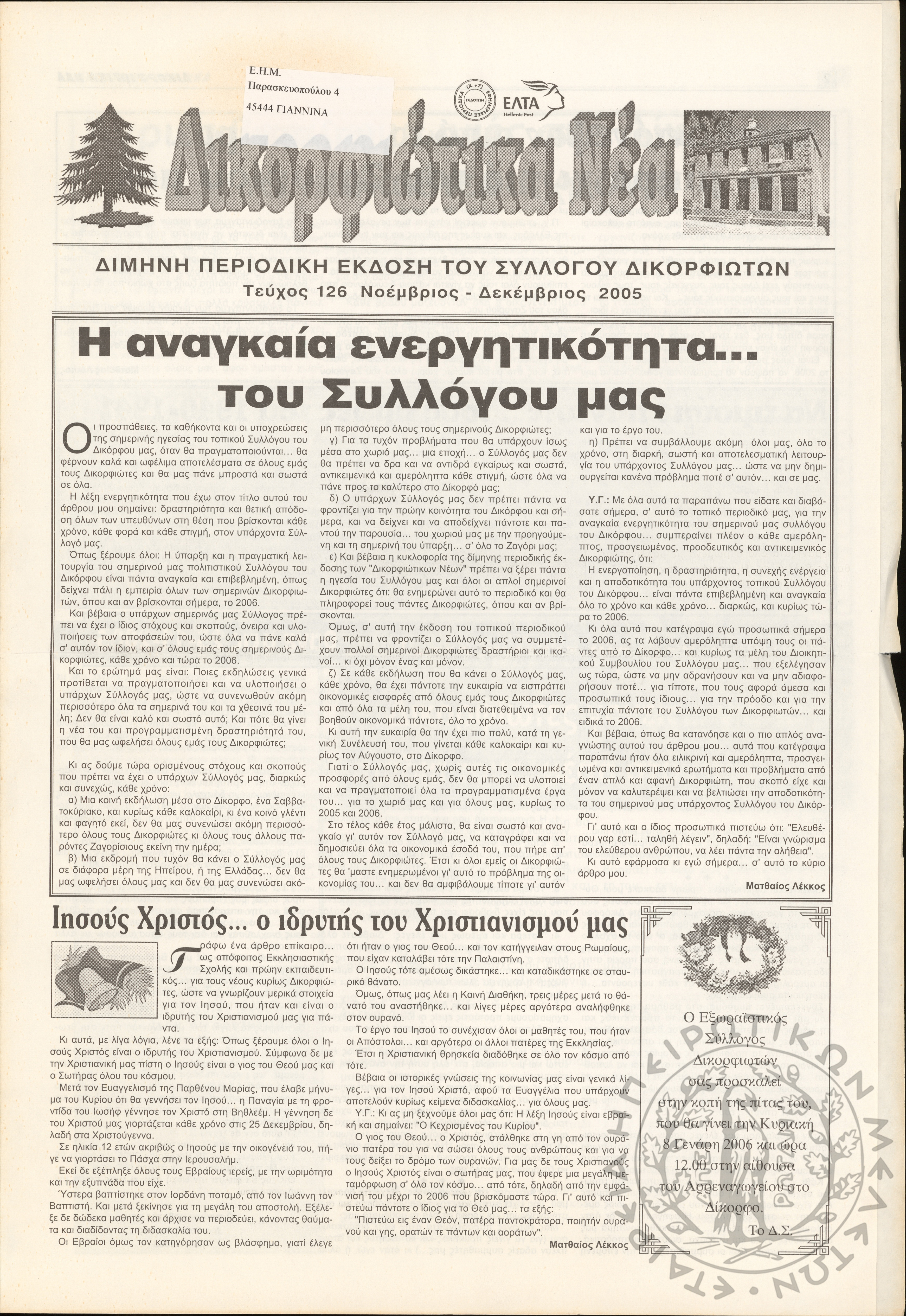 Δικορφιώτικα νέα: Δίμηνη περιοδική έκδοση του Συλλόγου Δικορφιωτών, 2005, φ. 126