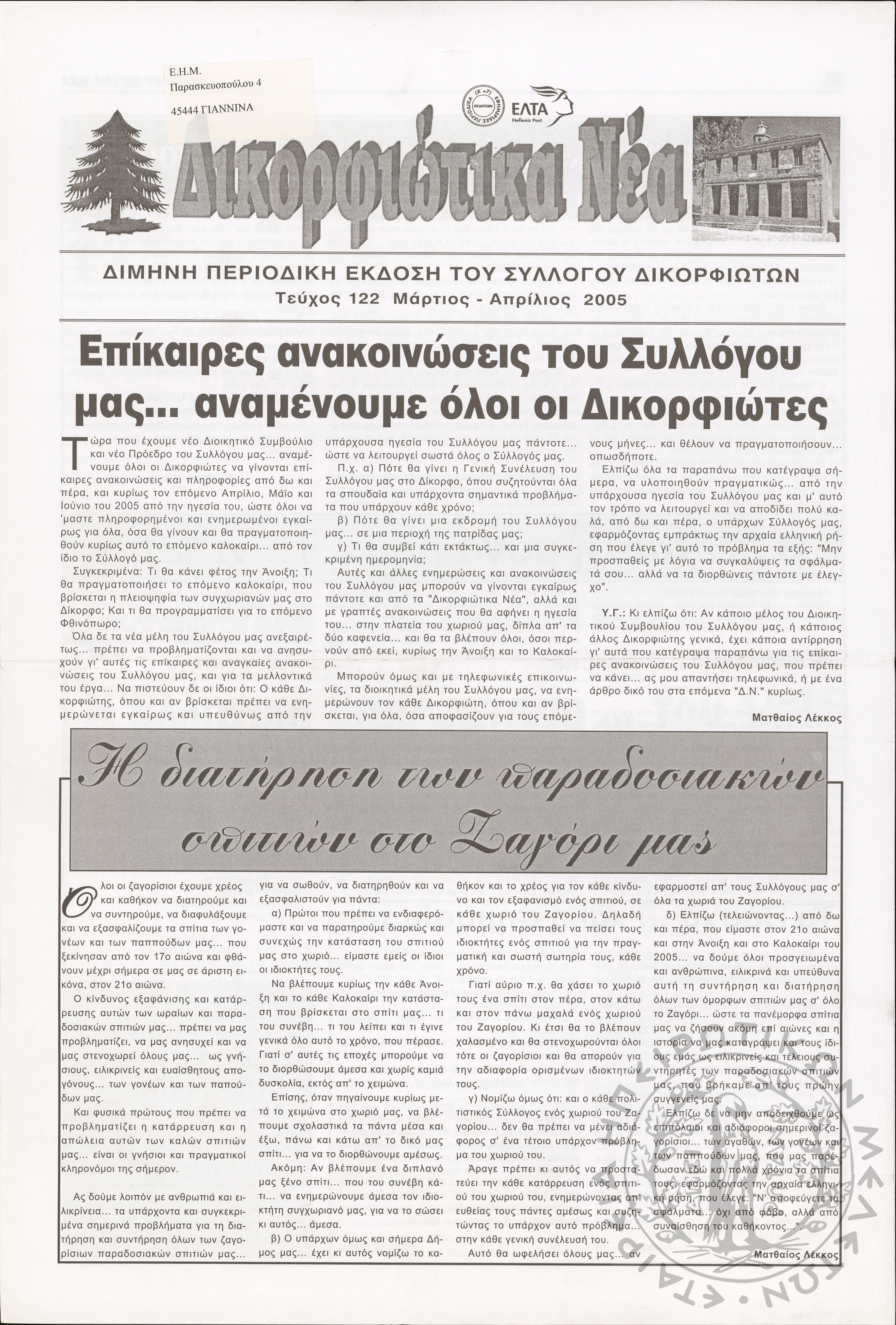 Δικορφιώτικα νέα: Δίμηνη περιοδική έκδοση του Συλλόγου Δικορφιωτών, 2005, φ. 122
