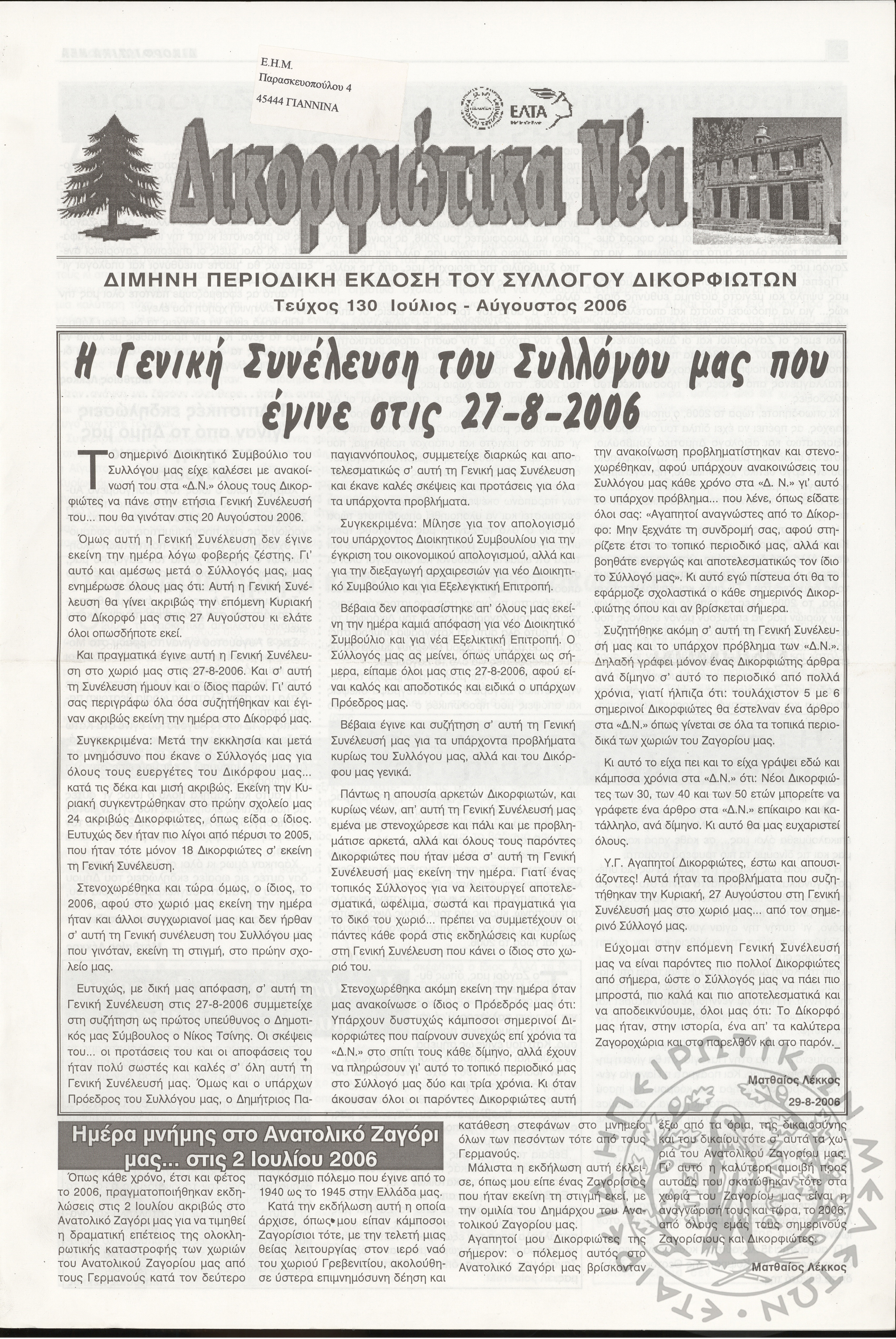 Δικορφιώτικα νέα: Δίμηνη περιοδική έκδοση του Συλλόγου Δικορφιωτών, 2006, φ. 130