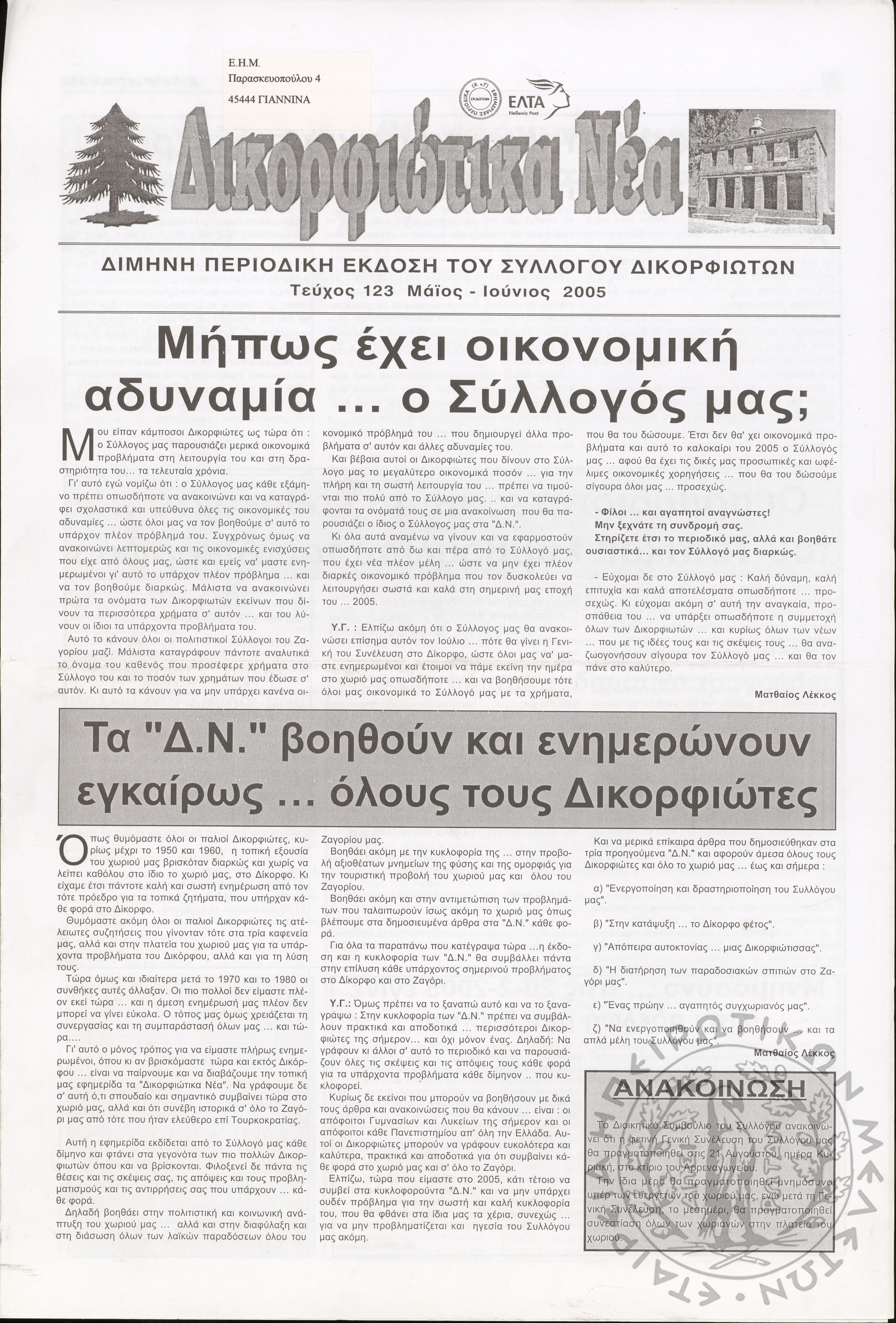 Δικορφιώτικα νέα: Δίμηνη περιοδική έκδοση του Συλλόγου Δικορφιωτών, 2005, φ. 123