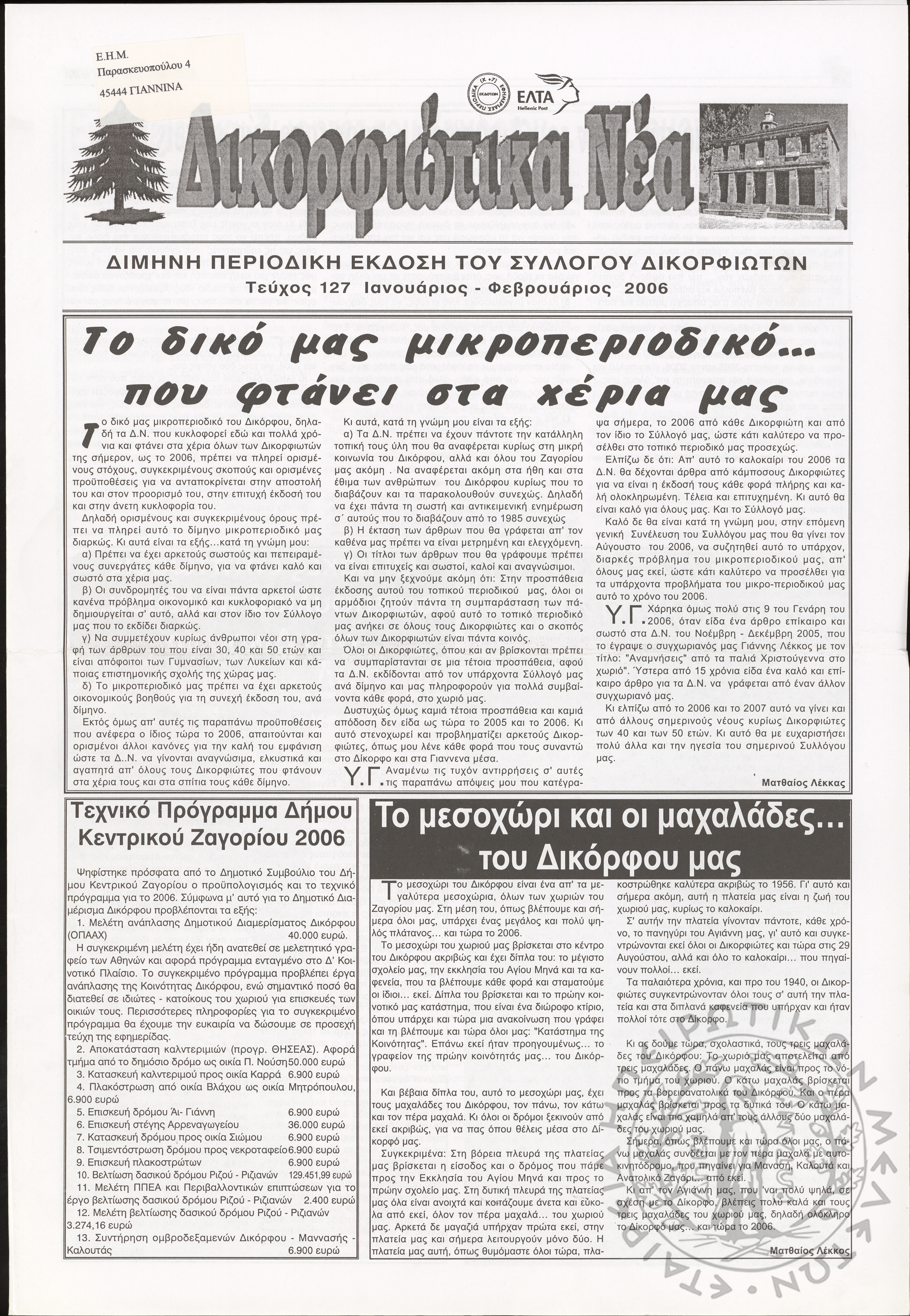 Δικορφιώτικα νέα: Δίμηνη περιοδική έκδοση του Συλλόγου Δικορφιωτών, 2006, φ. 127