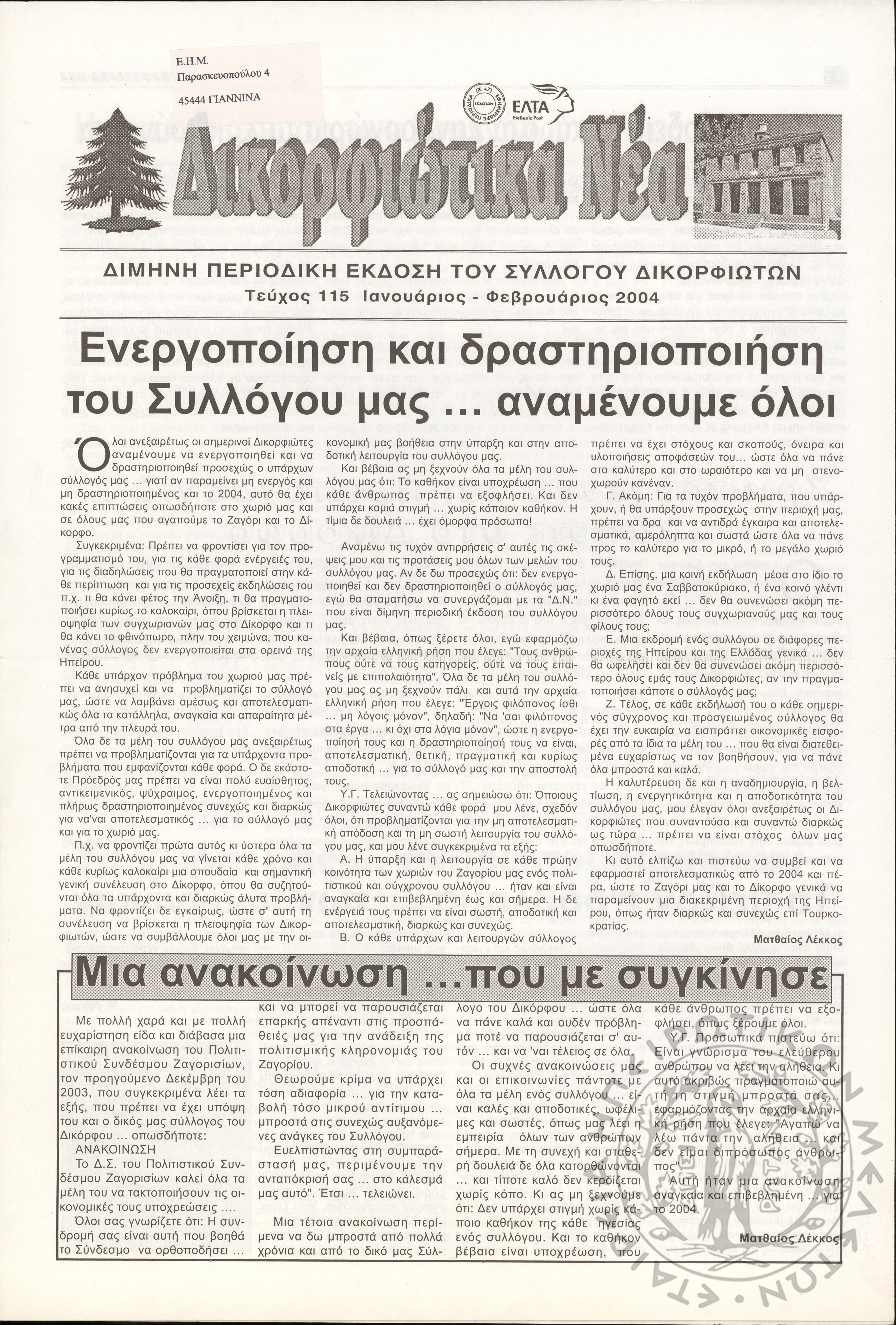 Δικορφιώτικα νέα: Δίμηνη περιοδική έκδοση του Συλλόγου Δικορφιωτών, 2004, φ. 115