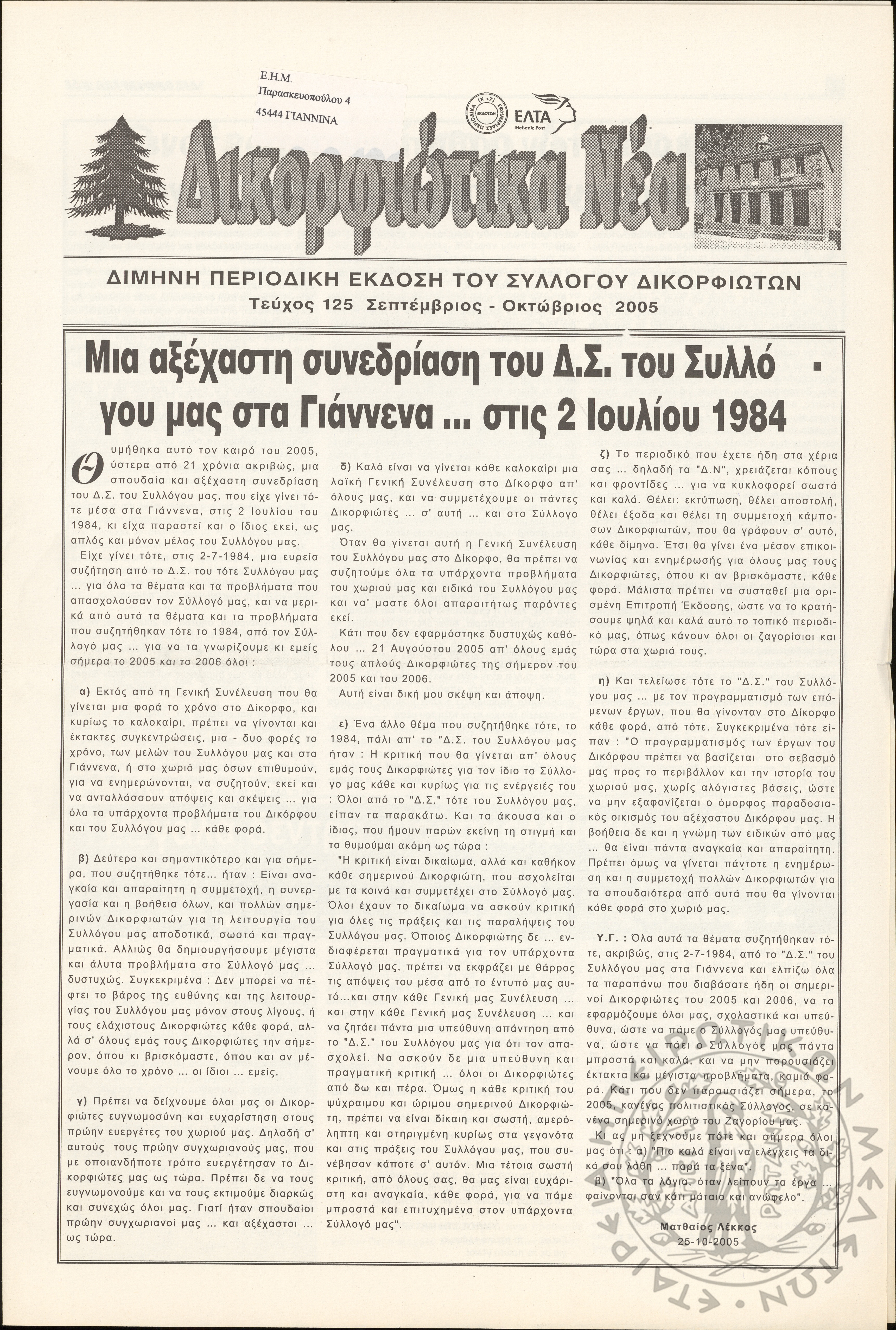 Δικορφιώτικα νέα: Δίμηνη περιοδική έκδοση του Συλλόγου Δικορφιωτών, 2005, φ. 125