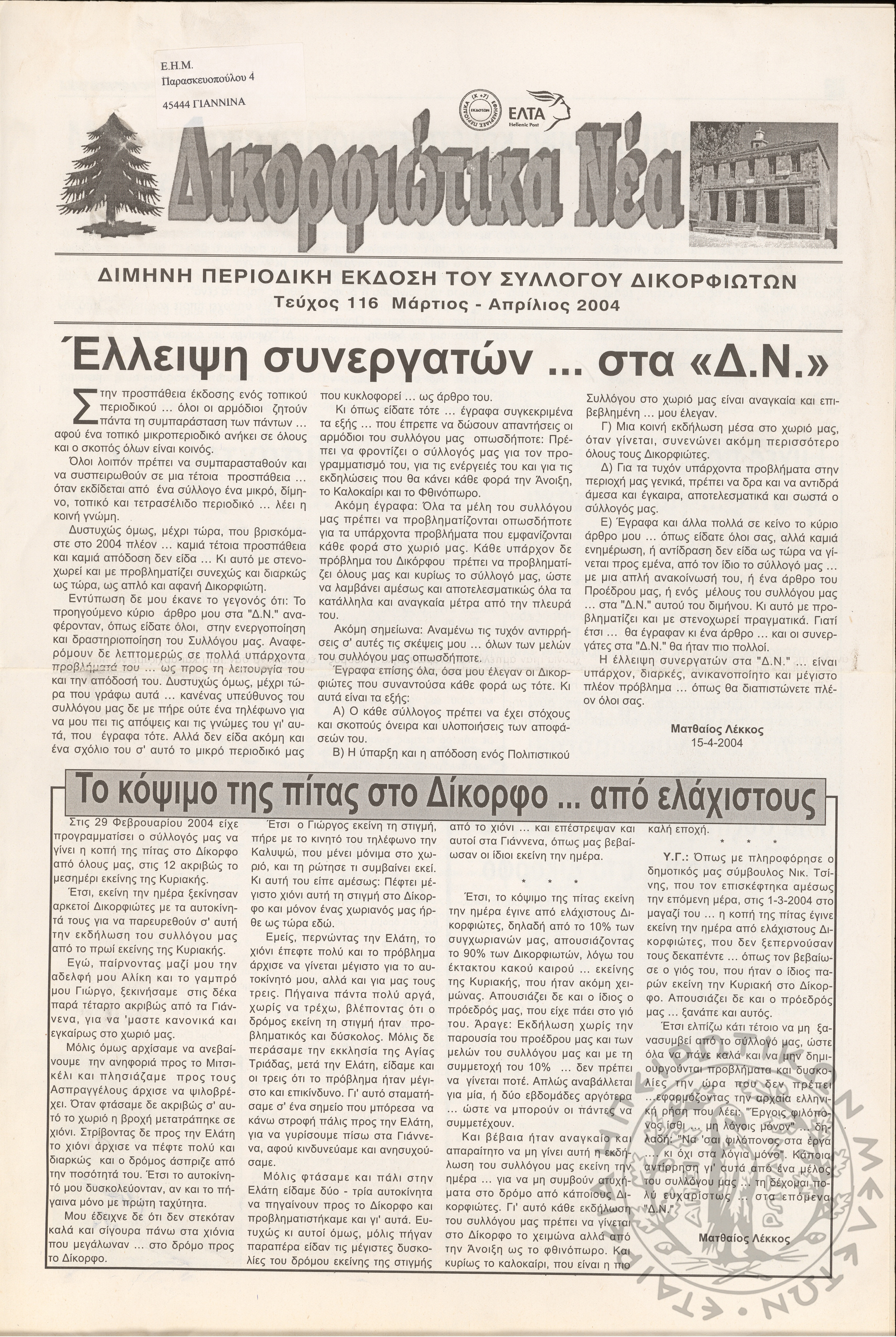 Δικορφιώτικα νέα: Δίμηνη περιοδική έκδοση του Συλλόγου Δικορφιωτών, 2004, φ. 116
