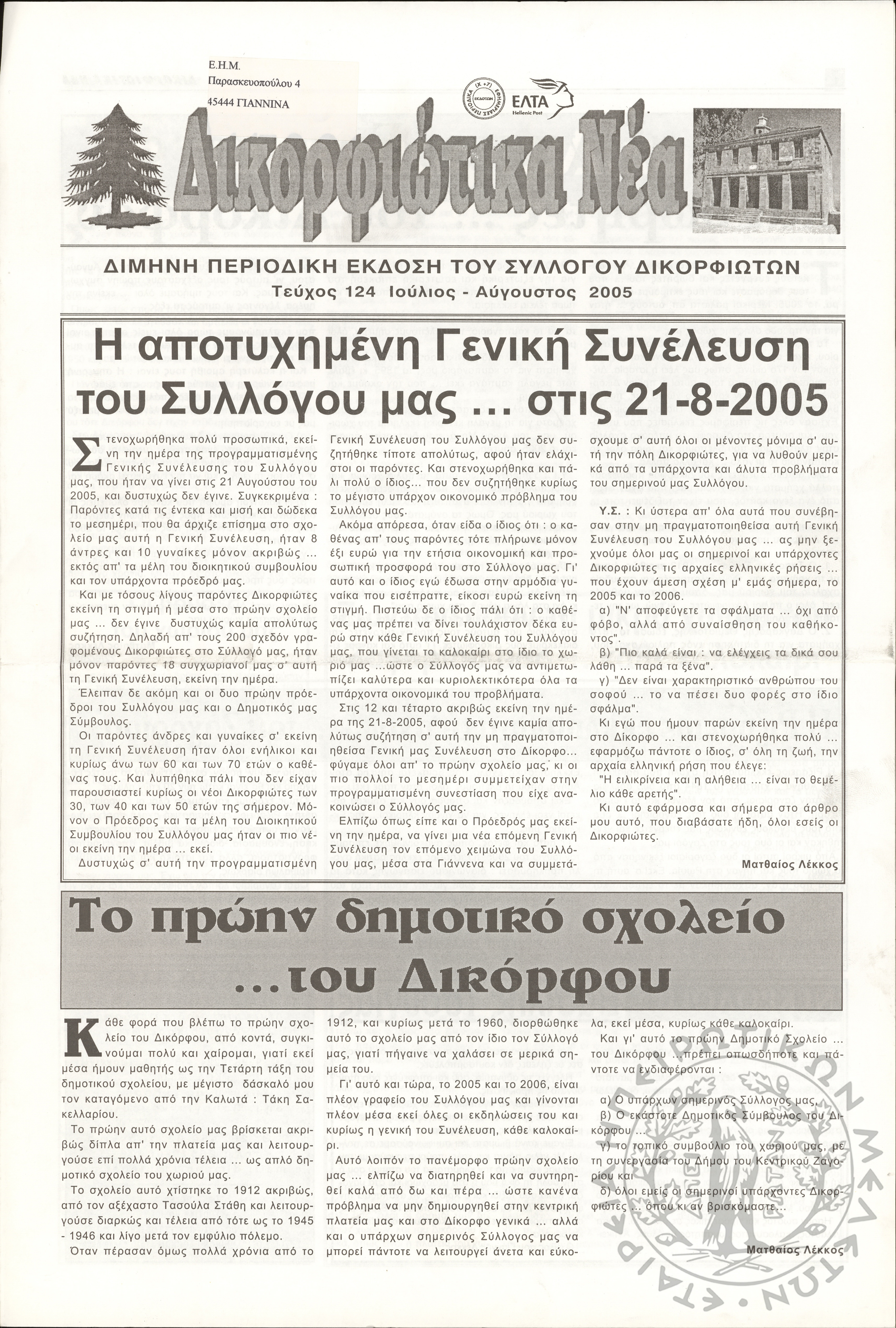 Δικορφιώτικα νέα: Δίμηνη περιοδική έκδοση του Συλλόγου Δικορφιωτών, 2005, φ. 124