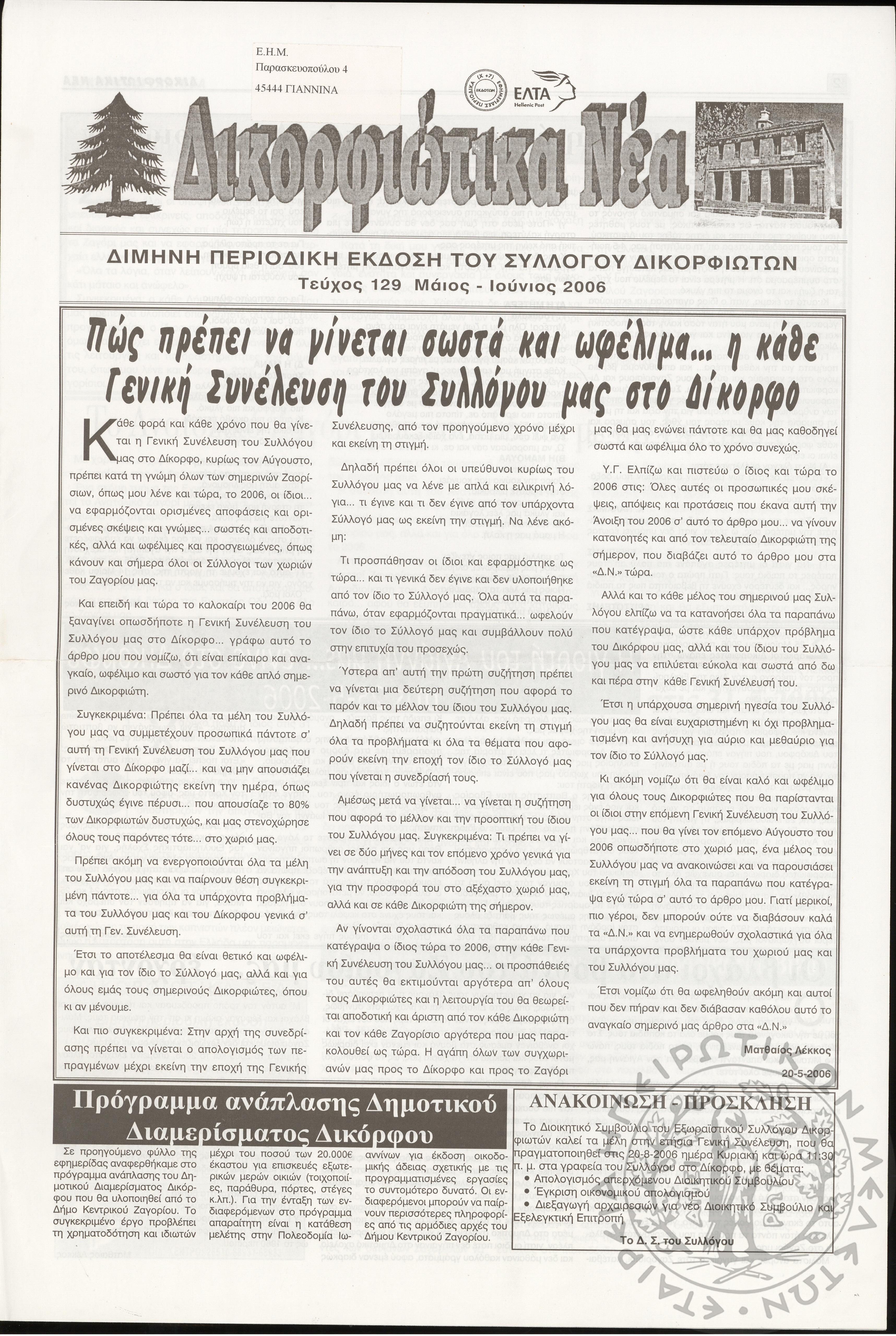Δικορφιώτικα νέα: Δίμηνη περιοδική έκδοση του Συλλόγου Δικορφιωτών, 2006, φ. 129