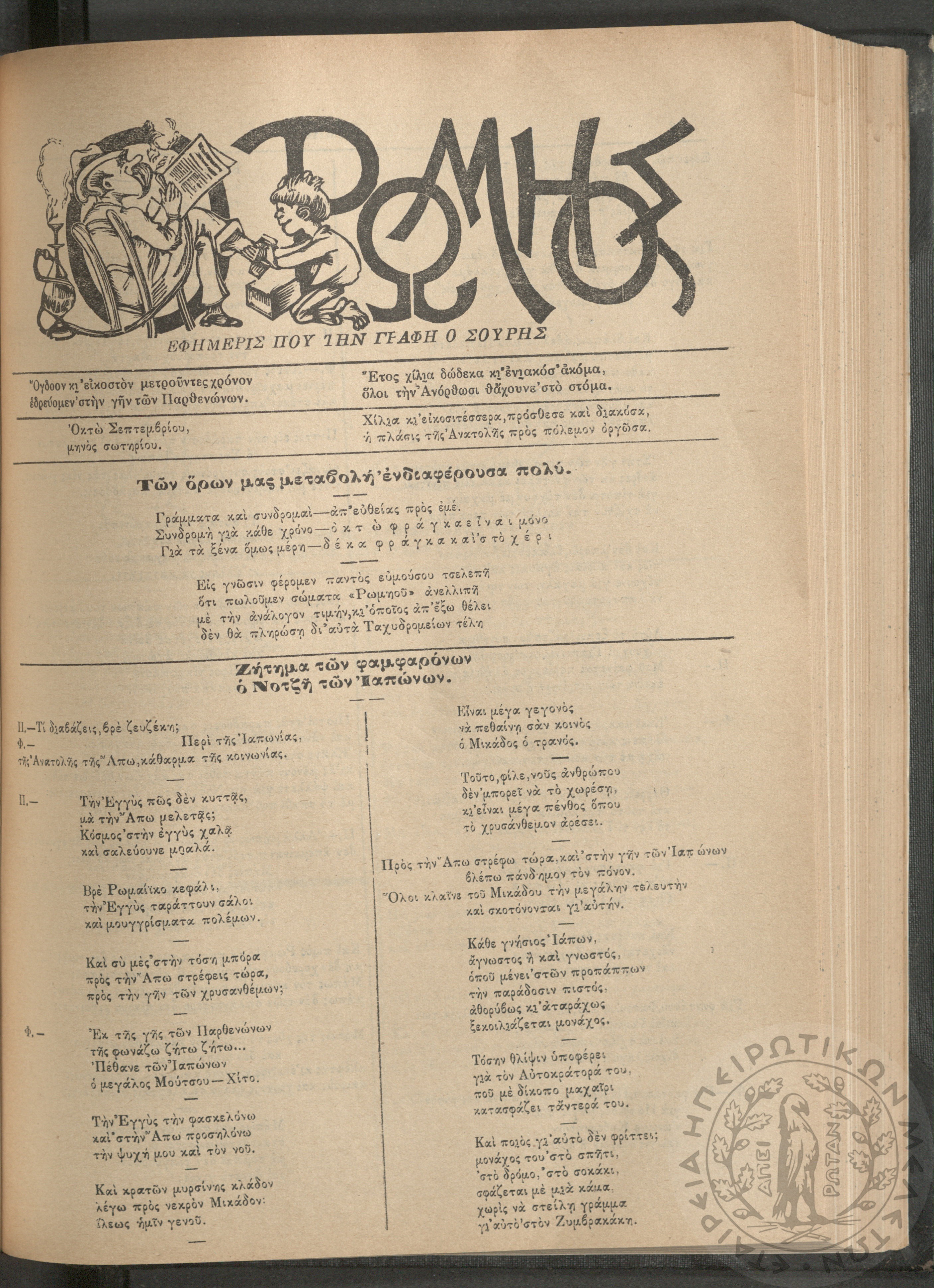 Ο Ρωμηός: Εφημερίς που την γράφει ο Σουρής, 1912, φ. 1231