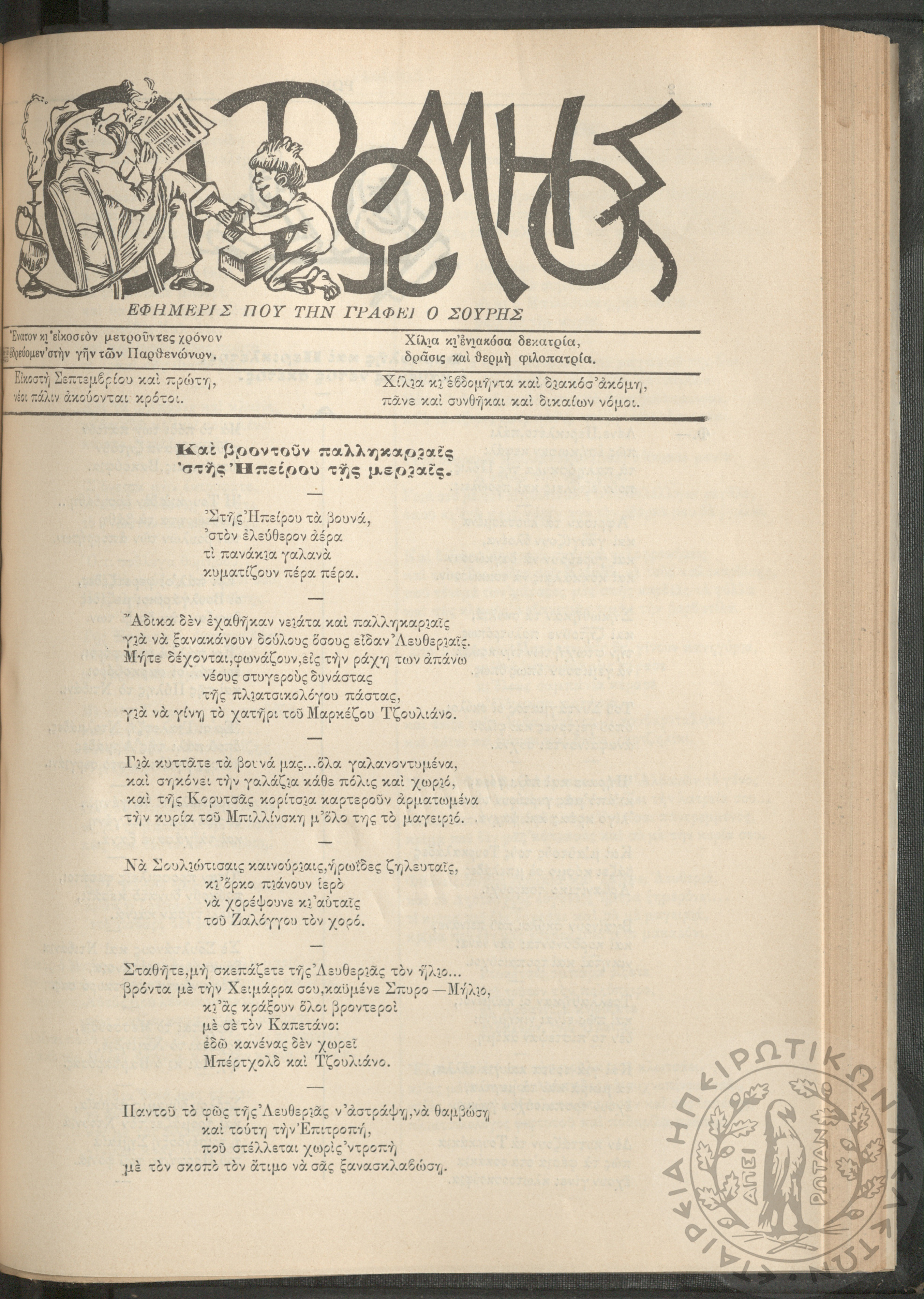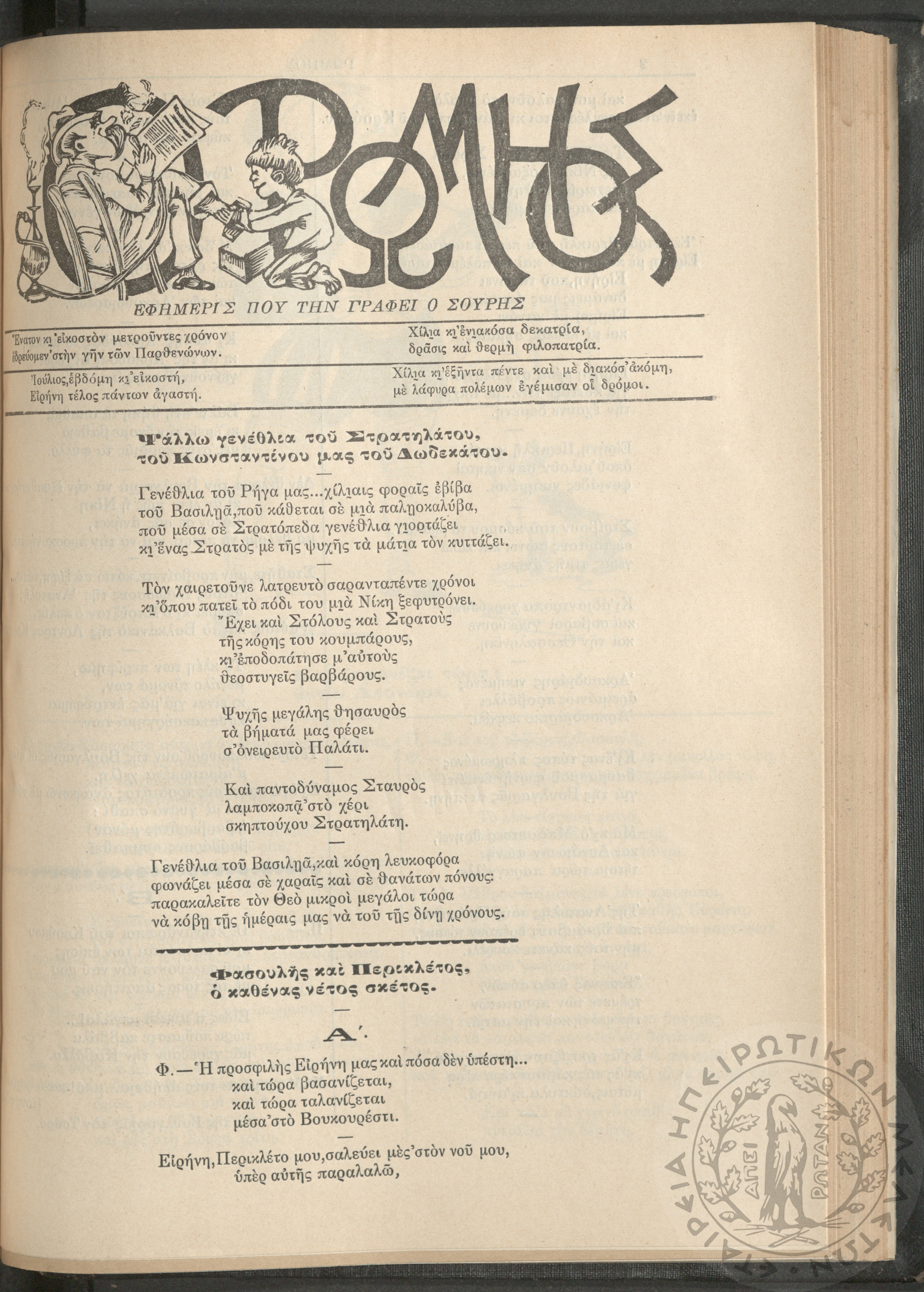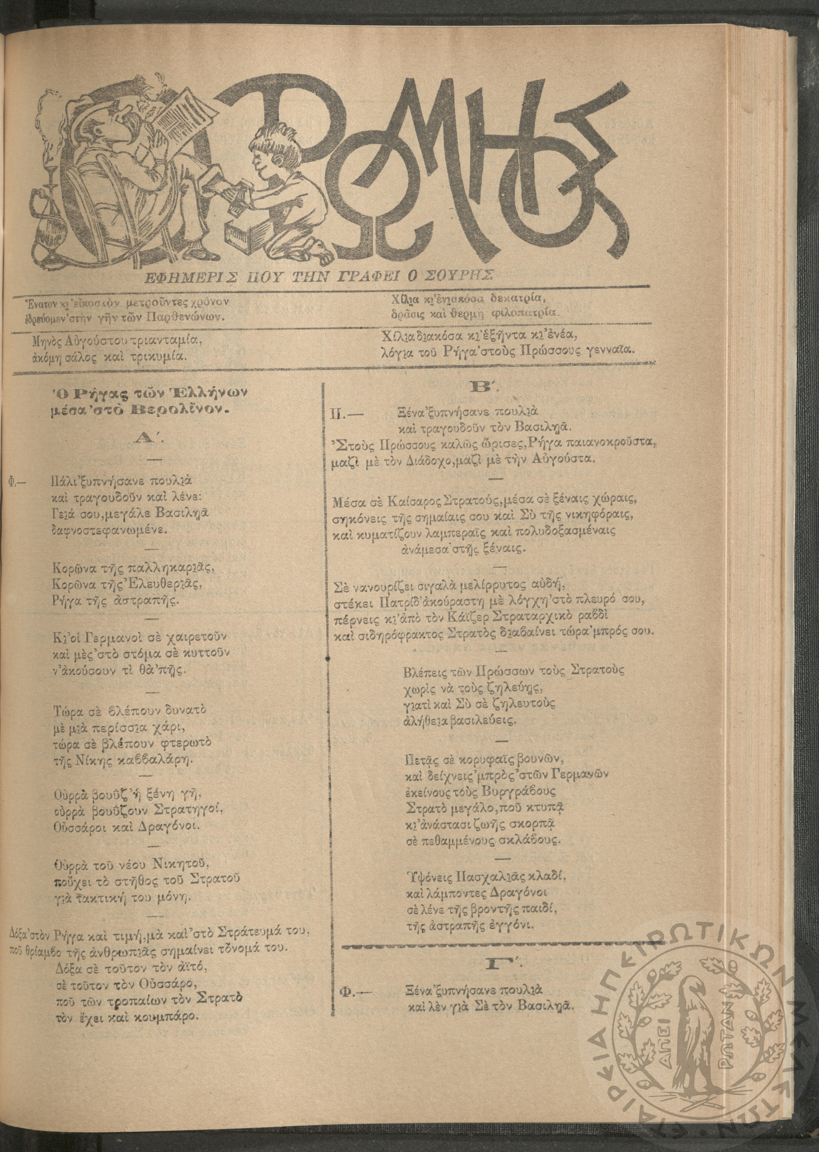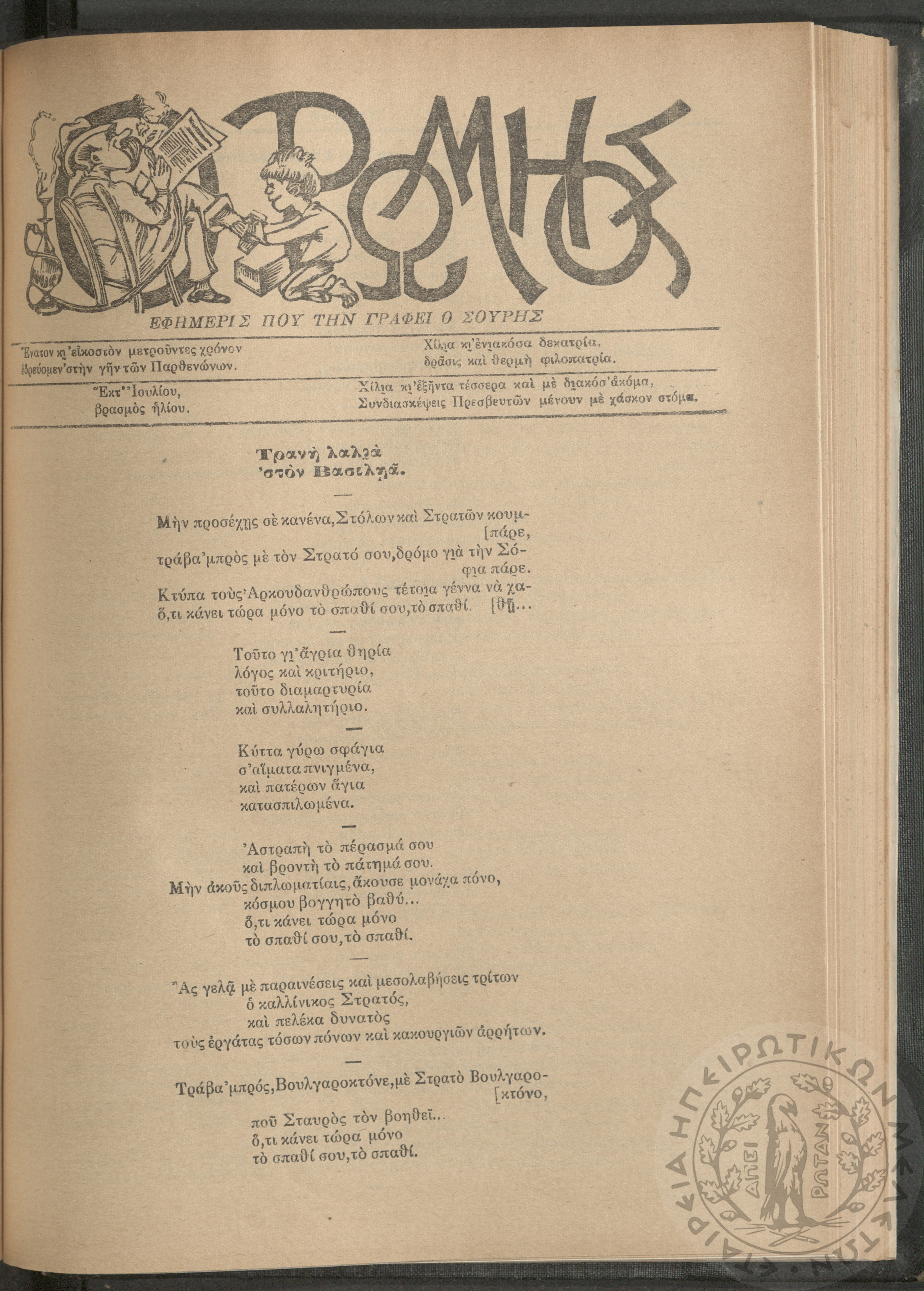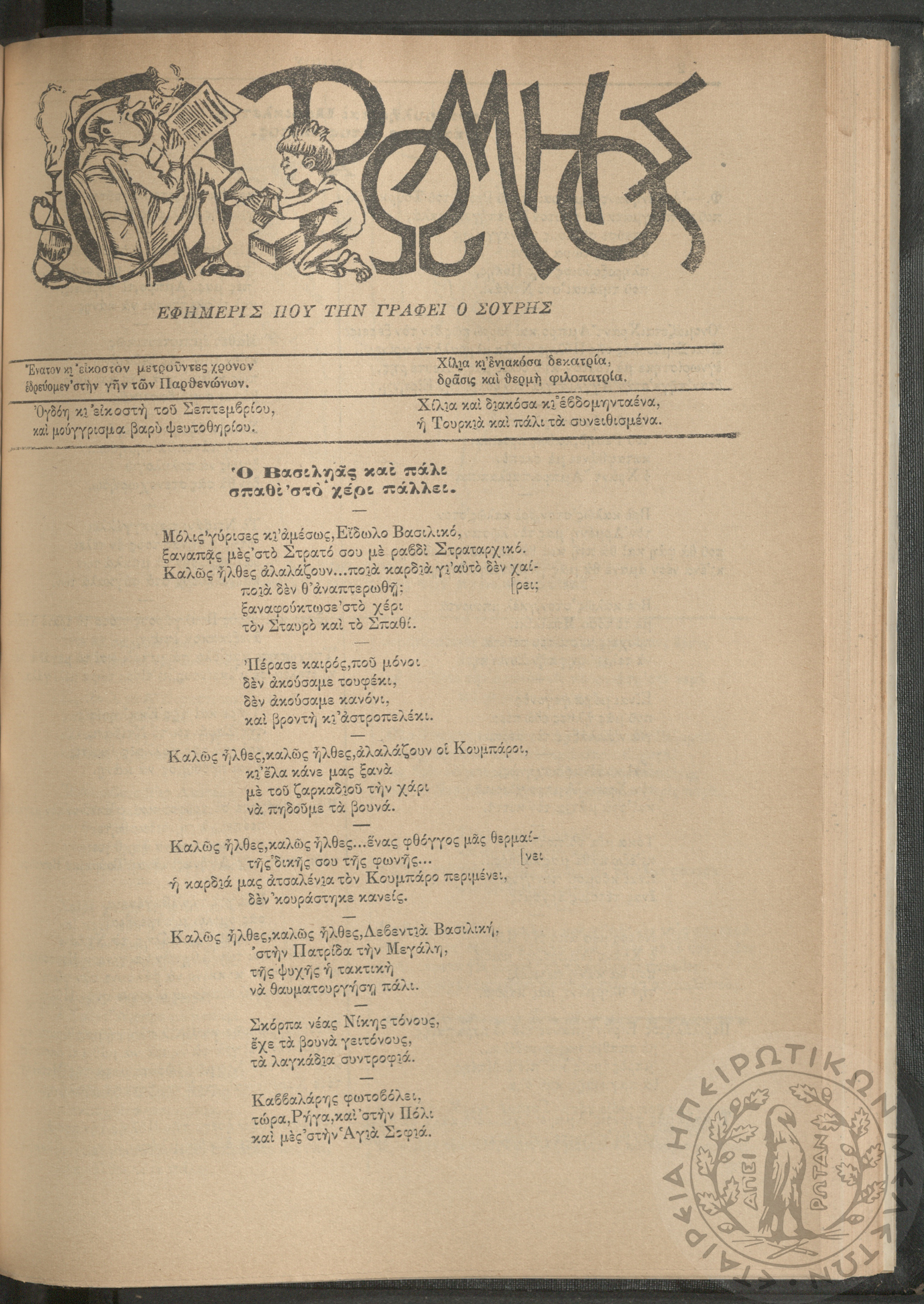 Ο Ρωμηός: Εφημερίς που την γράφει ο Σουρής, 1913, φ. 1269
