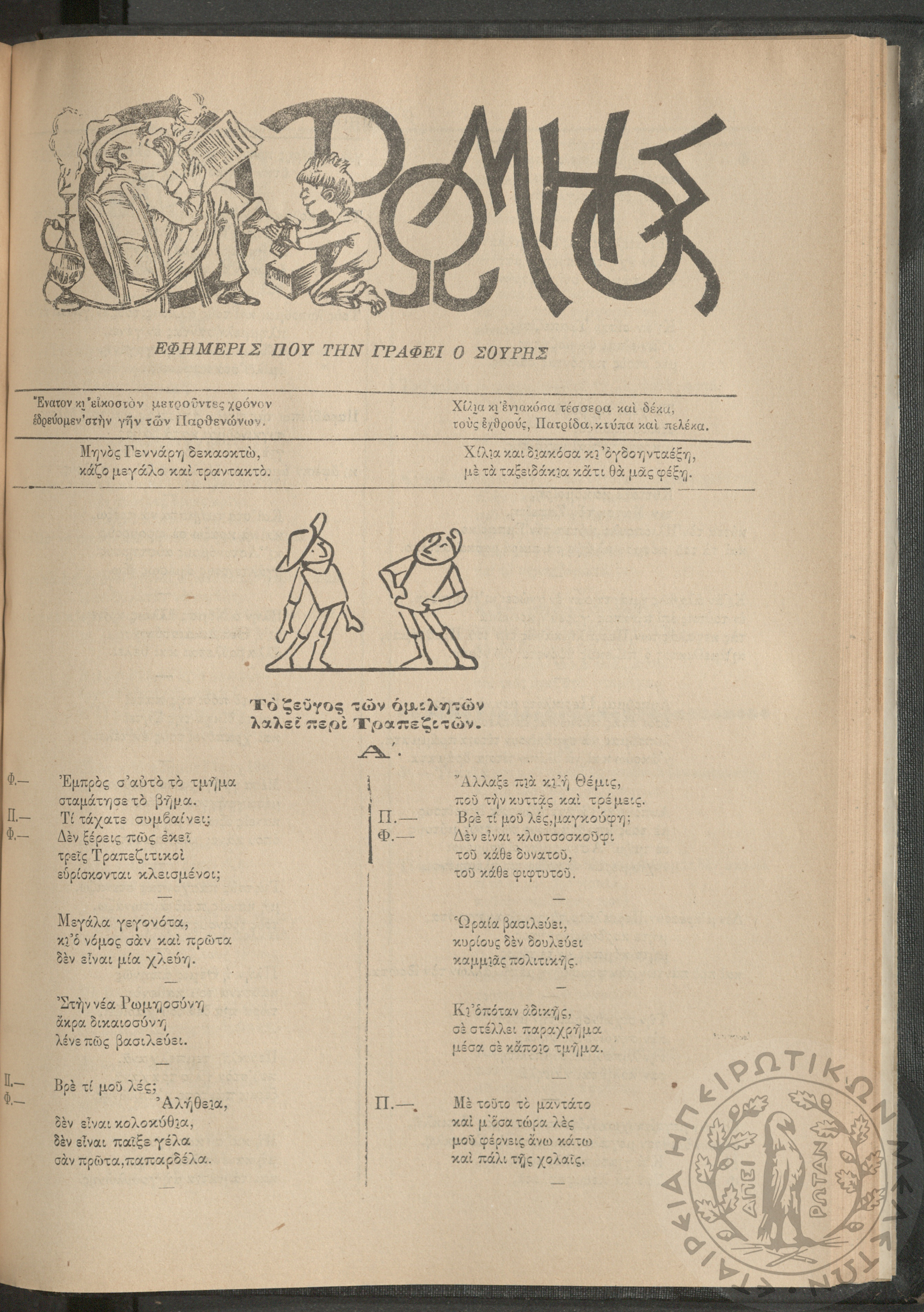 Ο Ρωμηός: Εφημερίς που την γράφει ο Σουρής, 1914, φ. 1286