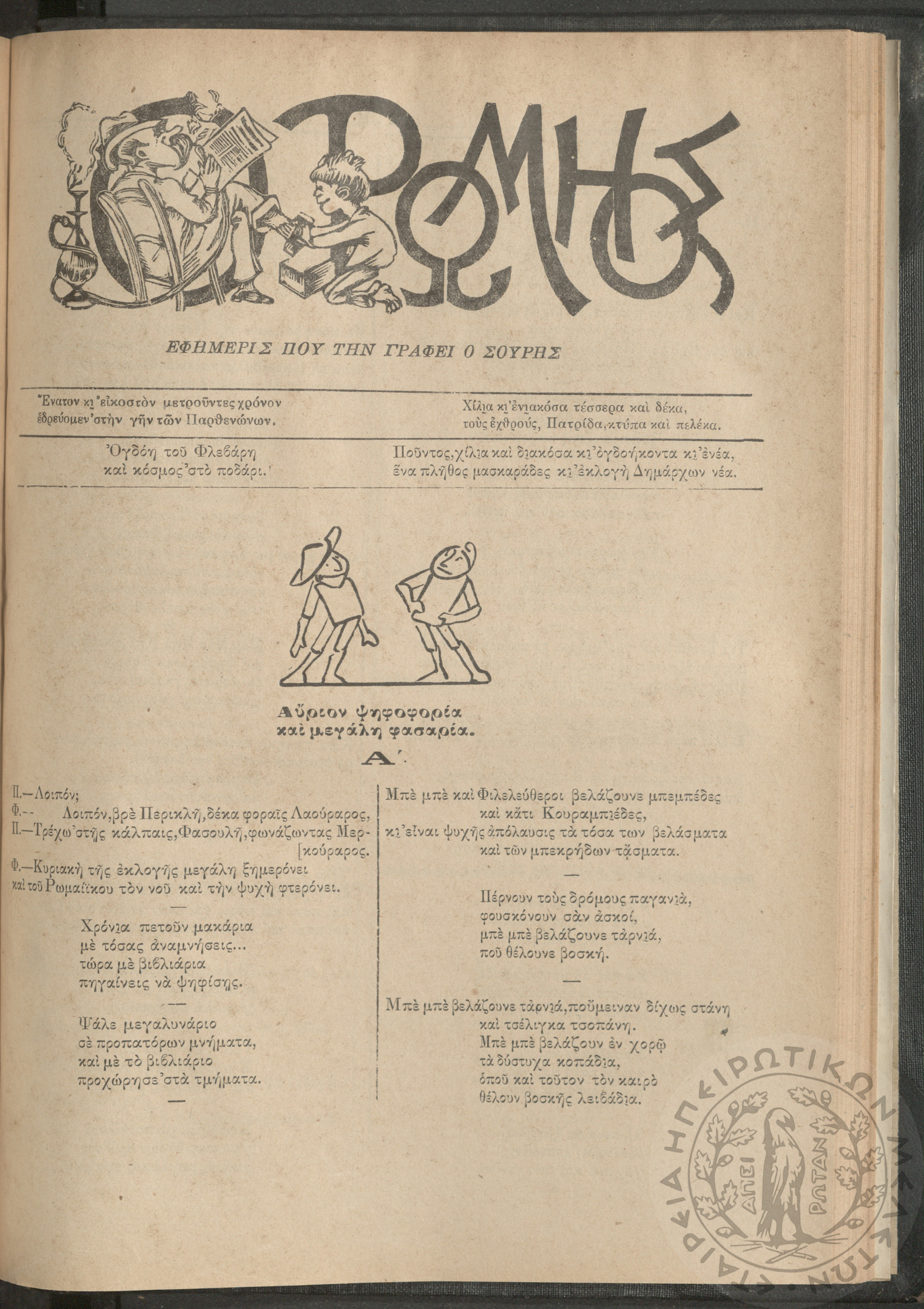 Ο Ρωμηός: Εφημερίς που την γράφει ο Σουρής, 1914, φ. 1285
