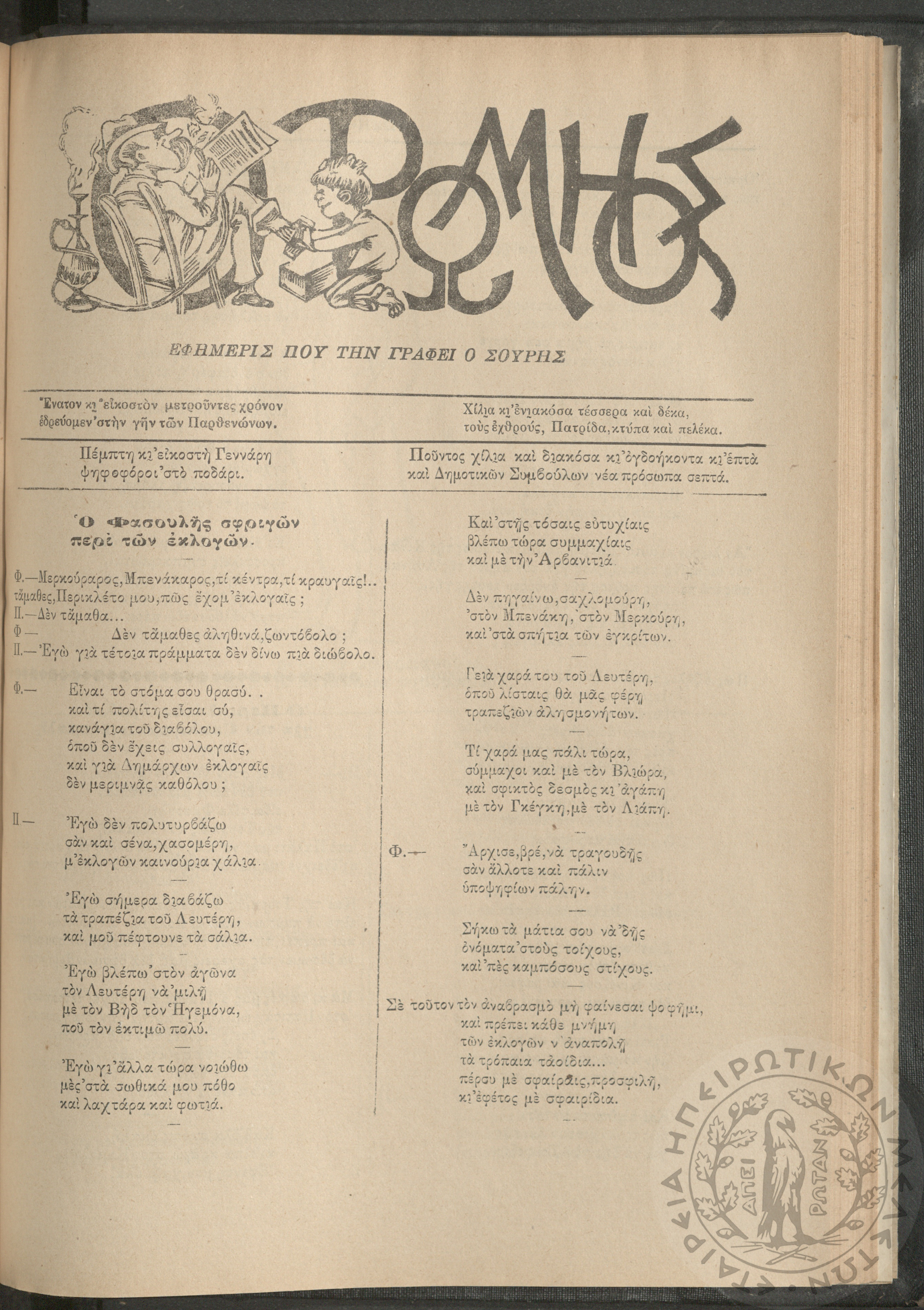 Ο Ρωμηός: Εφημερίς που την γράφει ο Σουρής, 1913, φ. 1283