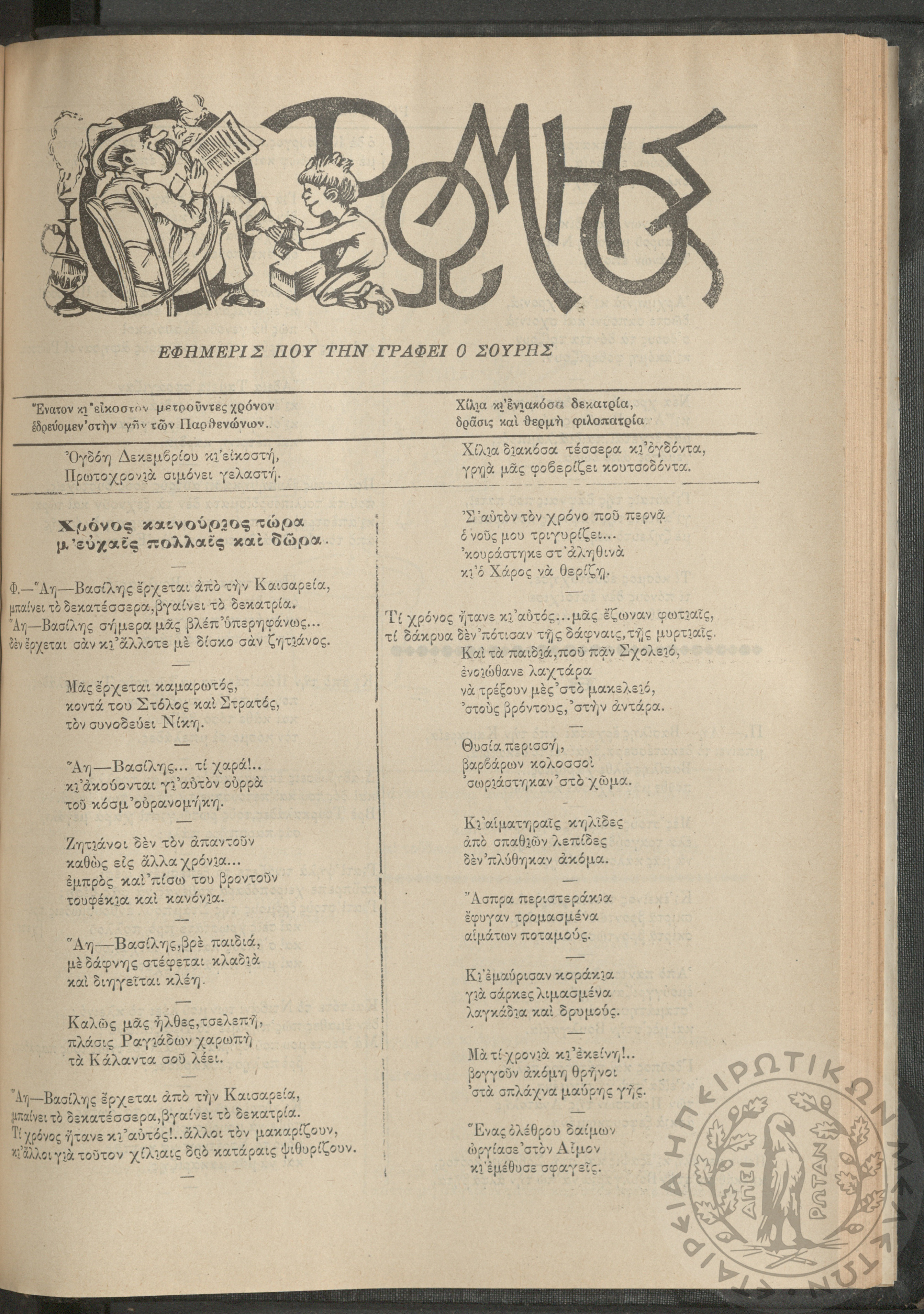 Ο Ρωμηός: Εφημερίς που την γράφει ο Σουρής, 1914, φ. 1288