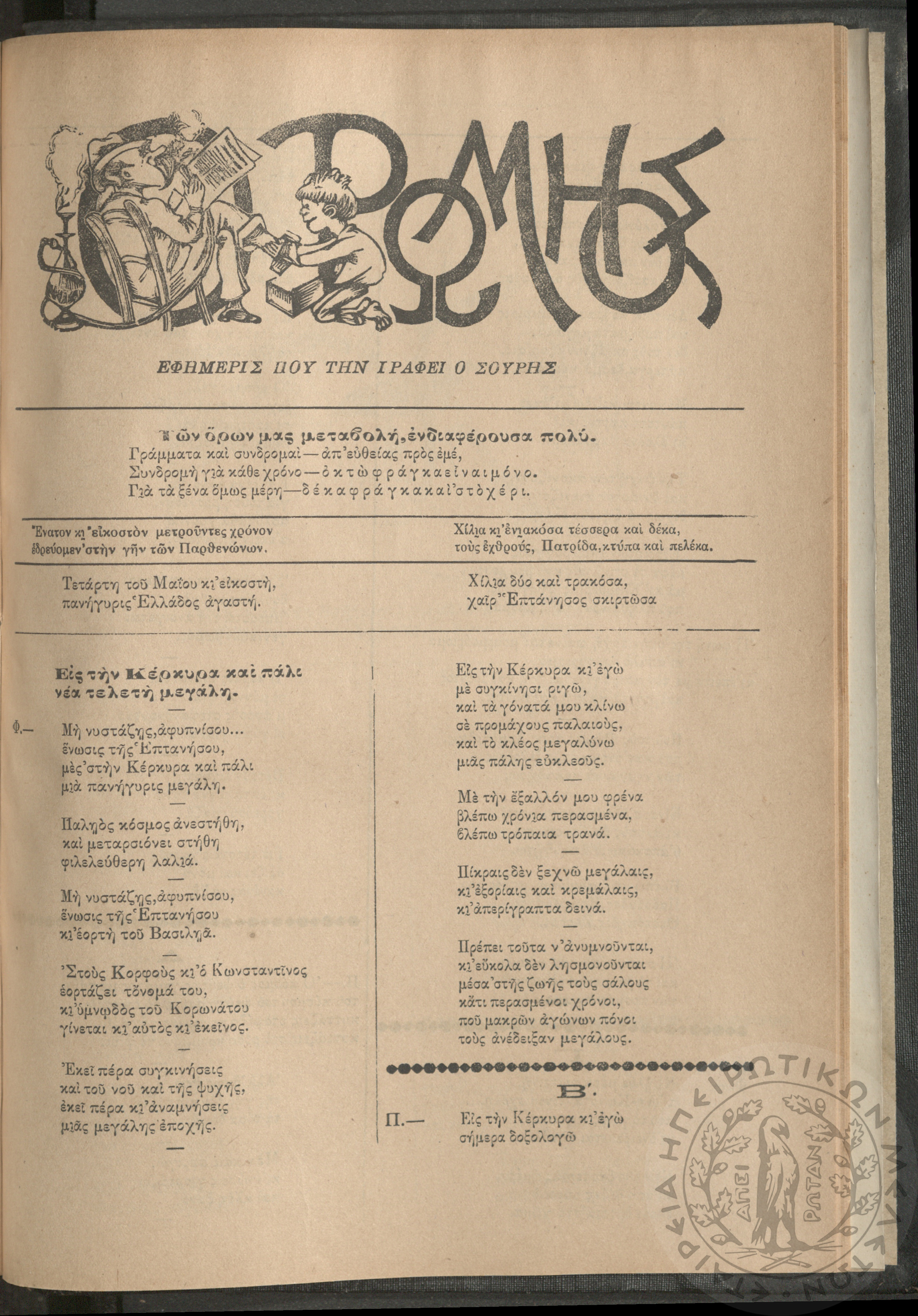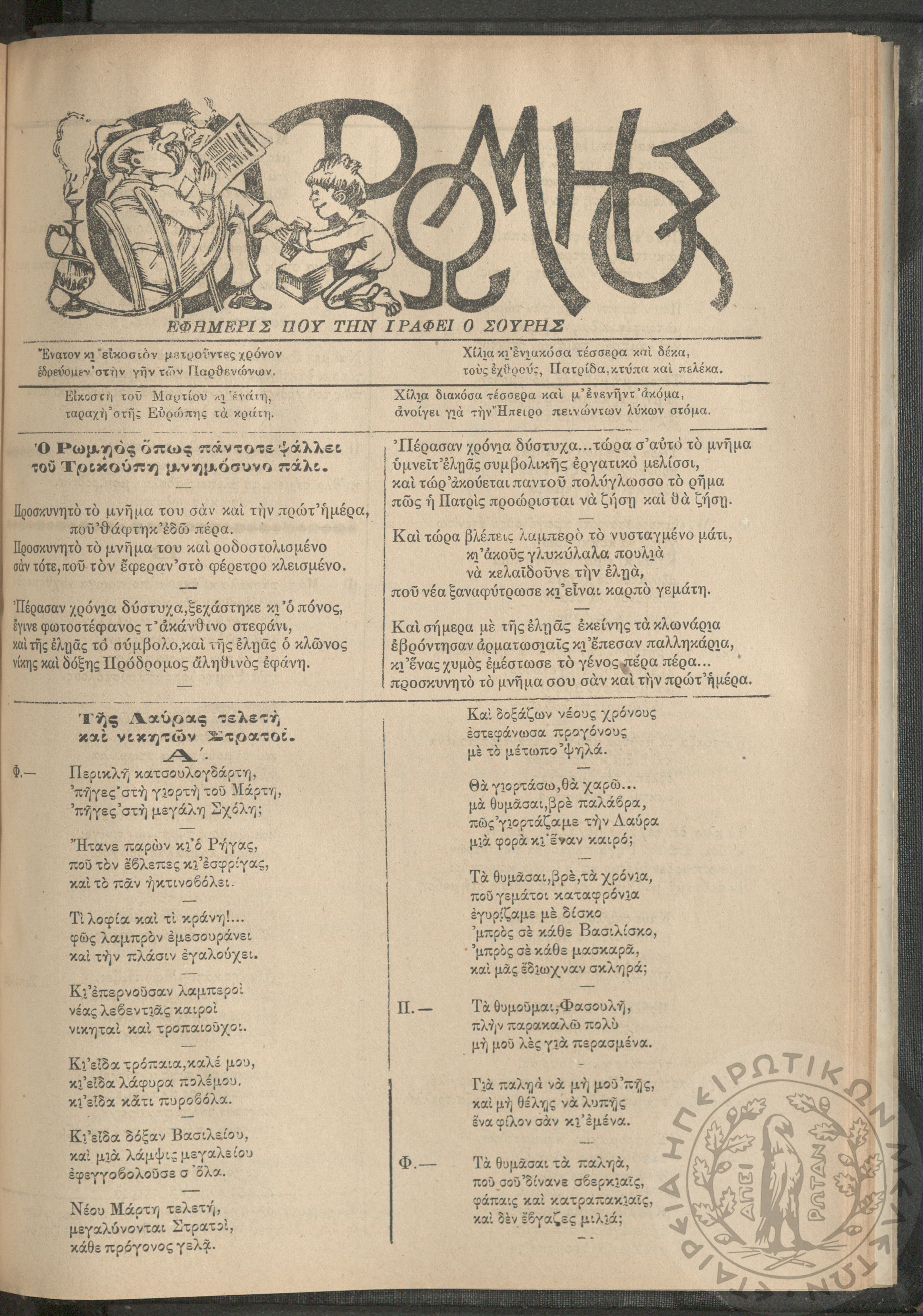 Περίοδος Β΄, έτος Δ', τεύχ. 18... Περίοδος Β΄, έτος ΣΤ', τεύχ. 2... Περίοδος Β΄, έτος ΣΤ', τεύχ. 2... Περίοδος Β΄, έτος Ζ', τεύχ. 26... Περίοδος Β΄, έτος Η', τεύχ. 27...