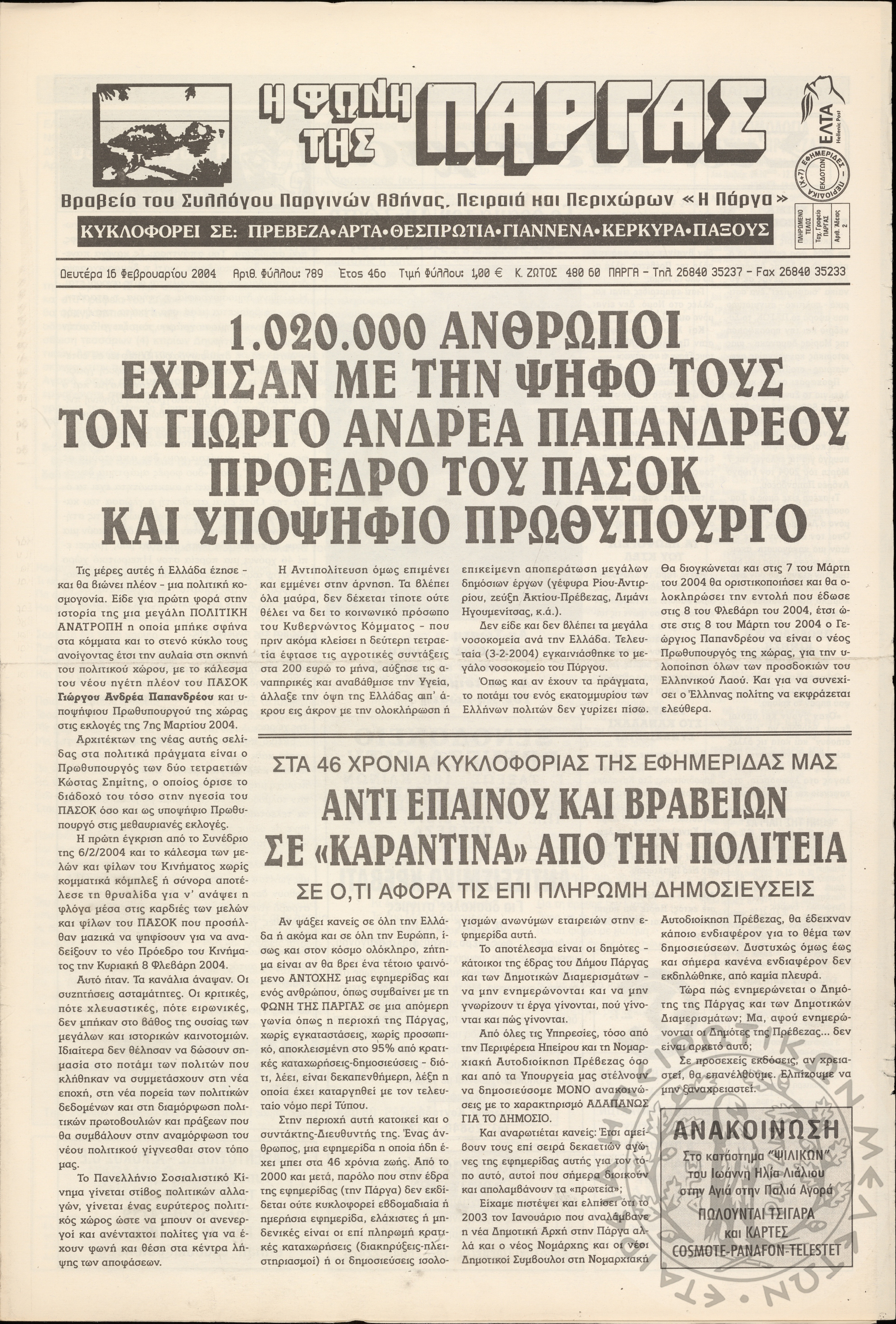 Η φωνή της Πάργας, 2004, φ. 789