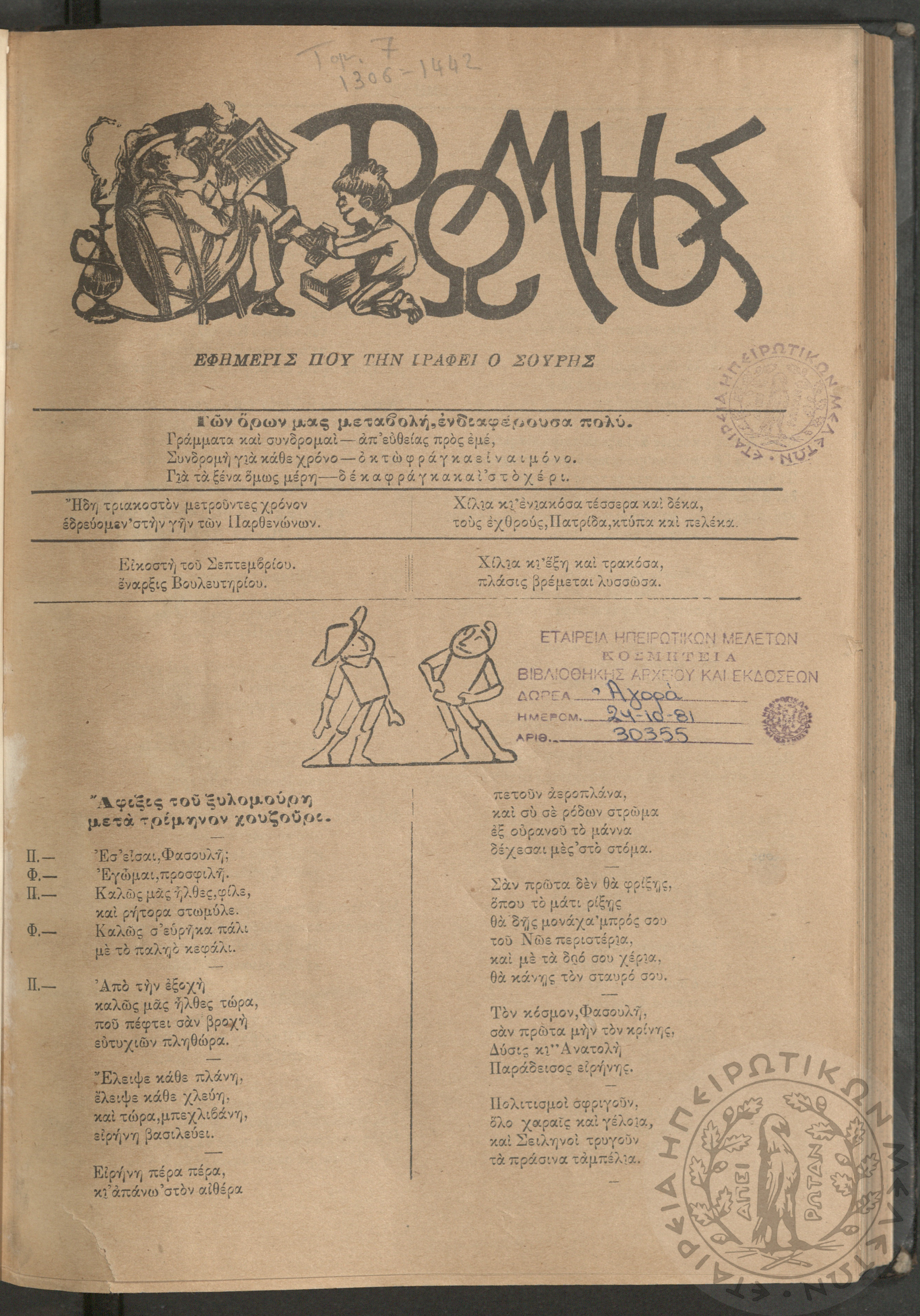 Ο Ρωμηός: Εφημερίς που την γράφει ο Σουρής, 1914, φ. 1306