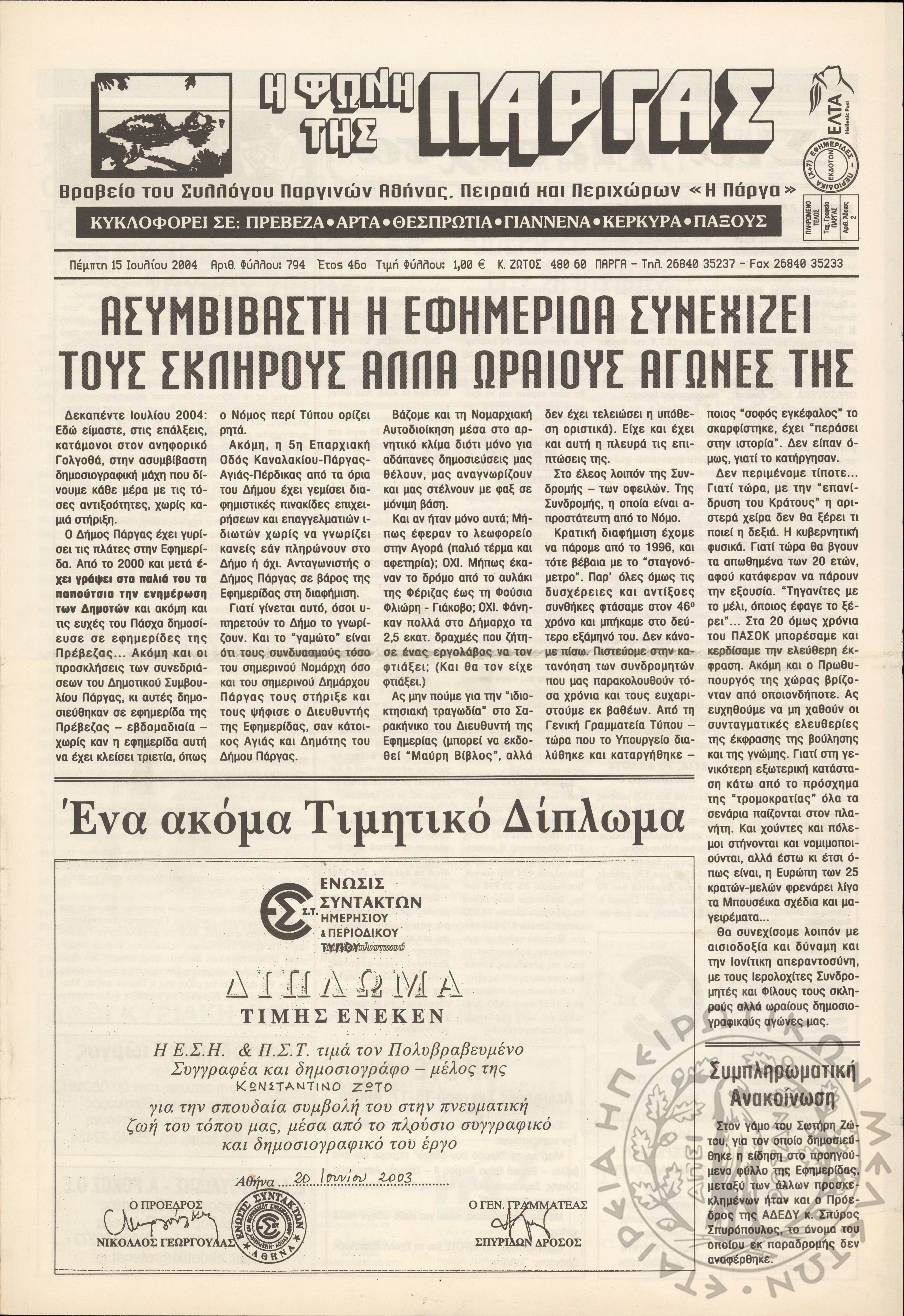 Η φωνή της Πάργας, 2004, φ. 794
