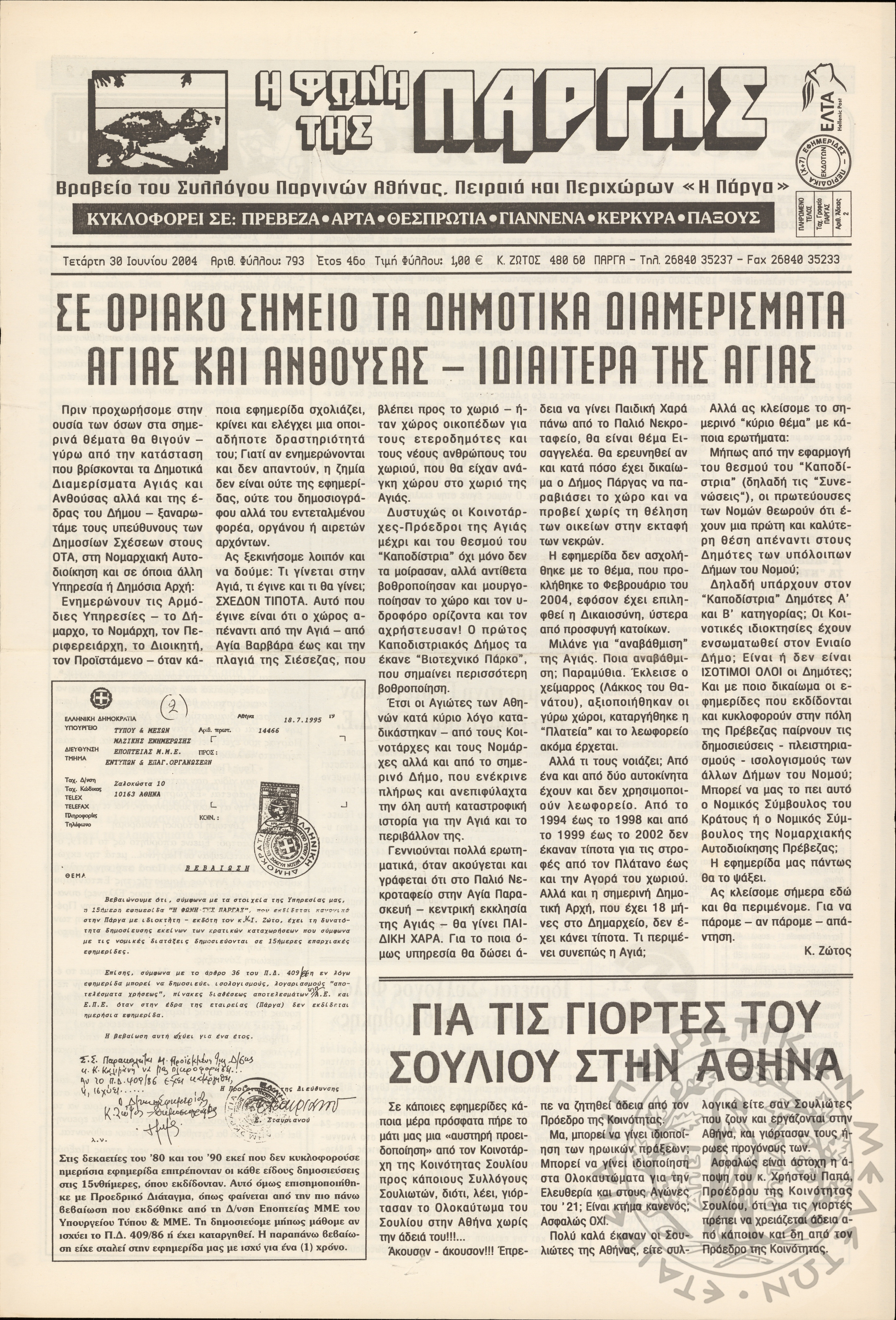 Η φωνή της Πάργας, 2004, φ. 793