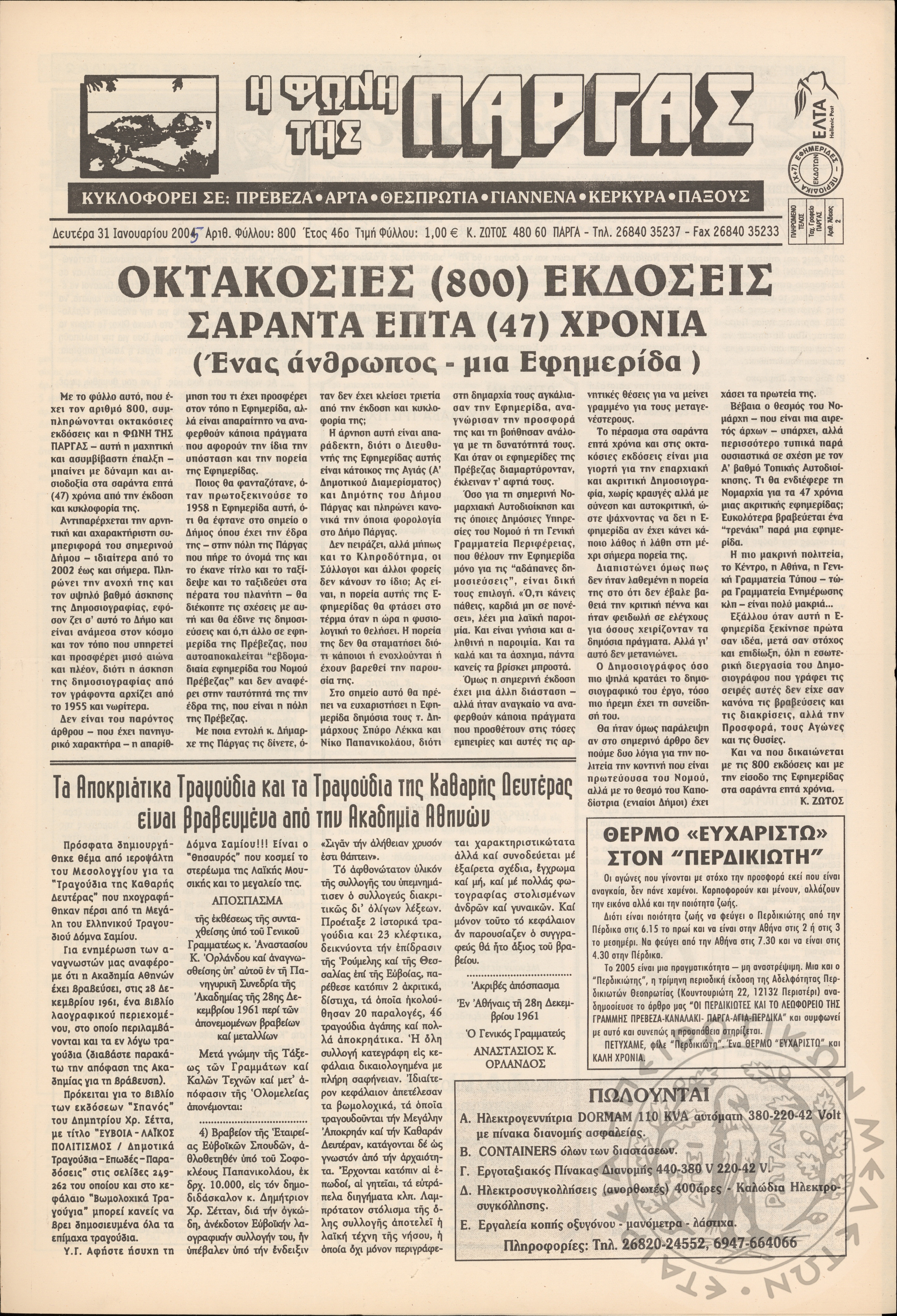 Η φωνή της Πάργας, 2005, φ. 800