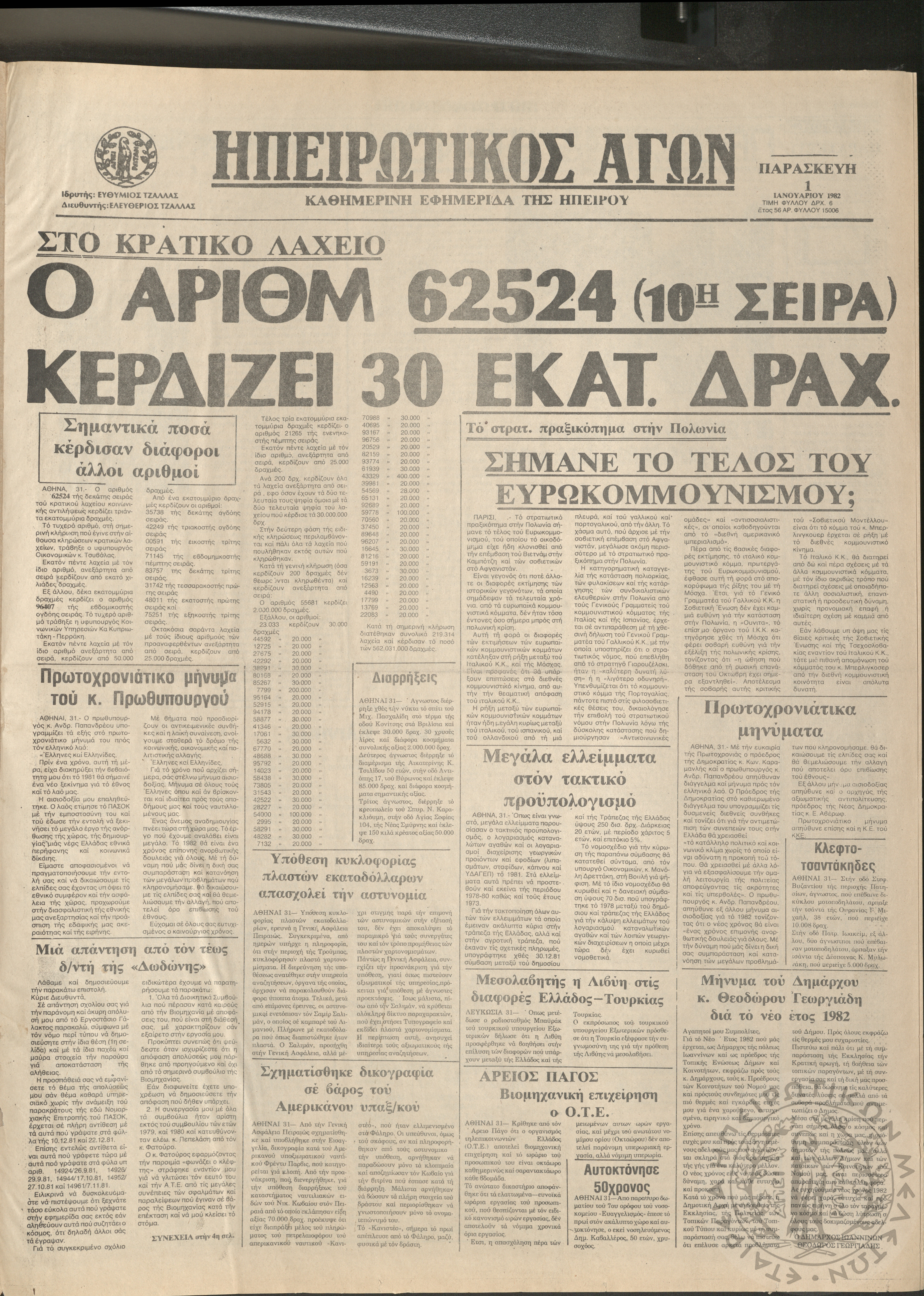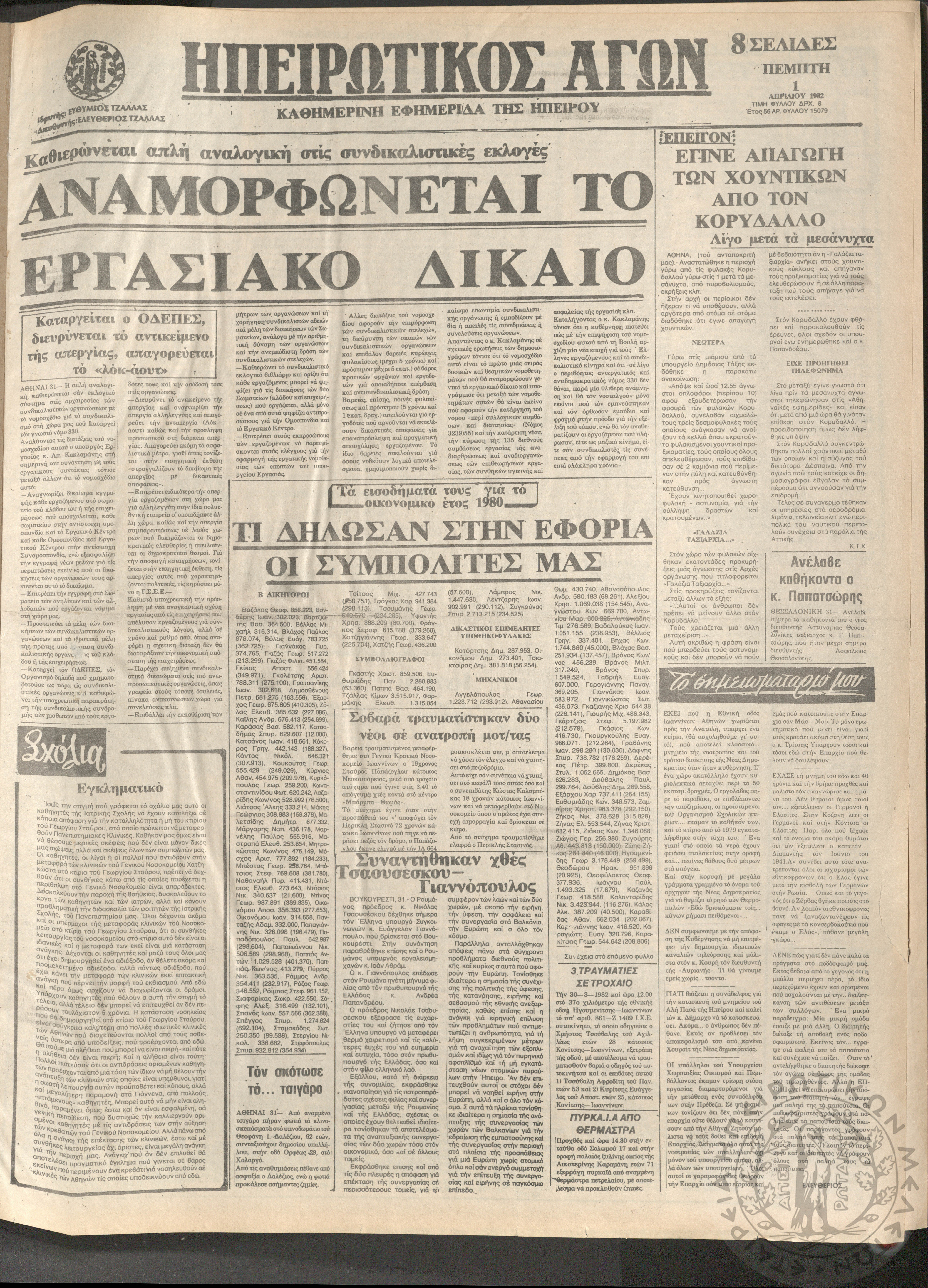 Ηπειρωτικός Αγών: καθημερινή εφημερίδα της Ηπείρου, 1982, φ. 15153