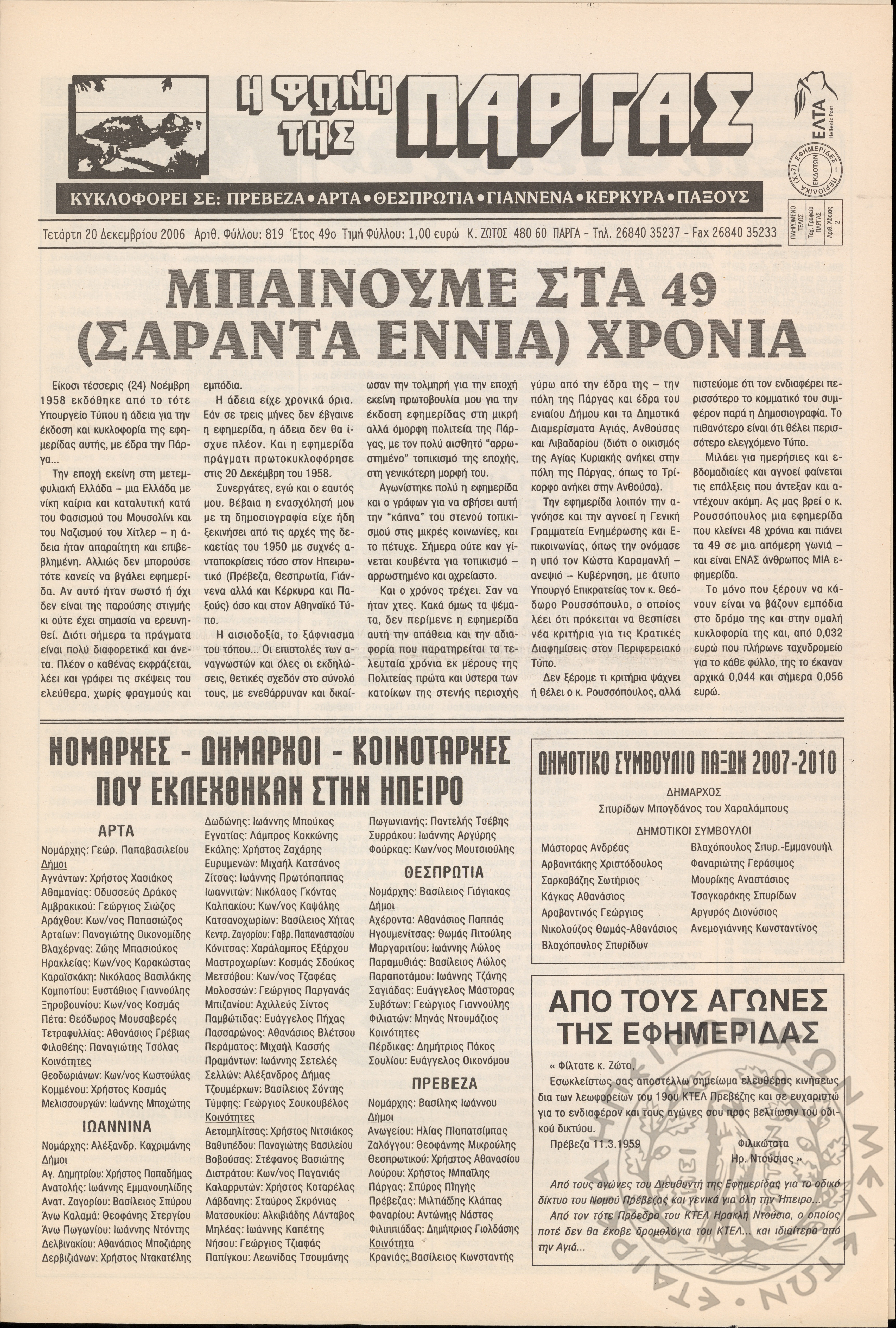 Η φωνή της Πάργας, 2006, φ. 819
