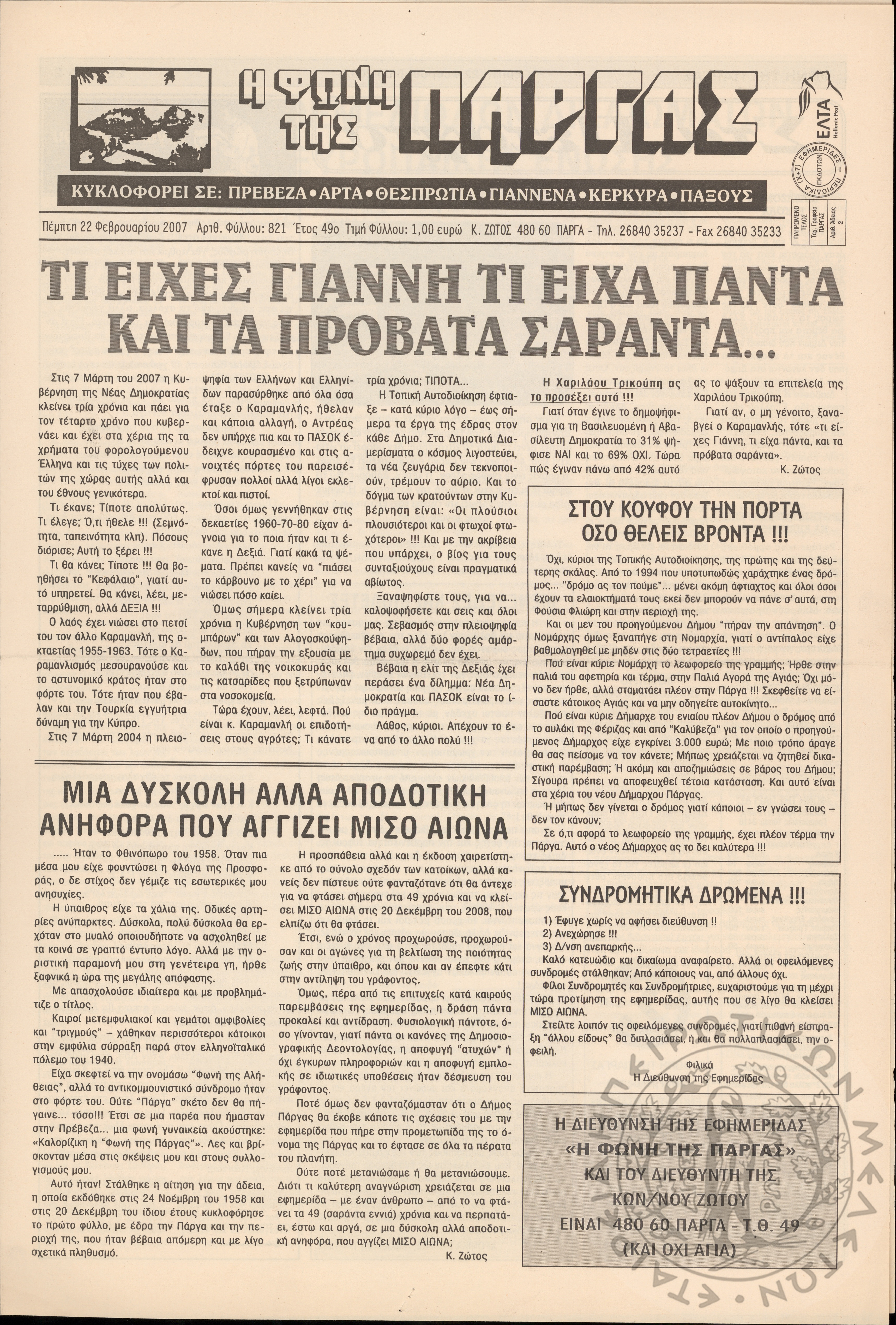 Η φωνή της Πάργας, 2007, φ. 821